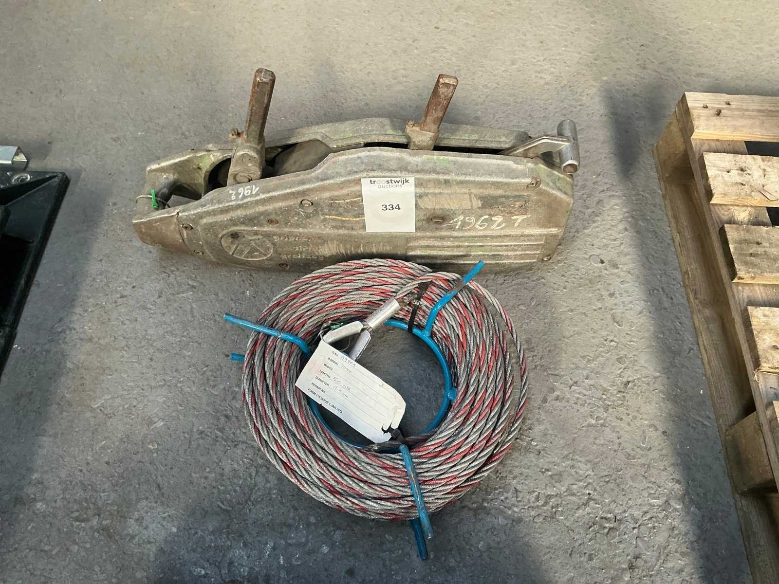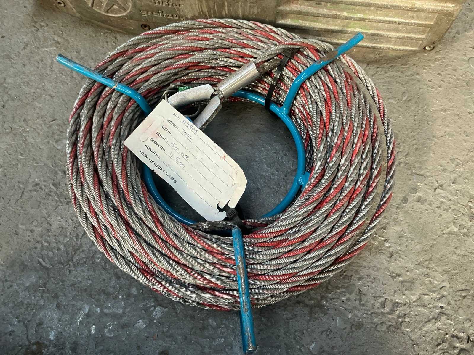 Met ongebruikte staalkabel op rol. Lengte 50 meter. Diameter 11,5 mm. Nee