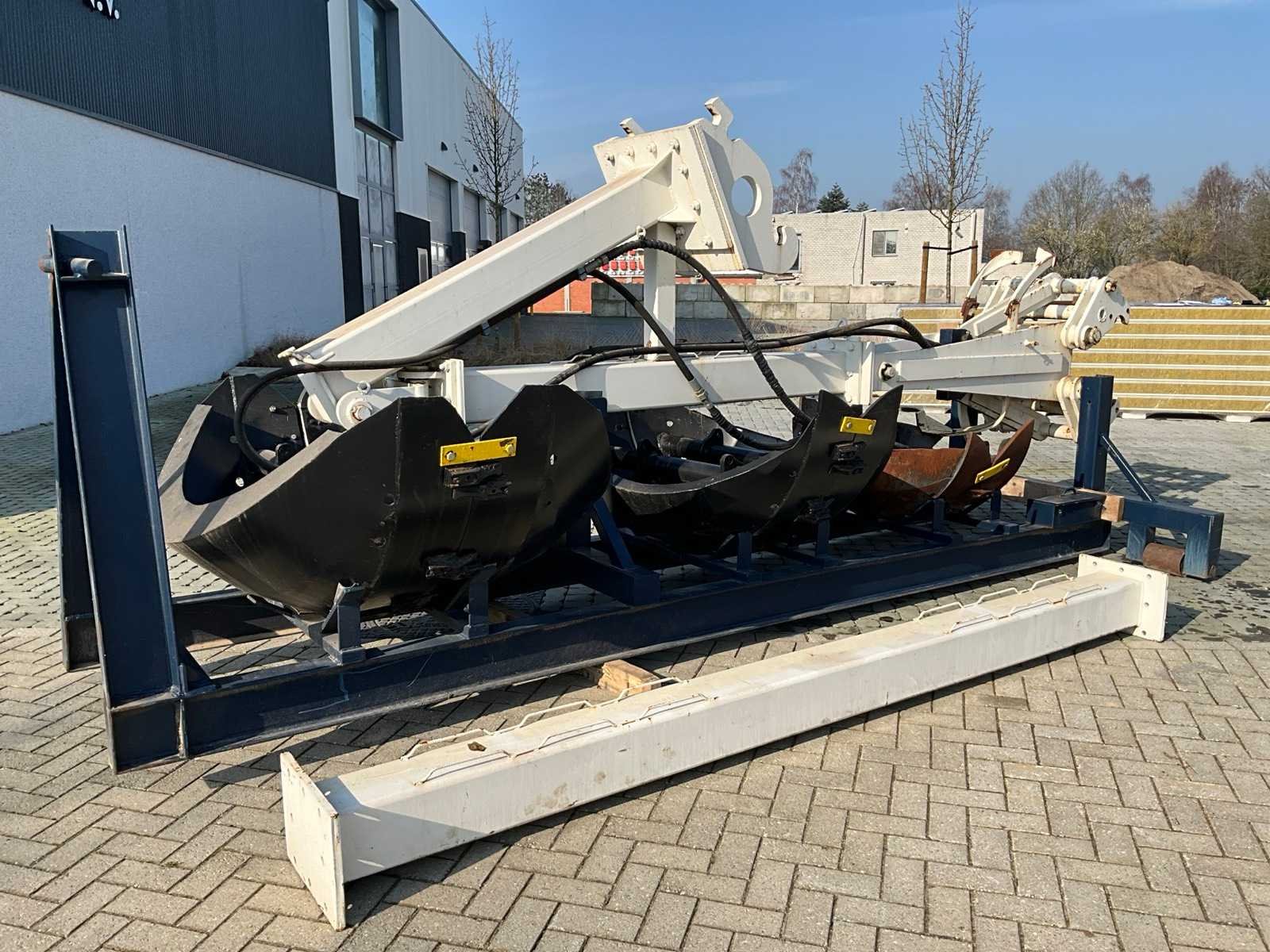 Lengte knijparm 5m, voorzien van CW30 aansluiting Compleet met 3 diverse schalenknijpers waaronder met dia 1,25, 1,50 en 1,8m, extra verlengstuk 3,5m. Liggende op optrekcontainer onderstel Nee Merk: Verhoeven