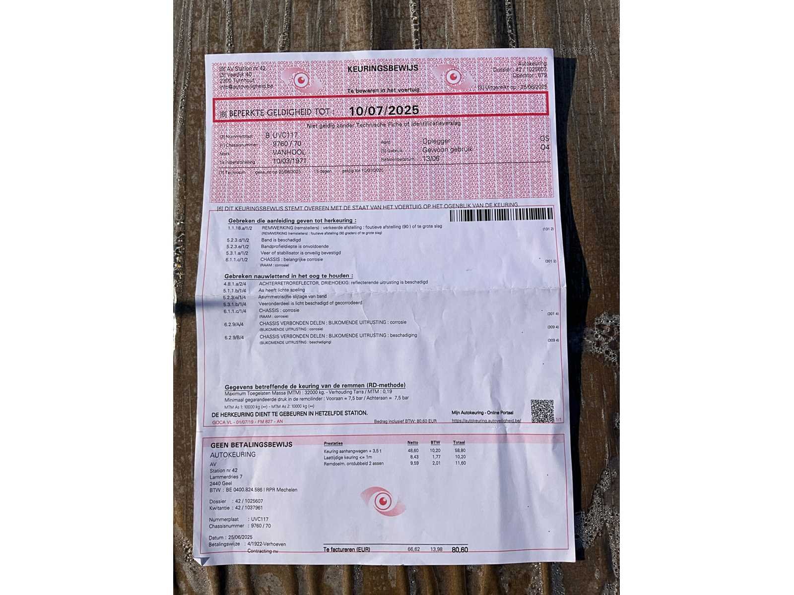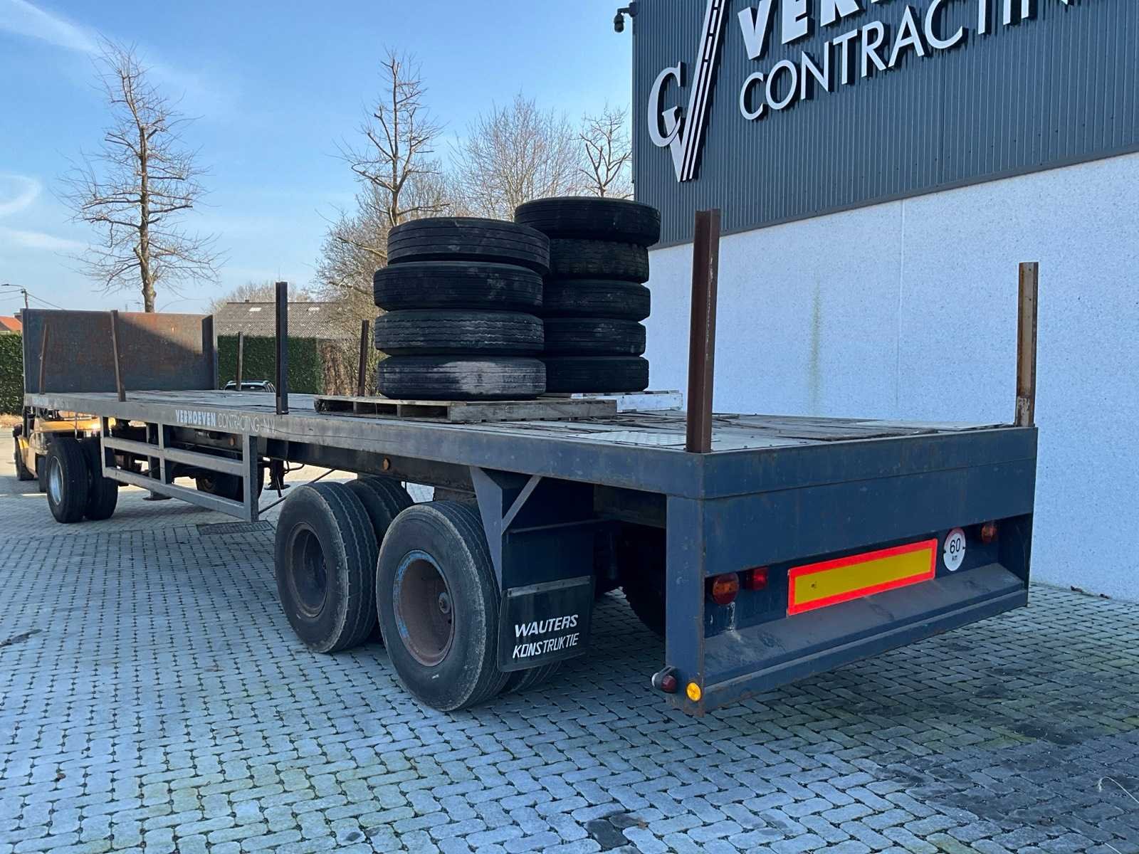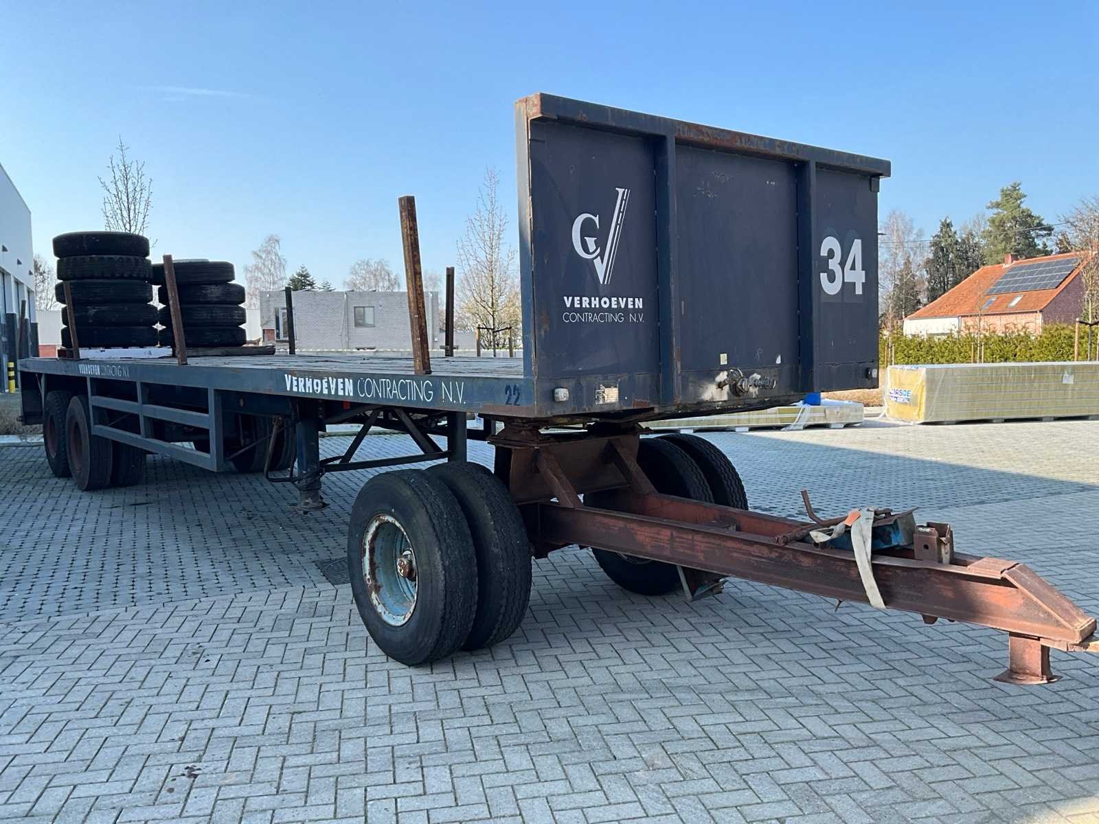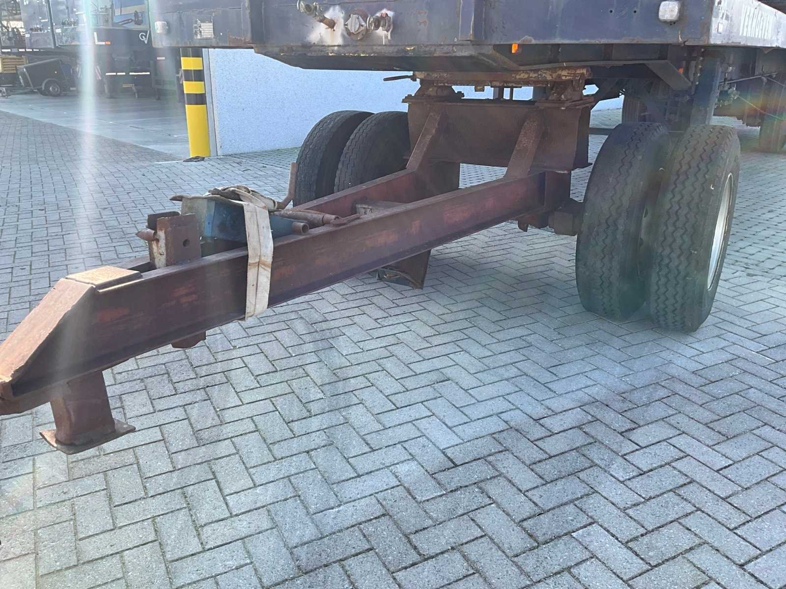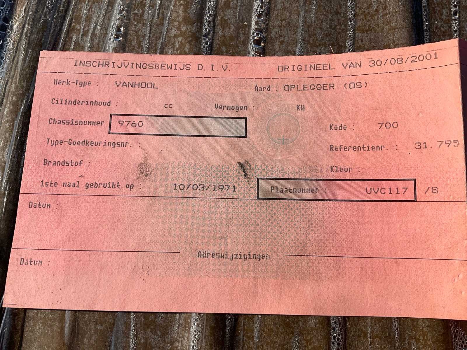 Compleet met dolly ( 2,35 x 3,5m) voorzien van steunpoot en 9 diverse banden Nee Merk: VANHOOL Type: 32-SN Bouwjaar: 1971 Chassisnummer VIN: 9760 Datum eerste toelating: 30/08/2001 Aantal assen: 2 Laadvermogen: 32000kg