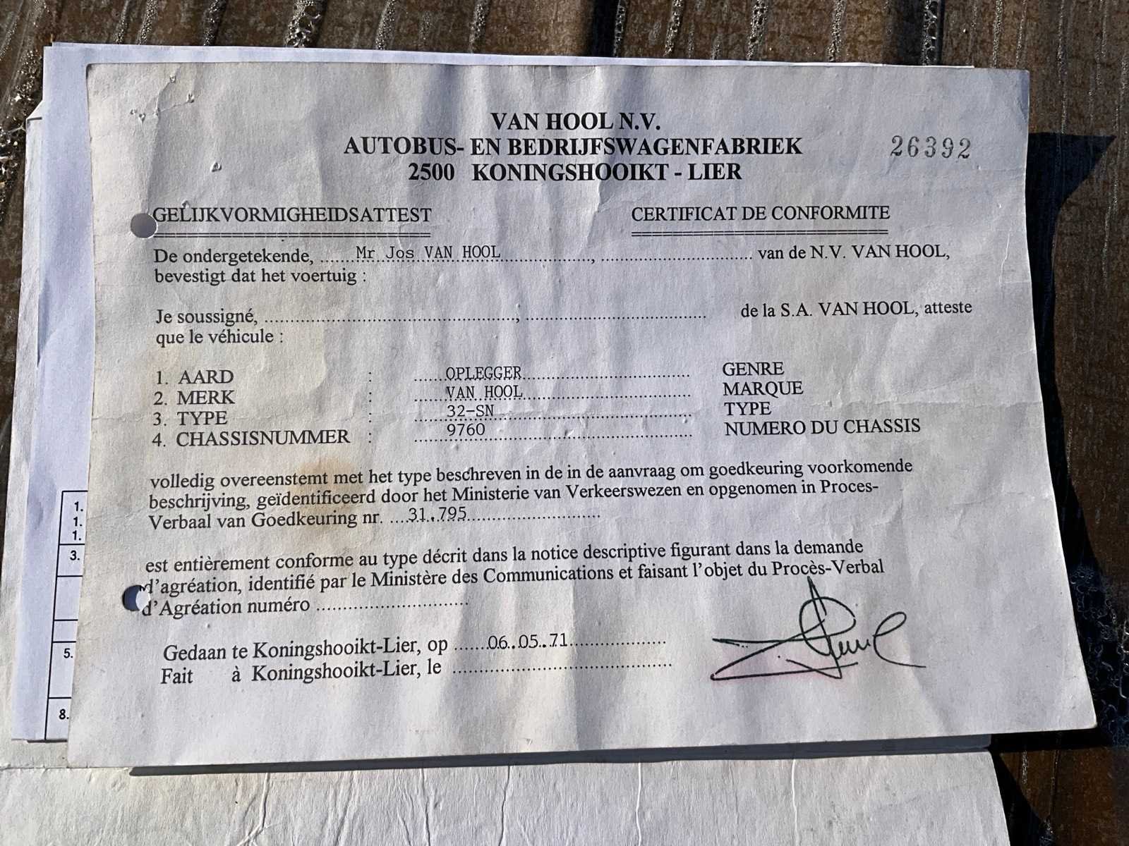 1971 vanhool 32-sn oplegger