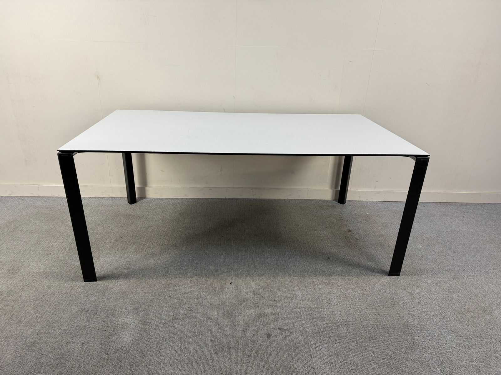 Ahrend vergadertafel met witte blad op zwart metalen onderstel. Nee Merk: Ahrend Type: Vergaderafel Kleur: Wit Gewicht: 70kg Breedte: 180cm Hoogte: 74cm Diepte: 100cm