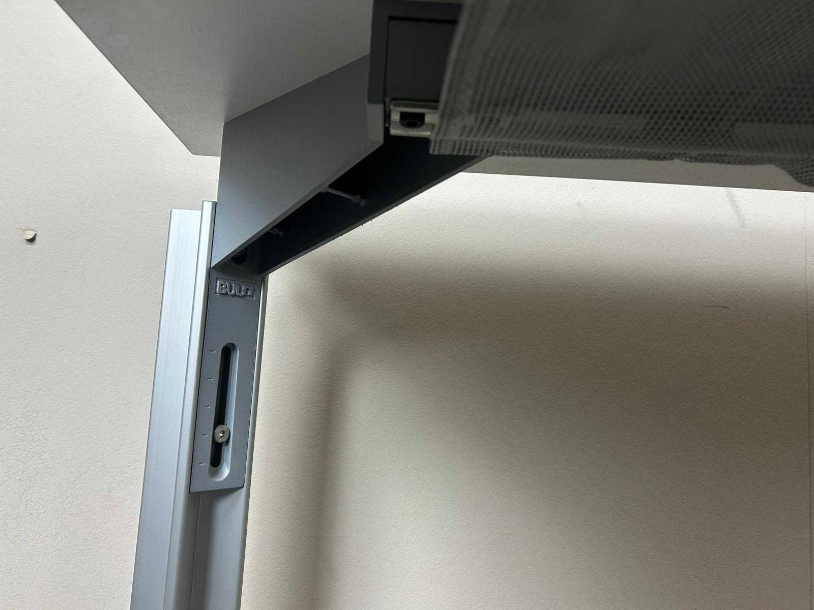 Bulo bureautafel met creme melamine blad op grijs metalen vierpoot, handmatig verstelbaar van 65 tot 75 cm Nee Merk: BULO Type: H2O Kleur: Esdoorn Gewicht: 45kg Breedte: 140cm Hoogte: 65-75cm Materiaal: Melamine Diepte: 80cm