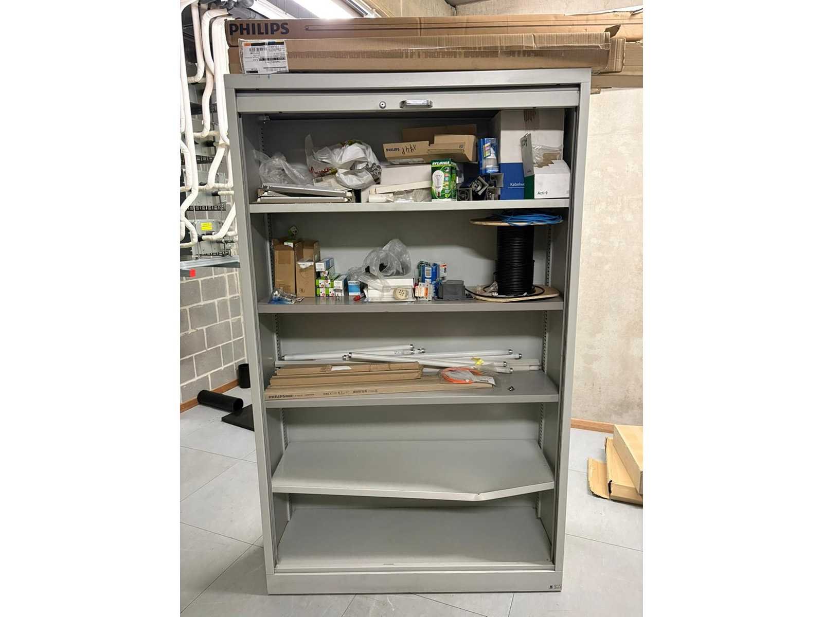 Hoge Horizontale roldeurkast – Grijs (Metaal) horizontale roldeurkastkast in grijs metaal, voorzien van vier leggers. Praktische opbergoplossing voor kantoor-, archief- of projectruimtes. Met gebruikssporen, exacte staat kan variëren bij afhaling. (INHOUD NIET INBEGREPEN) Nee Kleur: Grijs Gewicht: 55kg Breedte: 91cm Hoogte: 195cm Diepte: 42cm Materiaal: Metaal Product type: Roldeurkast