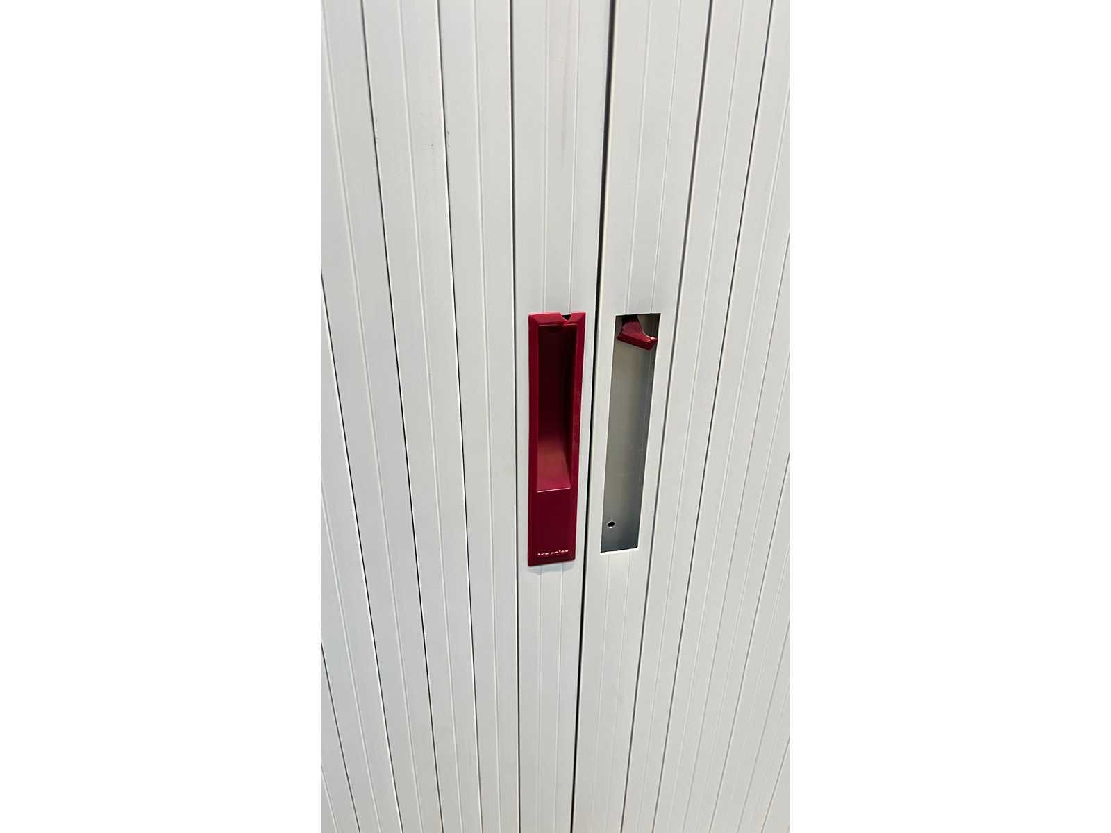 Hore roldeurkast merk TDS actior, kleur frame bordeux, kleur deuren zeer licht grijs, met 4 legplanken , sleutel is niet gegarandeerd Nee Merk: TDS Actior Type: roldeurkast Kleur: Bordeaux Gewicht: 60kg Breedte: 120cm Hoogte: 197cm Materiaal: metaal/kunststof Diepte: 43cm