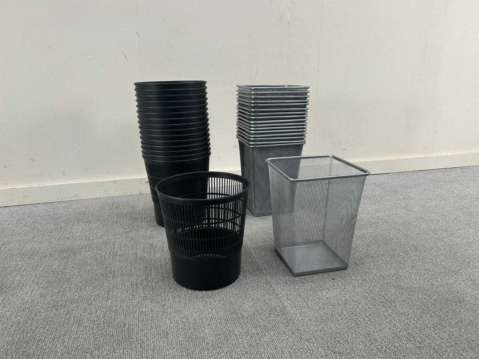 Set van 33x Vuilbakken – Zwart/Grijs Gemengde set van 33 prullenbakken in zwart en grijs, bestaande uit 17 metalen en 16 kunststof exemplaren. Praktisch inzetbaar voor kantoor-, project- of bedrijfsomgevingen. Met gebruikssporen, staat kan variëren per item Nee Product type: Set prullenbakken Kleur: Zwart / Grijs Gewicht: 90kg