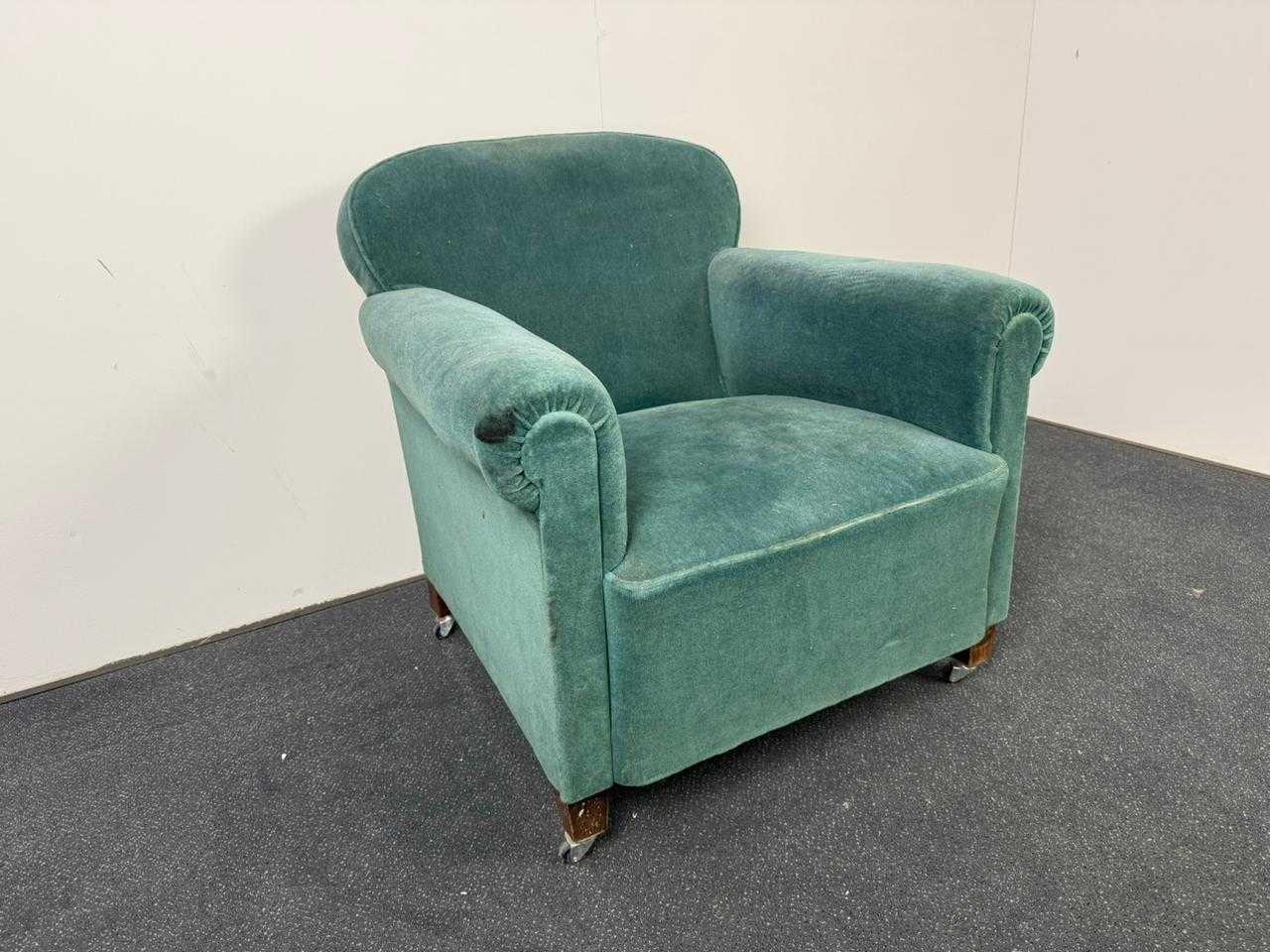 Armchair in turquoise stof, in gebruikte staat. Mogelijk in nood van reiniging Nee Model: V0638 Kleur: Turquoise Gewicht: 35kg