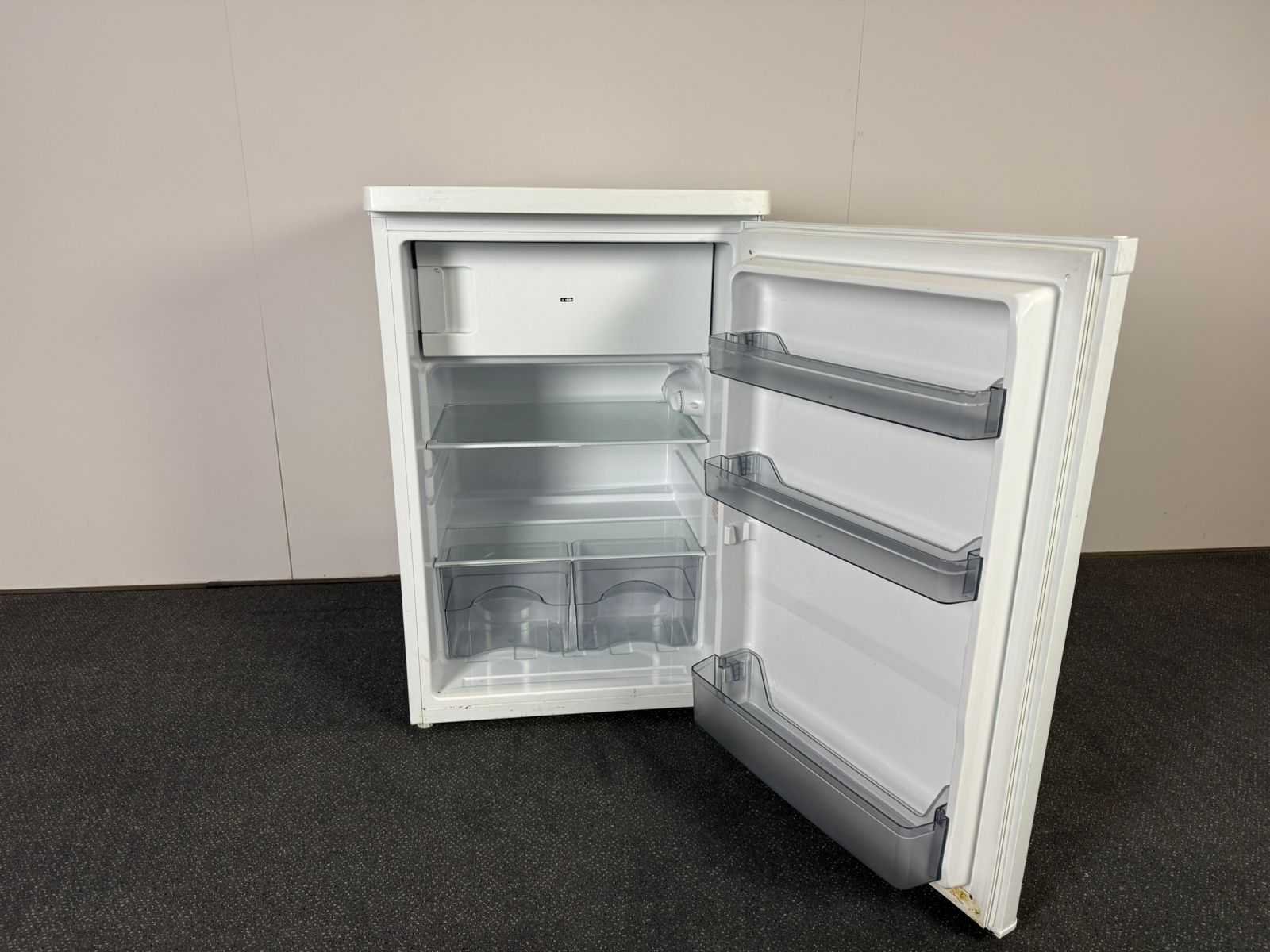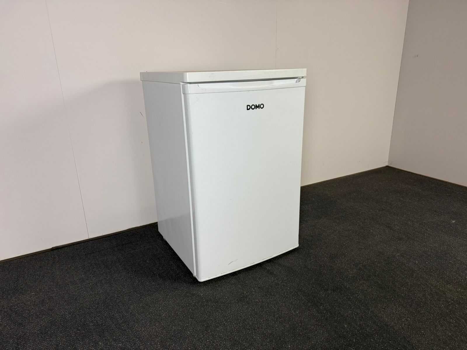Domo Koelkast – Wit (Compact) Domo compacte koelkast in witte uitvoering. Voorzien van frigo compartiment met 2 lades/bakken en 3 wandschappen. Geschikt voor kantoor-, pantry- of horecagebruik. Met gebruikssporen, exacte staat kan variëren bij afhaling. Nee Merk: DOMO Product type: Compacte koelkast Kleur: Wit Gewicht: 40kg Lengte: 56cm Breedte: 54cm Hoogte: 84cm