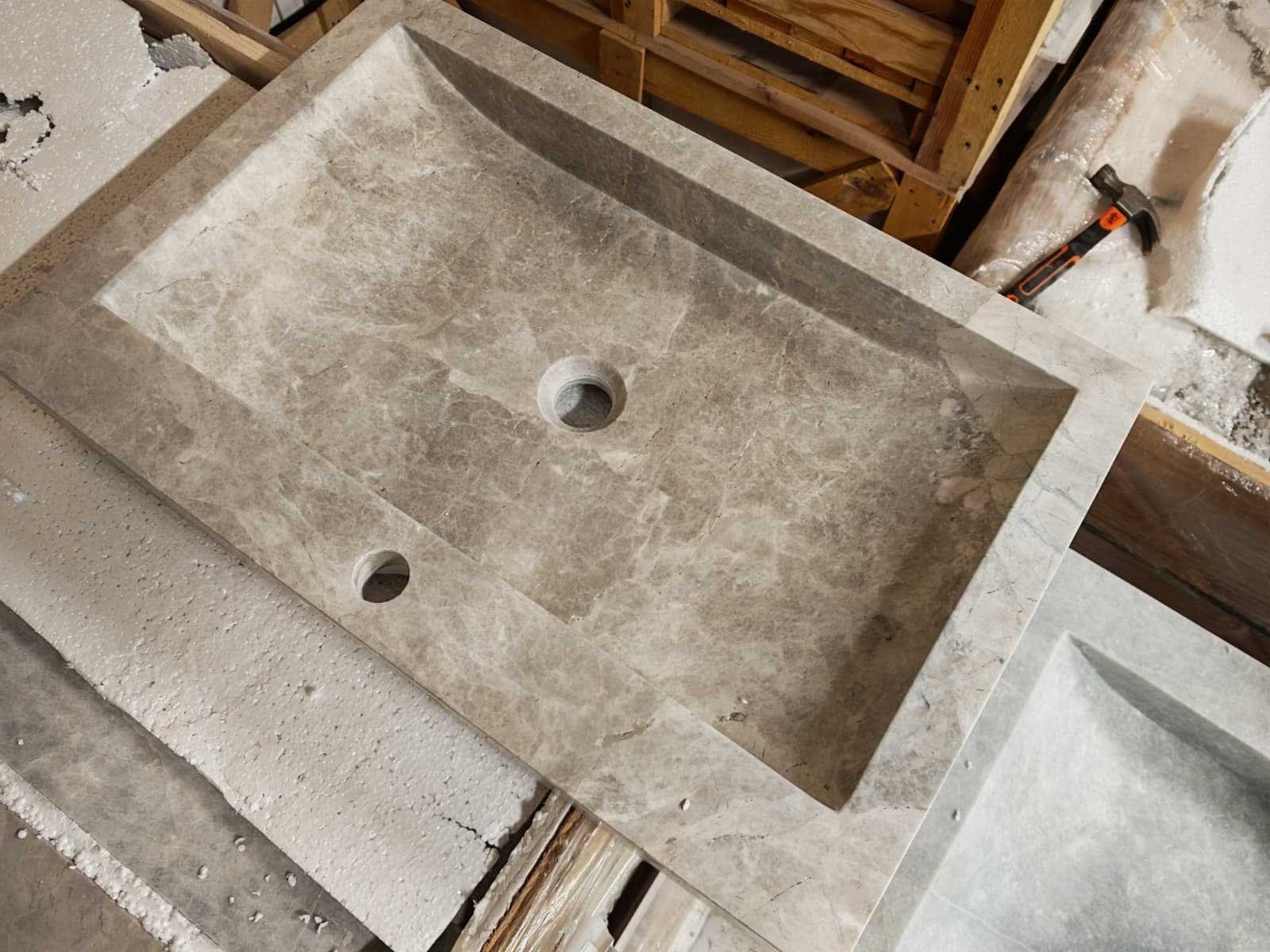 No Merk: Natuursteen Product type: Wastafel Kleur: Beige Lengte: 46cm Breedte: 70cm Hoogte: 10cm Materiaal: Marmer Inspiration Grey