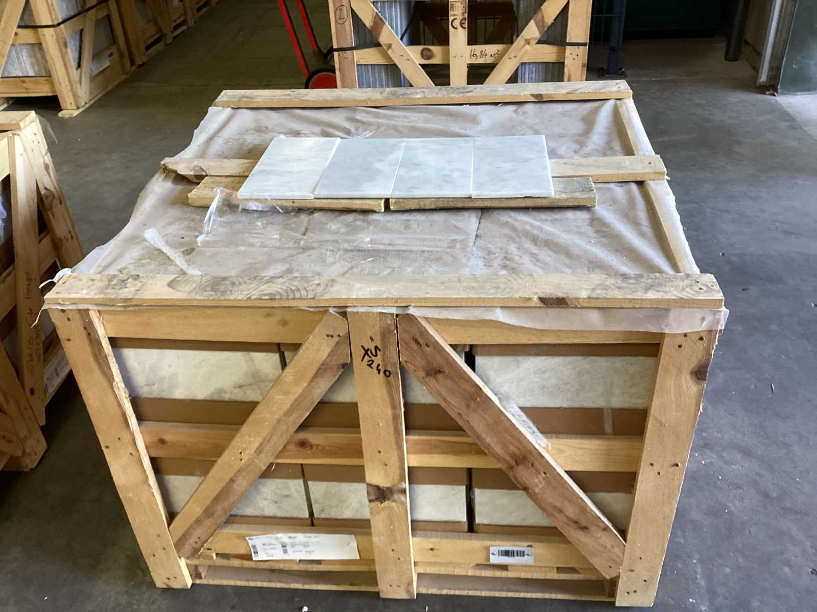 Nee Merk: Natuursteen Kleur: Wit Afwerking: Gezoet Lengte: 152mm Breedte: 305mm Dikte: 10mm Materiaal: Marmer Type: Vloertegel Model: Avenza Classic Aantal m² per verpakking: 1m² Aantal pakken: 33 Totaal oppervlakte: 33.38m² Totaal gewicht: 835kg