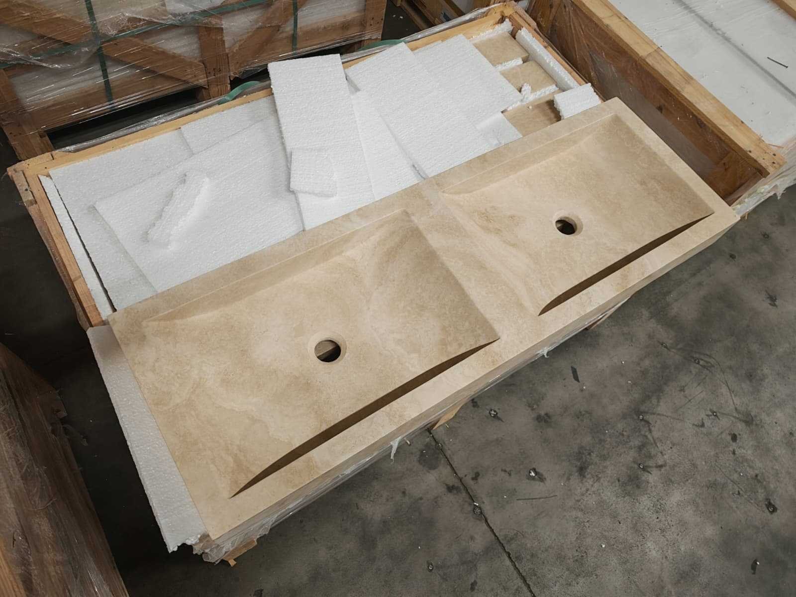 Natuursteen light travertin dubbele wastafel 120x40x10 cm