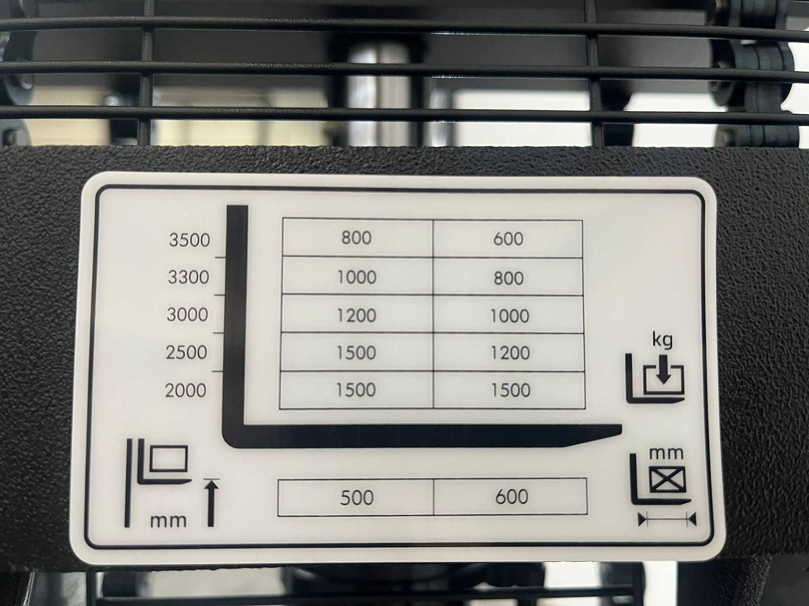 Interne lader; noodstop; batterij percentage; dubbele ketting; noodknop; load center 600mm; nominal power 0,75kW; Battery voltage 24V; 71Ah/5hr; lepelgrootte 560x1150mm Nee Merk: RTE Type: 7857-B Bouwjaar: 2025 Hefvermogen: 1500kg Hefhoogte: 3500mm Lepellengte: 1150mm Eigen gewicht: 597kg Minimale doorrijhoogte: 2240mm Totale afmeting L: 1750mm Totale afmeting Breedte: 850mm Totale afmeting Hoogte: 2240mm