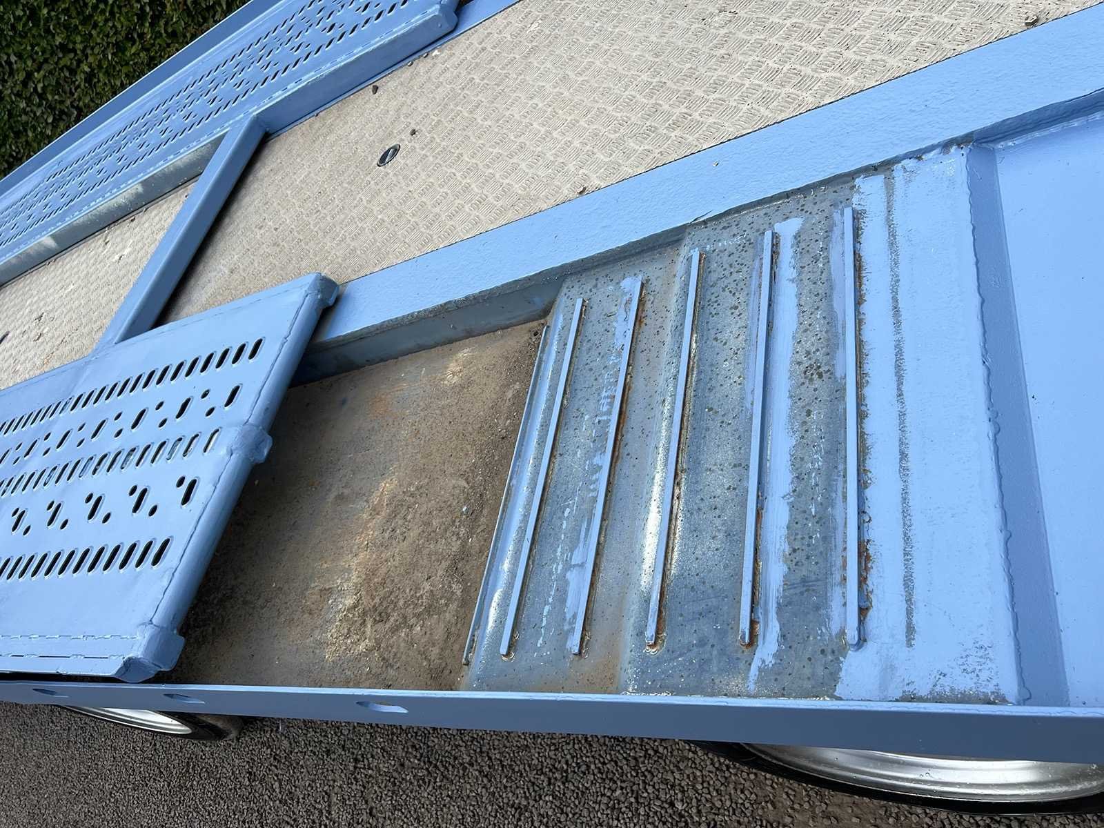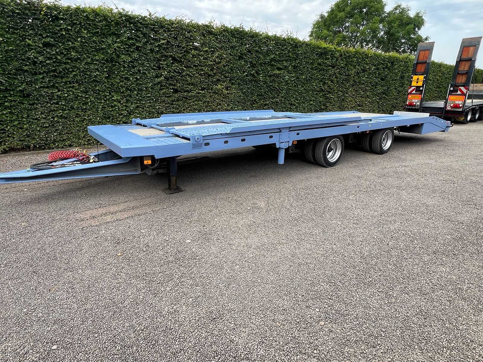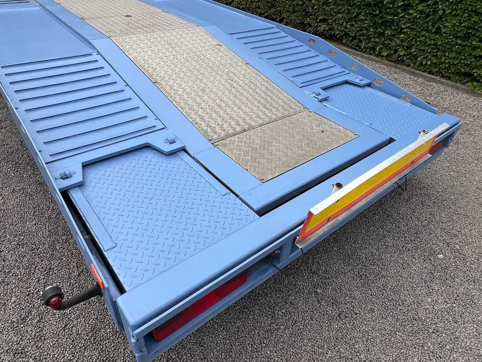 Papieren snelverkeer - Trailer kan uitschuiven - Voorste platform hydraulisch naar boven - Luchtvering - Luchtremmen - Pin 50mm - Inclusief aluminium oprijrampen - Gemetalliseerd - Laatste keuring blanco - Bandenmaat 205/65 R 17.5 Nee Merk: Renders Type: RMAC 6-6 Bouwjaar: 1988 Chassisnummer: 84918/81 Aantal assen: 2 Laadbak afmeting l: 9600cm Laadbak afmeting b: 2540cm Ledig gewicht: 5620kg Laadvermogen: 6380kg Datum eerste toelating: 12/09/1988 Hoogte: 7300cm Lengte: 11100cm Breedte: 2500cm Nationaliteit documenten: BE