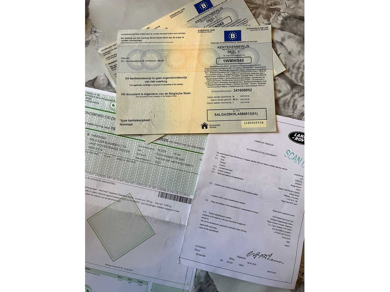 Zeer nette Range Rover in Eiger Grey! Uit 2019 maar model 2020! 1ste eigenaar en volledig dealer onderhouden (online). Kleine schar wielkast (zie foto) - Nanolex beschermcoating Nee Merk: Land Rover Model: Range Rover L405 Bouwjaar: 2020 Afgelezen kilometerstand: 89913km Cilinderinhoud: 3000cc Brandstof: Diesel Chassisnummer: SALGA2BK9LA568812 Datum eerste toelating: 16/07/2019 Aantal zitplaatsen: 5 Kleur: EIGER GREY Transmissie: automaat Stuurwiel: links Aantal sleutels: 2 Onderhoudshistorie: Online Gelijkvormigheidsattest aanwezig: true