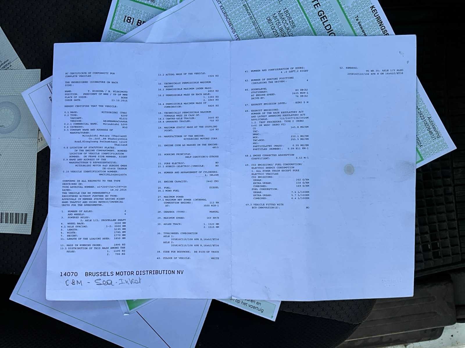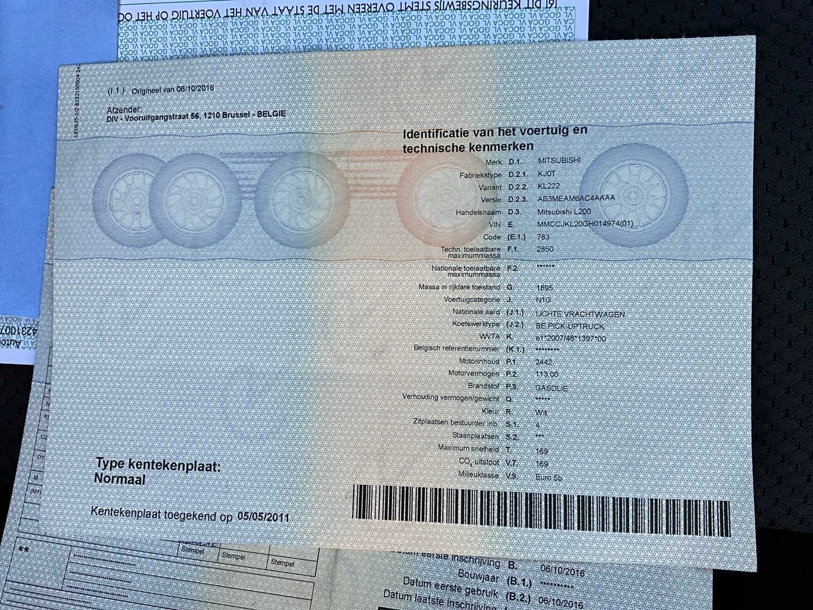 Nee Merk: Mitsubishi Model: L200 Bouwjaar: 2016 Afgelezen kilometerstand: 106083km Cilinderinhoud: 2442cc Vermogen (kW): 113kW Brandstof: diesel Datum eerste toelating: 06/10/2016 Transmissie: Handgeschakeld Nationaliteit documenten: Belgisch Start en rijdt: Ja startinformatie : Start en rijdt Inschrijvingsbewijs - deel 1 : Aanwezig Inschrijvingsbewijs - deel 2: Aanwezig