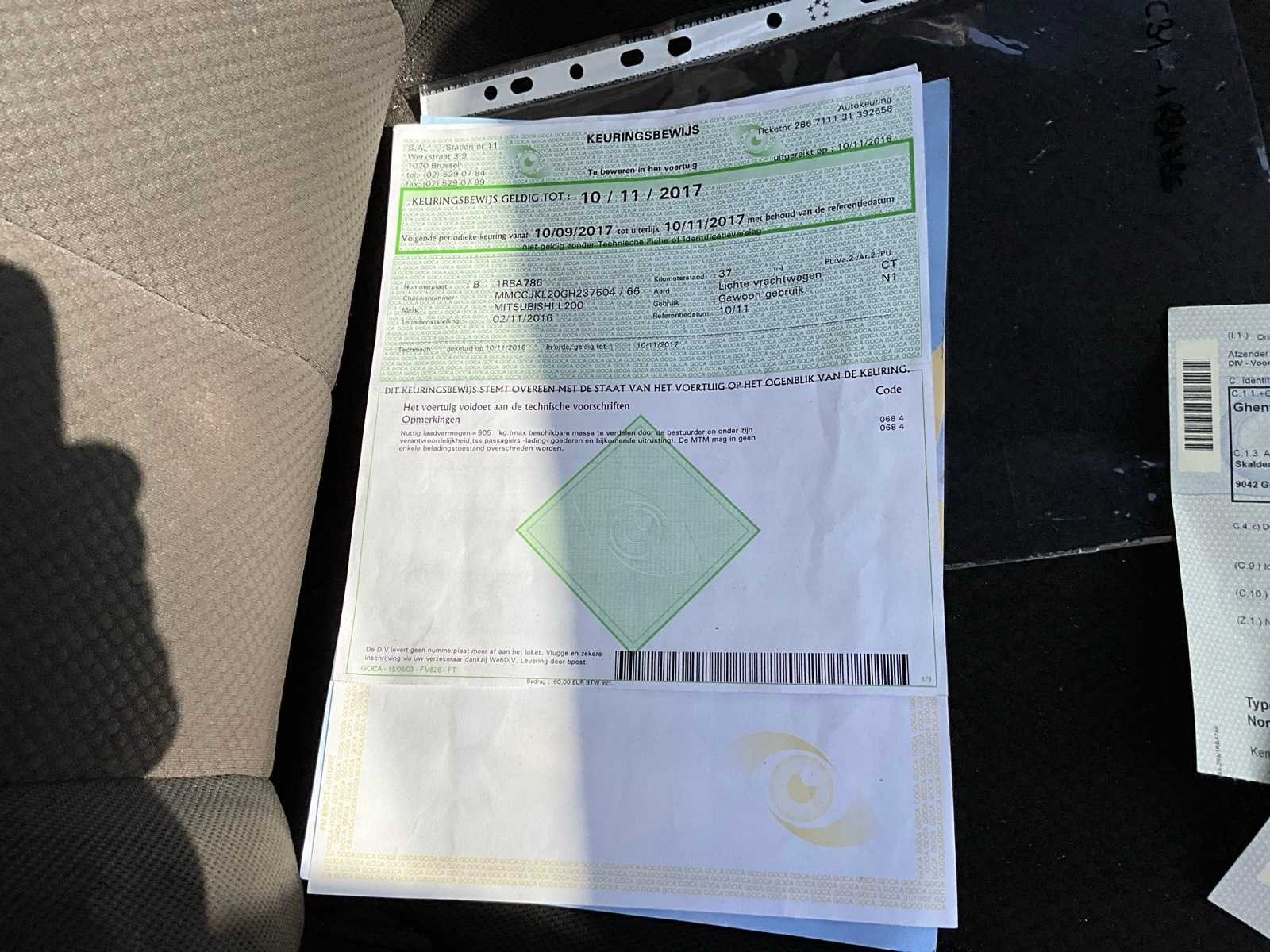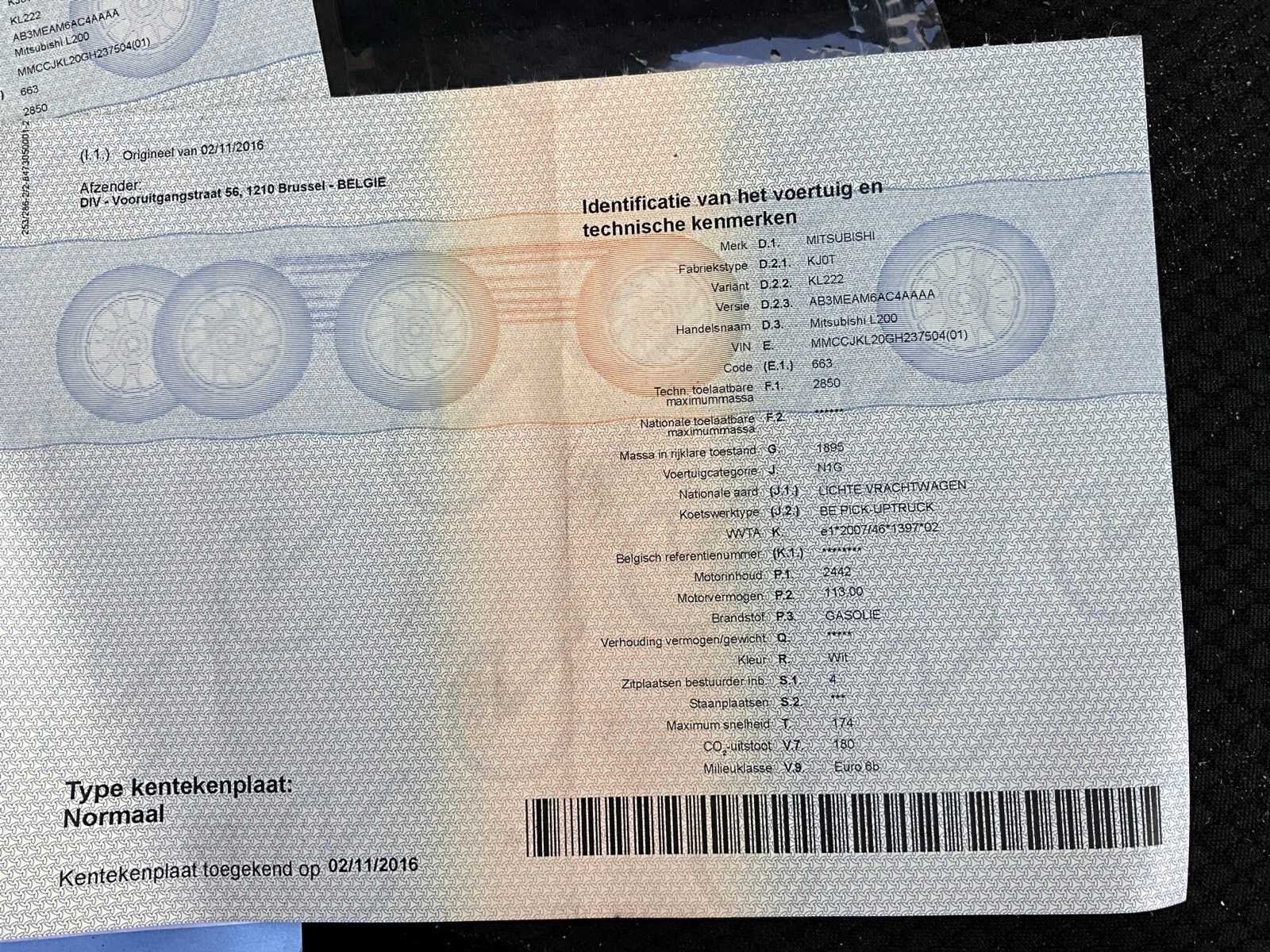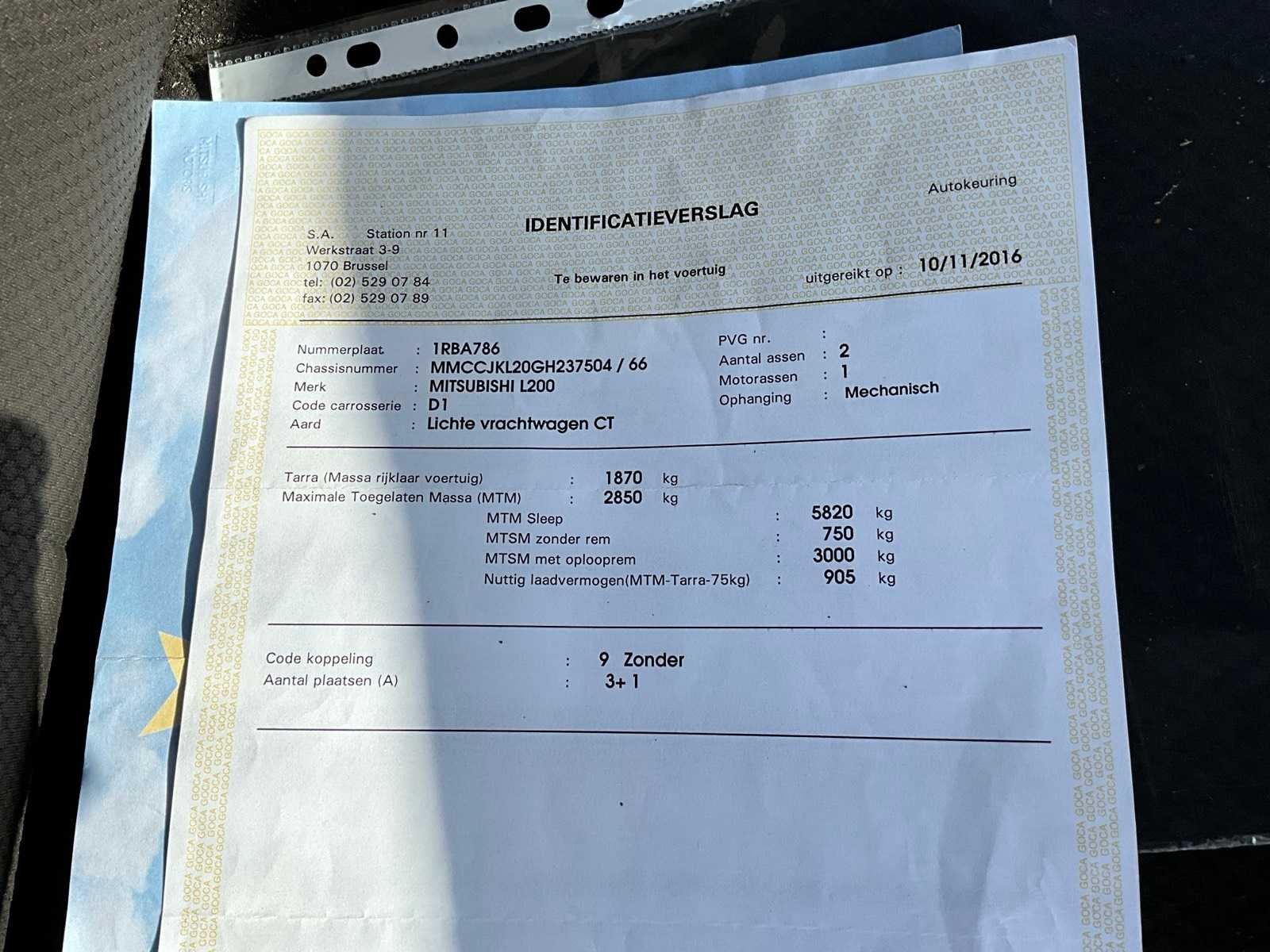 Nee Merk: Mitsubishi Model: L200 Bouwjaar: 2016 Afgelezen kilometerstand: 81439km Cilinderinhoud: 2442cc Vermogen (kW): 113kW Brandstof: diesel Datum eerste toelating: 02/11/2016 Transmissie: Handgeschakeld Aantal sleutels: 2 Nationaliteit documenten: Belgisch Start en rijdt: Ja startinformatie : Start en rijdt Vavato voert geen technische keuring uit.: true Inschrijvingsbewijs - deel 1 : Aanwezig Inschrijvingsbewijs - deel 2: Aanwezig