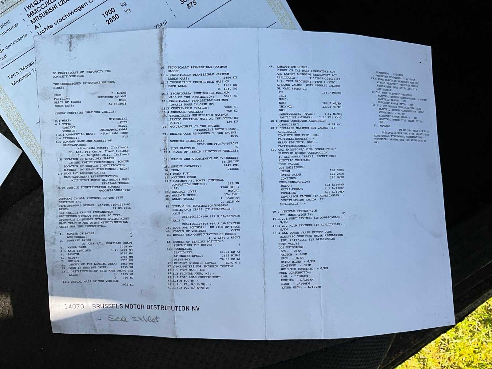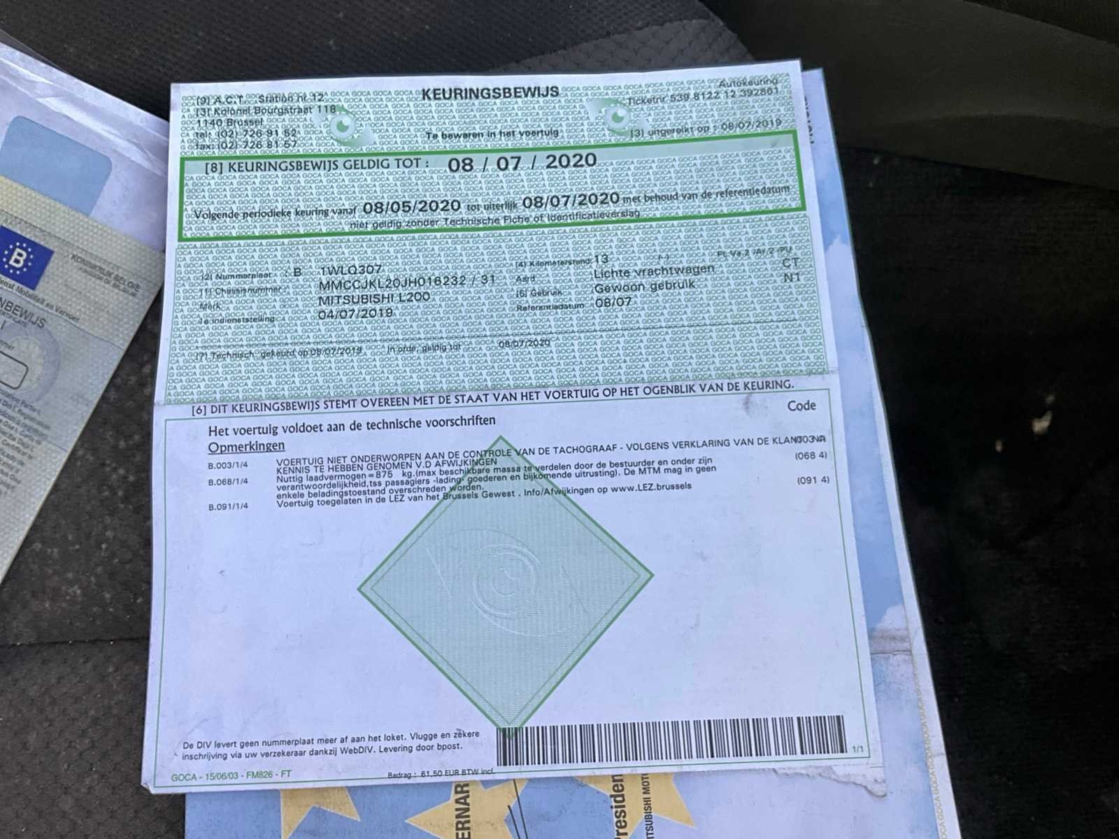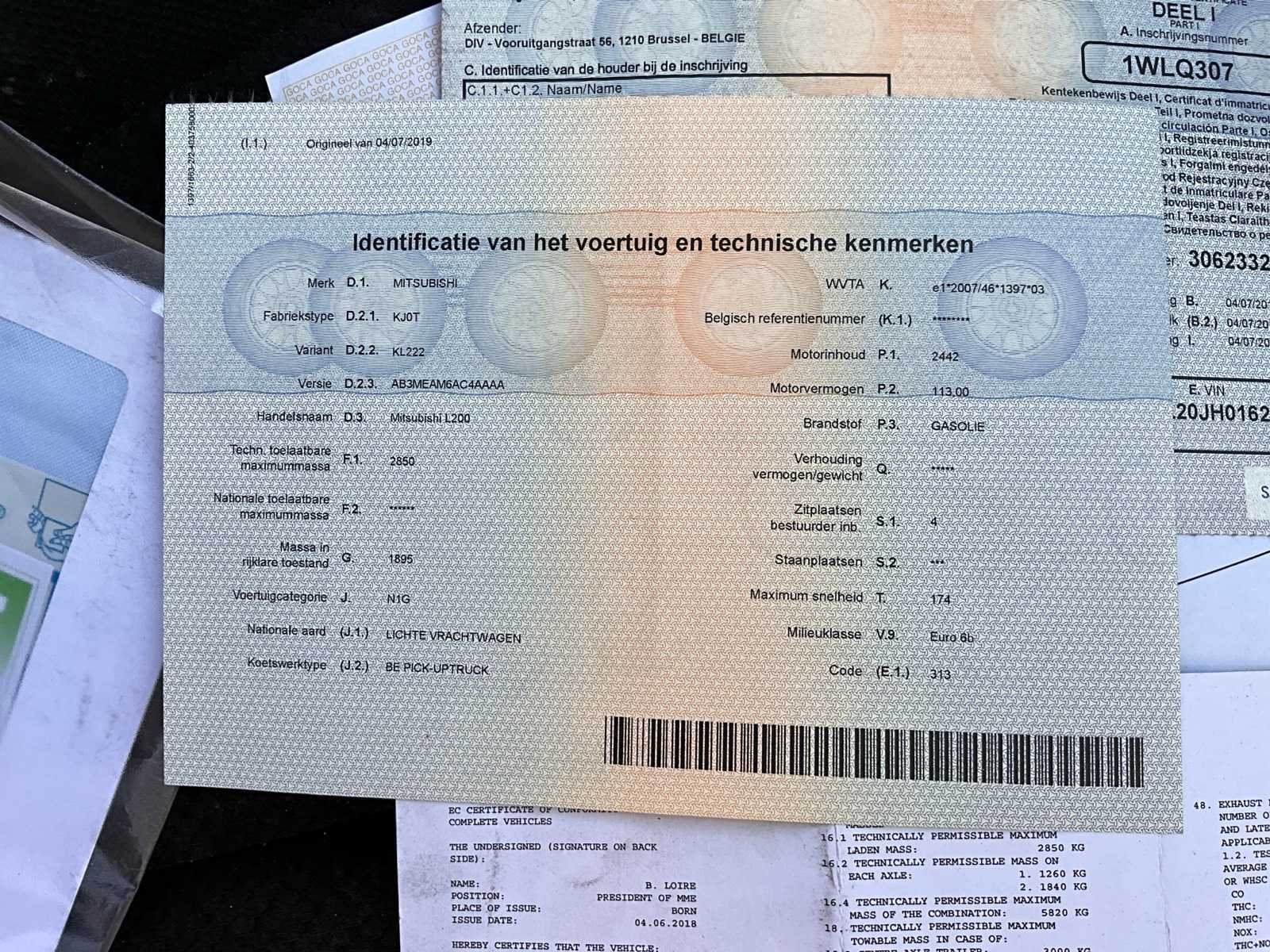 Nee Merk: Mitsubishi Model: L200 Bouwjaar: 2019 Afgelezen kilometerstand: 60371km Cilinderinhoud: 2442cc Vermogen (kW): 113kW Brandstof: diesel Datum eerste toelating: 04/07/2019 Transmissie: Handgeschakeld Aantal sleutels: 2 Nationaliteit documenten: Belgisch Start en rijdt: Ja startinformatie : Start en rijdt Vavato voert geen technische keuring uit.: true Inschrijvingsbewijs - deel 1 : Aanwezig Inschrijvingsbewijs - deel 2: Aanwezig