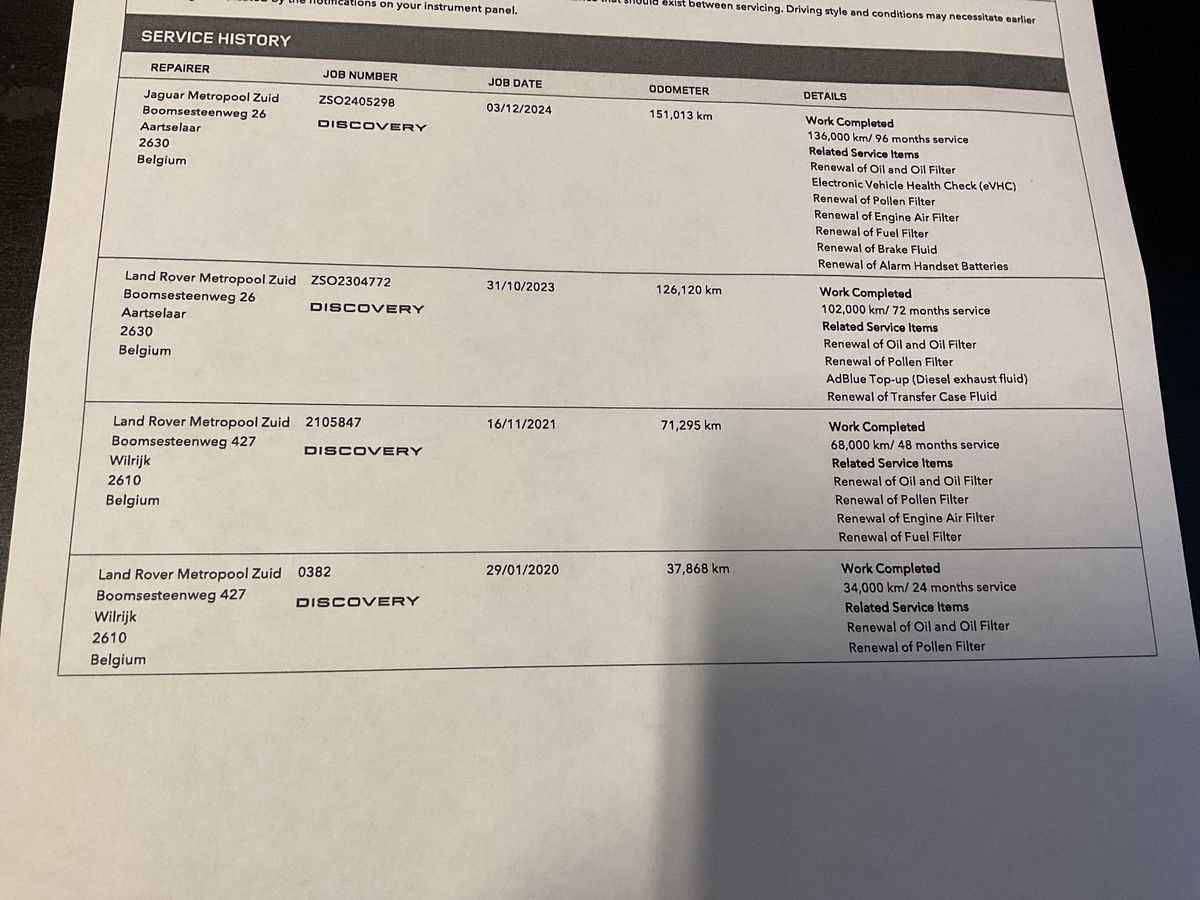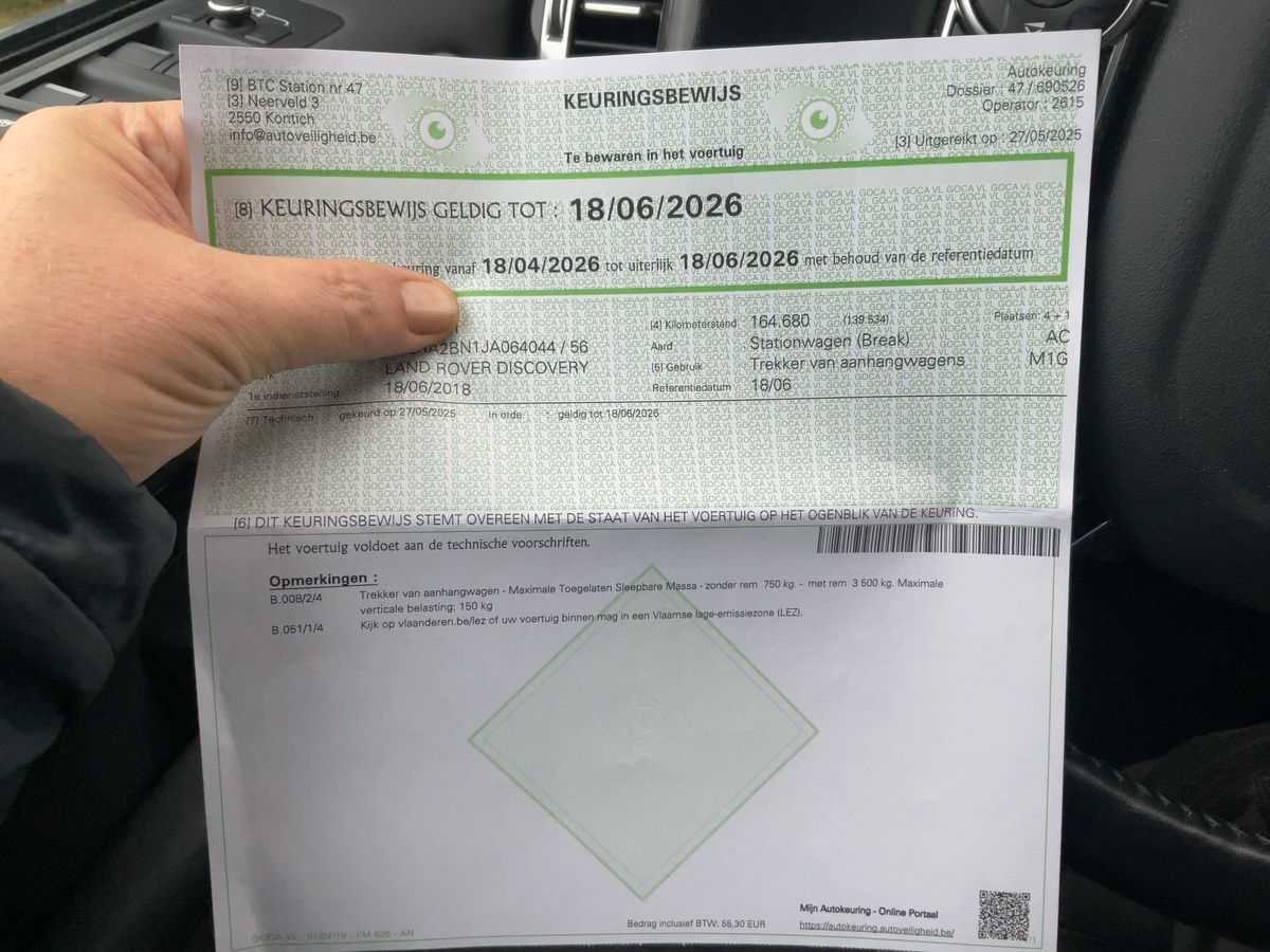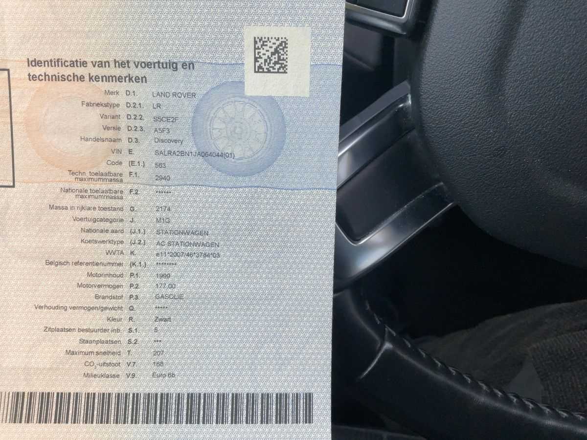 Victorinox limited edition 45/60 stuks. Eerste eigenaar. Alle papieren aanwezig- blanco gekeurd tot 18-06-2026. Ongevalvrije wagen. Nee Merk: Land Rover Model: Discovery 5 2.0 TD SD4 HSE Bouwjaar: 2018 Afgelezen kilometerstand: 174028km Cilinderinhoud: 1999cc Vermogen (kW): 177kW Brandstof: diesel Datum eerste toelating: 18/06/2018 Transmissie: Automaat Emissieklasse: Euro 6b Nationaliteit documenten: Belgisch Onderhoudshistorie: Aanwezig Start en rijdt: Ja Keuringsrapport geldig tot: 18/06/2026 startinformatie : Start en rijdt Inschrijvingsbewijs - deel 1 : Aanwezig Inschrijvingsbewijs - deel 2: Aanwezig