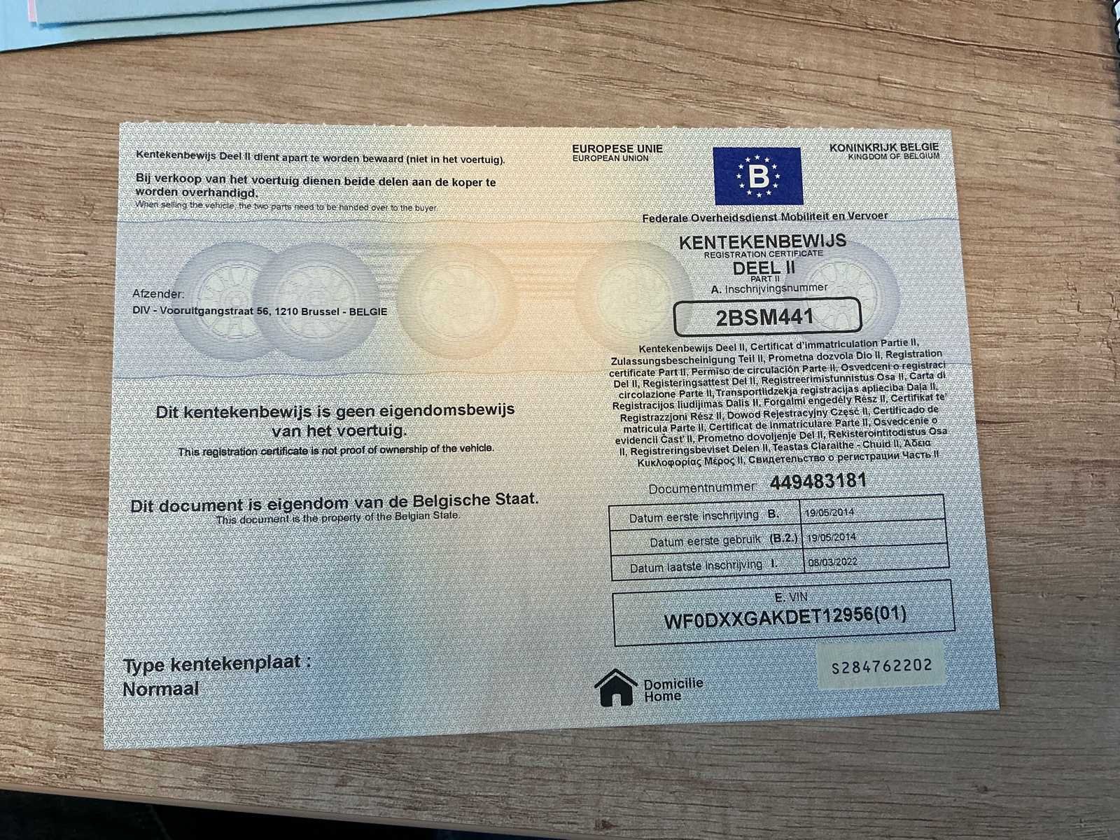 Hierbij is de ABS module te vervangen. Start en rijdt. No Merk: Ford Model: Fiesta Type: Hatchback Bouwjaar: 2014 Afgelezen kilometerstand: 252741km Cilinderinhoud: 998cc Vermogen (kW): 44kW Brandstof: Benzine Chassisnummer: WF0DXXGAKDET12956(01) Datum eerste toelating: 19/05/2014 Vermogen (pk): 100hp Energielabel: A Aandrijving: Voorwielaandrijving Aantal zitplaatsen: 5 Kleur: Grijs Transmissie: Handgeschakeld Stuurwiel: Links Emissieklasse: Euro 5b Aantal deuren: 5 Aantal sleutels: 2 Ledig gewicht: 1055kg Aantal cilinders: 3 Nationaliteit documenten: België Start en rijdt: Ja startinformatie : Ok Zichtbare schade: Krasjes Airconditioning: true Inschrijvingsbewijs - deel 1 : Aanwezig Inschrijvingsbewijs - deel 2: Aanwezig
