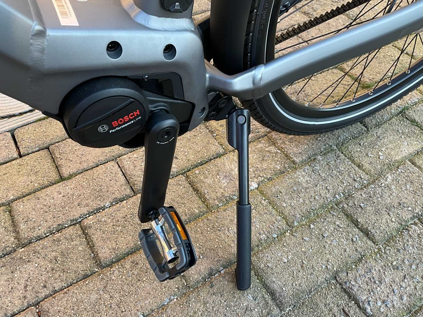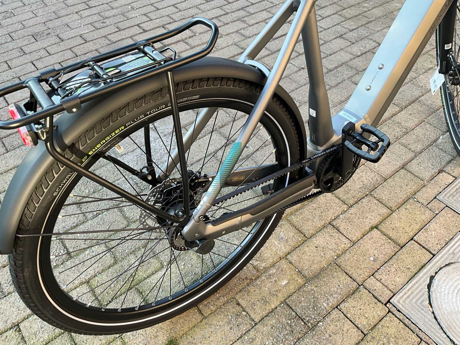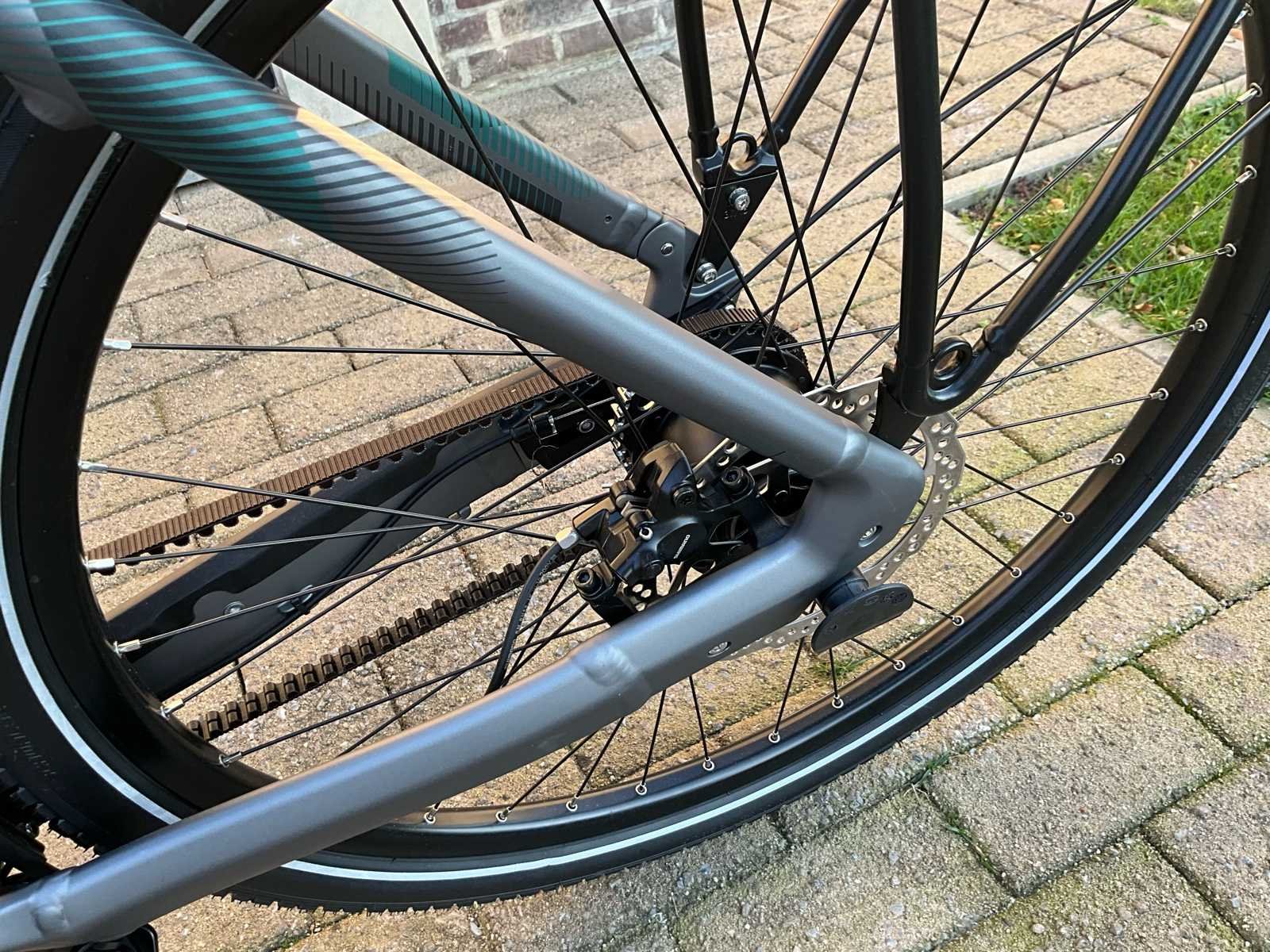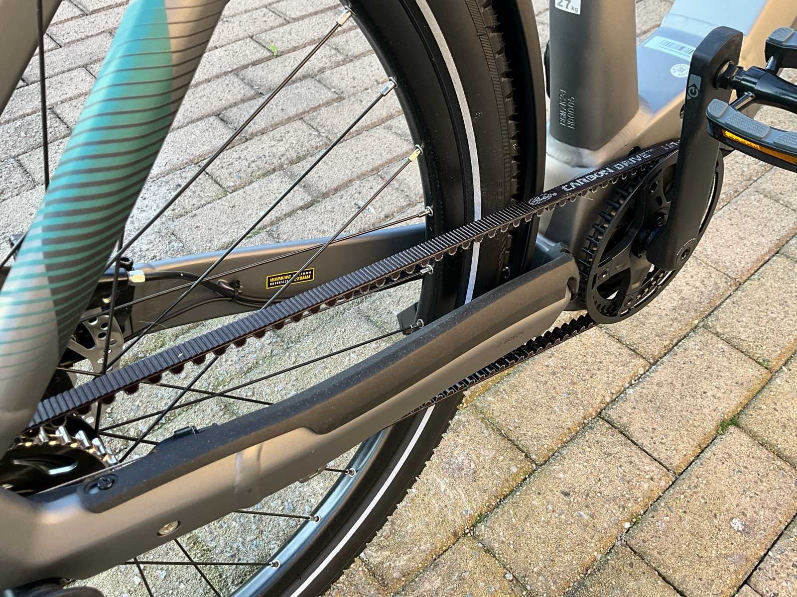 Bergamont Horizon Tour 3.5 elektrische fiets met krachtige Bosch middenmotor en onderhoudsarme Gates Carbon belt drive. Ideaal voor woon-werkverkeer, recreatieve ritten en dagelijks gebruik. Maat is XL. De fiets is voorzien van een strak aluminium frame met geïntegreerde accu, comfortabele voorvorkvering en een stabiele zithouding. Dankzij de riemaandrijving is er vrijwel geen onderhoud nodig (geen ketting, geen roest, geen smering). De Bosch Performance Line middenmotor zorgt voor krachtige en natuurlijke ondersteuning tot 25 km/u - geïntegreerde Bosch accu in frame - inclusief lader - Gates Carbon Drive riemaandrijving - Schwalbe Energizer Plus-banden - Comfort & Uitrusting: geïntegreerde verlichting, bagagedrager, spatborden, Bosch display, comfortabele rechte zithouding, ergonomisch stuur, stevige bagagedrager (max. 25 kg) geschikt voor fietstassen en kinderzitje. Nee Merk: Bergamont Model: Horizon Tour 3.5 Framemaat: XL Remsysteem: hydraulische schijfremmen Kleur: mat grijs Gewicht: 27 Materiaal: aluminium