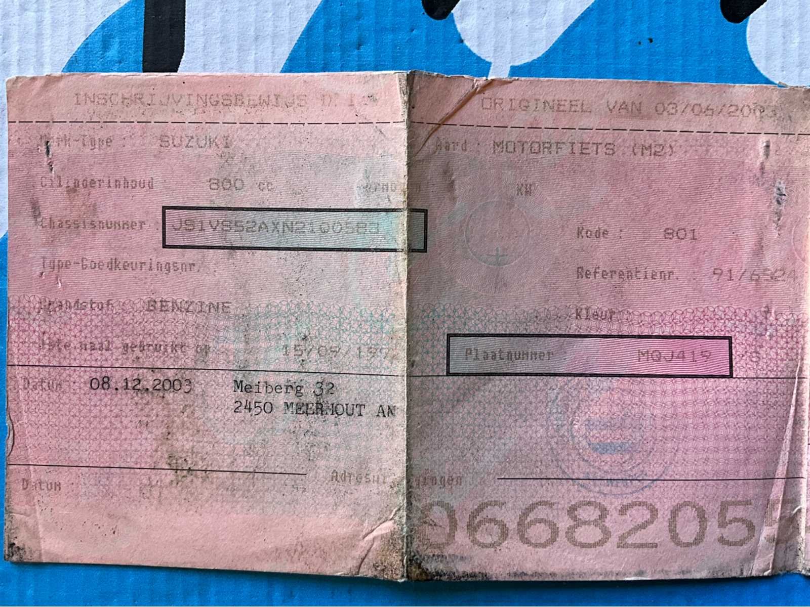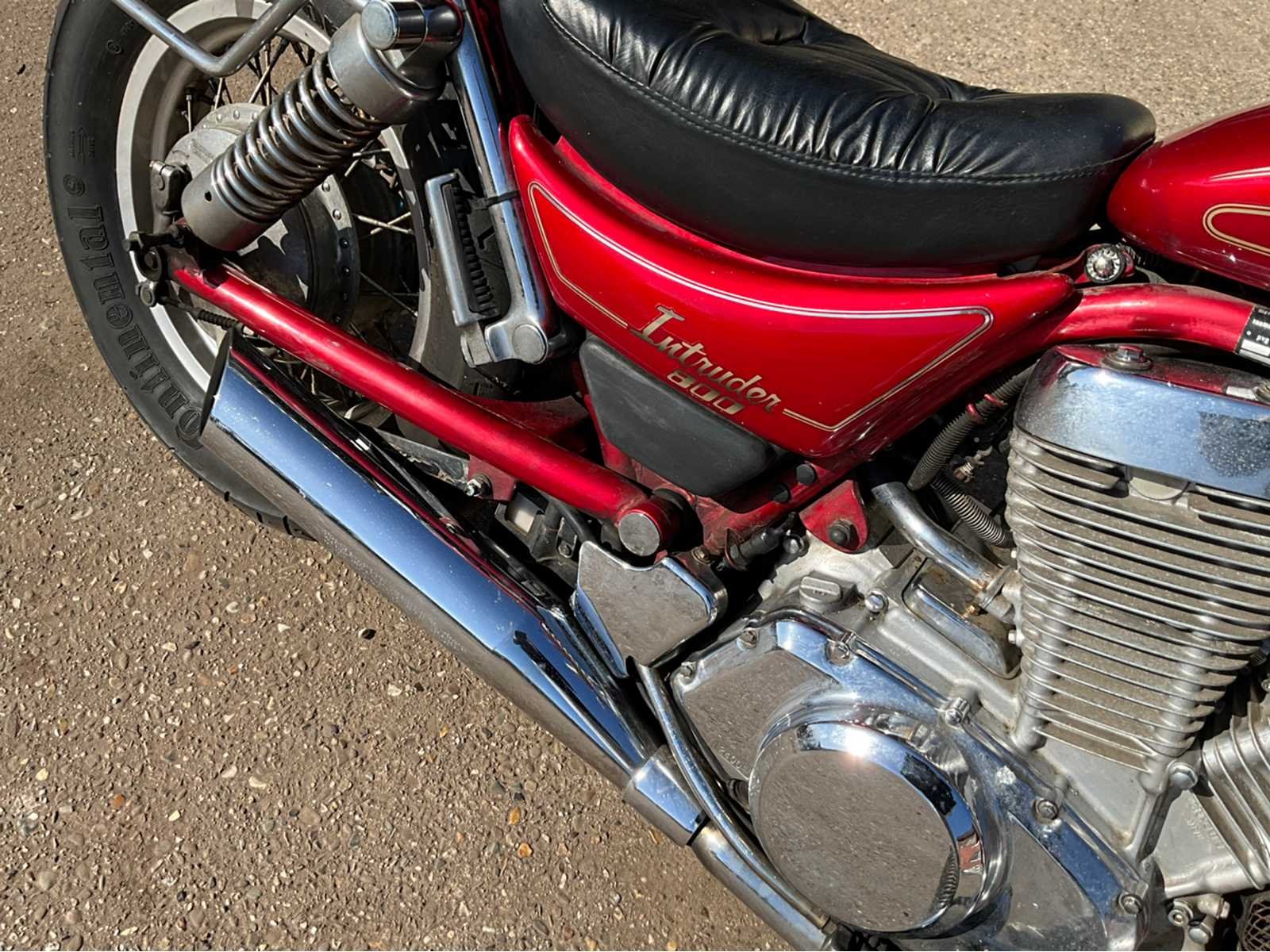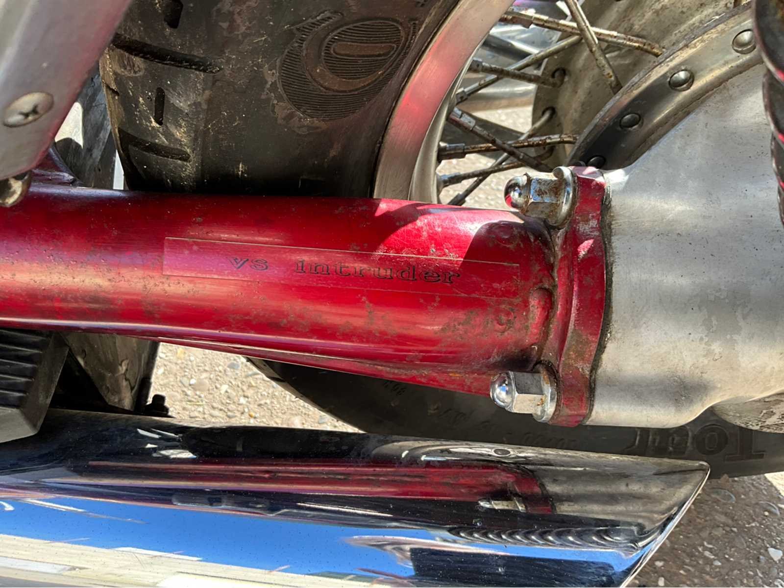 Deze klassieke V-Twin cruiser heeft jarenlang stilgestaan en wordt aangeboden als projectmotor of restauratiebasis. De motor heeft volgens opgave ongeveer **12 jaar stilgestaan** en **start momenteel niet**. Technische staat onbekend. De Suzuki Intruder staat bekend om zijn betrouwbare V-Twin motor en comfortabele cruiser-rijhouding. **Specificaties** * Merk: Suzuki * Model: Intruder VS800 * Type: cruiser / chopper * Motor: V-Twin, luchtgekoeld * Cilinderinhoud: **805 cc** * Vermogen: ca. **38 kW (±52 pk)** * Aandrijving: **cardanas** * Versnellingsbak: 5 versnellingen * Brandstof: benzine * Koeling: luchtgekoeld * Remmen: * voor: schijfrem * achter: trommelrem * Wielen: spaakwielen * Banden: Continental * Zitplaatsen: 2 **Kilometerstand** * Afgelezen kilometerstand: ca. **20.539 miles** (≈ 33.000 km) * Kilometerstand niet gegarandeerd. **Uitvoering** * Rode lak * Duozadel met rugsteun * Spaakwielen * Originele uitlaten * Cruiser stuur * Voetsteunen bestuurder en passagier **Documenten** * Belgisch inschrijvingsbewijs aanwezig * Sleutels aanwezig **Staat** * Motor **start momenteel niet** * Heeft ongeveer **12 jaar stilgestaan** * Technische controle en onderhoud vereist * Gebruikerssporen en lichte oxidatie zichtbaar Nee Merk: Suzuki Model: Intruder VS800 Type: - 805cc V-Twin cruiser Cilinderinhoud: 805cc Afgelezen kilometerstand: 33000km
