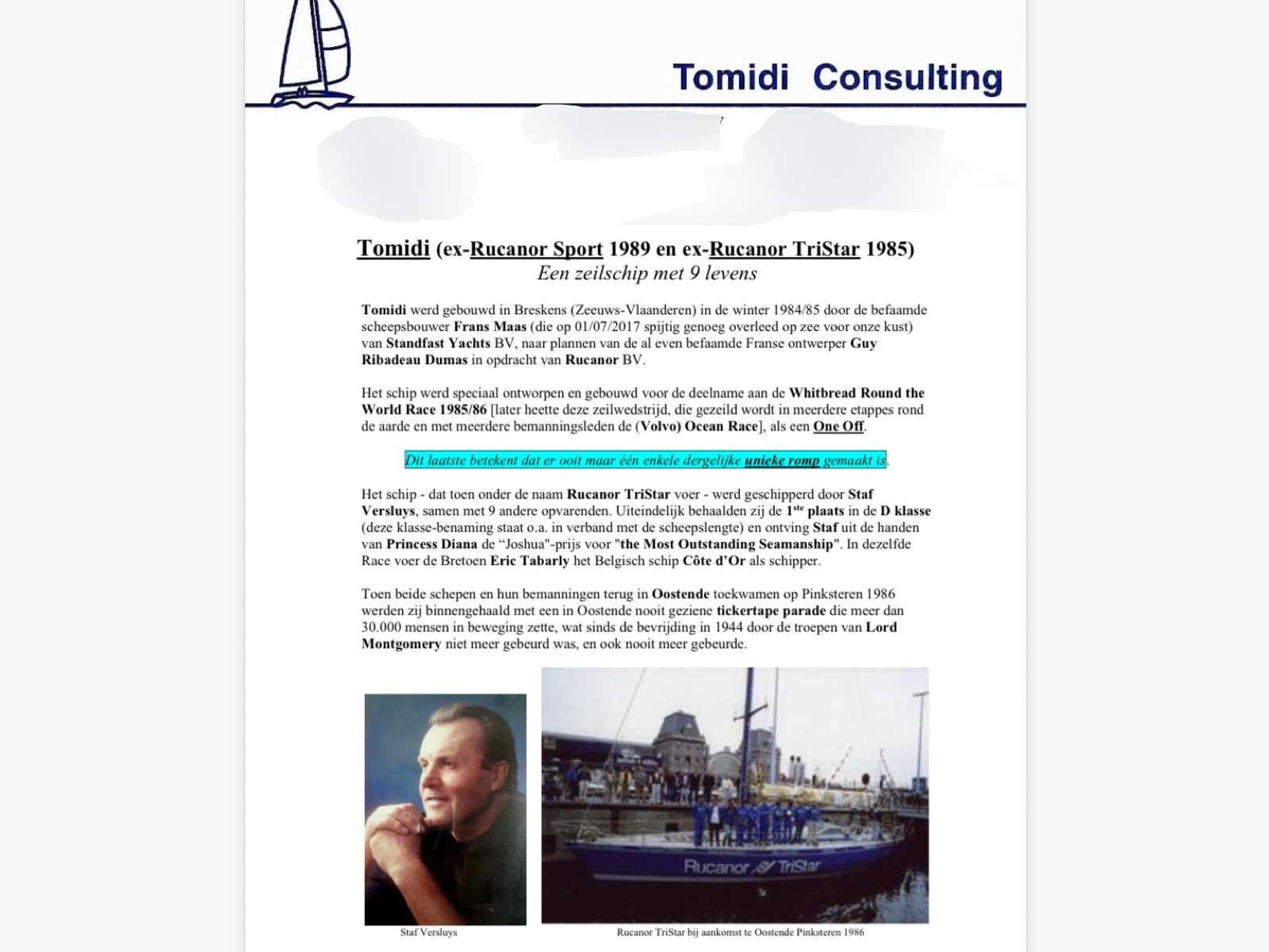 Unieke romp (1exemplaar) Motor nog in goede staat (motor van 2008) Kan onmiddellijk gebruikt worden Historisch schip Vlaams varend erfgoed sinds 2009 (dossier kan overgenomen worden) Zelf transport voorzien door de koper, kan ook ter water gelegd worden( op kosten van de koper) en varen naar locatie kan ook mogelijk op motor No Merk: Standfast Type: 57 Werf: Standfast jots Breedte: 488cm Diepgang: 3m Doorvaarthoogte: 4m Bouwjaar: 1985 Rompmateriaal: Epoxie Aantal slaapplaatsen: 14 Stahoogte: 205cm Aantal motoren: 1 Type motor: Volvo penta Vermogen (pk): 55 Brandstof: Diesel Ligplaats lokatie: Oostende Aantal cilinders: 4 Afgelezen urenstand: 2000 Inhoud brandstoftank: 280l Aantal masten: 0
