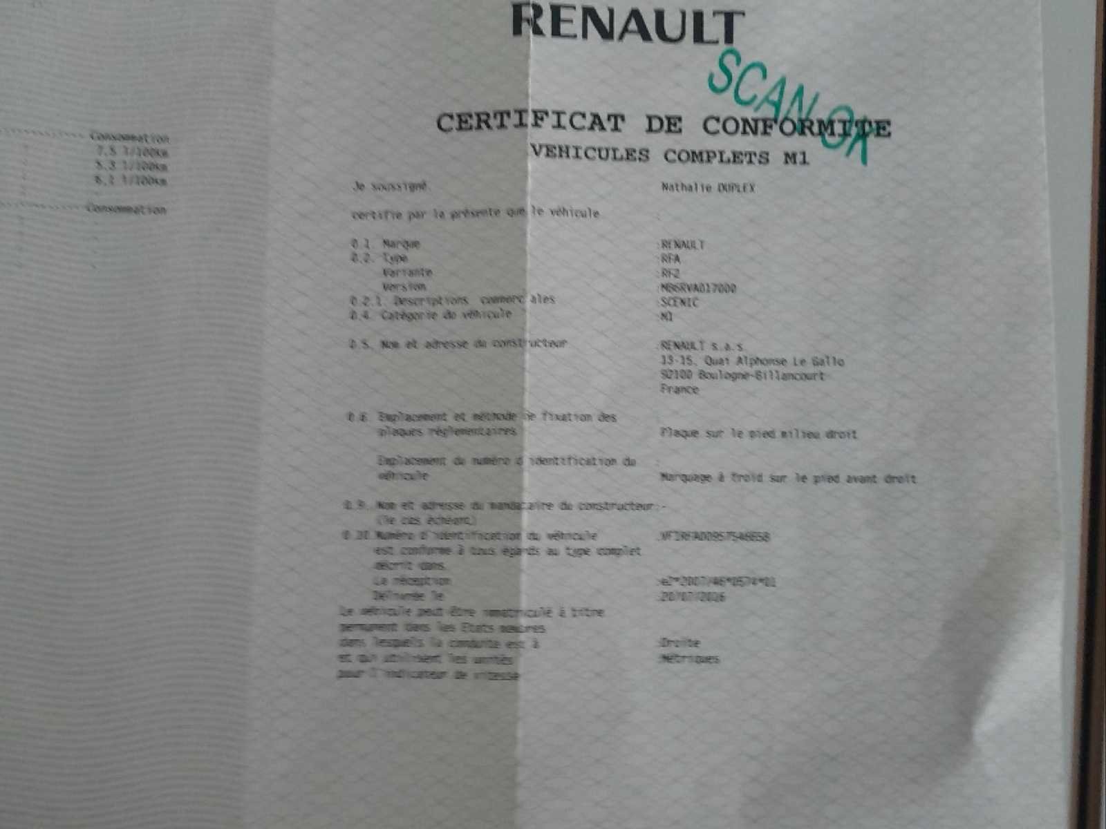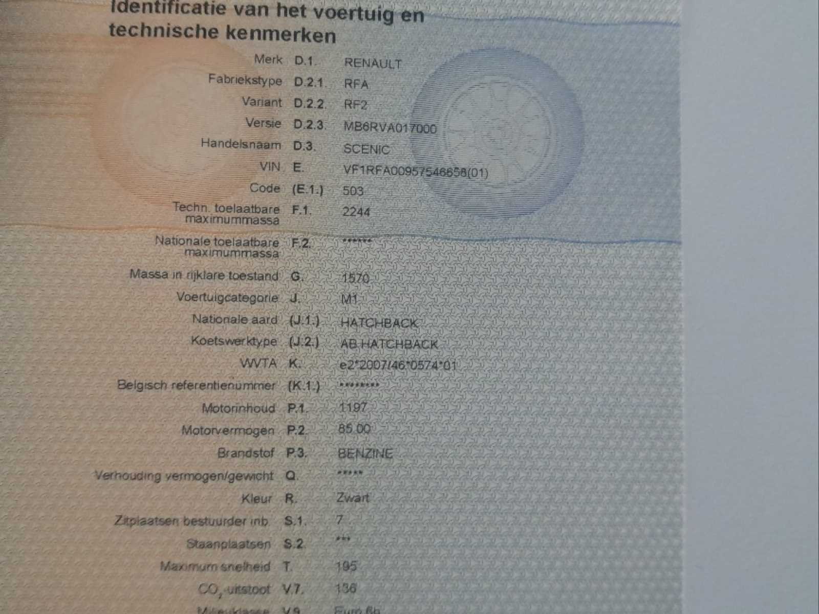 Renault Grand Scenic Benzine – 7 plaatsen – Euro 6b – Eerste eigenaar – VIN VF1RFA00957546658 Renault Grand Scenic, een ruime en comfortabele gezinswagen met 7 zitplaatsen. Dit model staat bekend om zijn lage verbruik voor een benzine, en zeer praktische binnenruimte. Ideaal voor gezinnen of mensen die veel plaats nodig hebben. Het gaat om een Euro 6b benzine motor van 85 kW, waardoor de wagen in alle lage-emissiezones mag rijden. De wagen is afkomstig van eerste eigenaar en alle documenten zijn aanwezig. Algemene gegevens Merk: Renault Model: Grand Scenic Brandstof: Benzine Vermogen: 85 kW Emissienorm: Euro 6b VIN / chassisnummer: VF1RFA00957546658 Kilometerstand: 173.000 km Aantal zitplaatsen: 7 Aantal eigenaars: 1 Transmissie: Manueel Uitrusting / opties 4 elektrische ruiten Aluminium velgen (4) Parkeersensoren achter Airco / klimaatregeling Centrale vergrendeling Inklapbare achterzetels Grote koffer 2 originele sleutels Alle papieren aanwezig Staat van de wagen onderhoud te voorzien De wagen rijdt goed en wordt nog gebruikt. Carrosserie heeft rondom normale gebruikssporen en kleine krasjes volgens leeftijd en kilometerstand, maar niets abnormaal. Ideale wagen voor gezin, lange ritten of dagelijks gebruik. No Merk: Renault Model: Grand Scenic Bouwjaar: 2017 Afgelezen kilometerstand: 173000km Vermogen (kW): 85kW Chassisnummer: VF1RFA00957546658 Datum eerste toelating: 30052017 Aantal zitplaatsen: 7 Stuurwiel: links Emissieklasse: 6b Aantal sleutels: 2 Vavato voert geen technische keuring uit.: true Inschrijvingsbewijs - deel 1 : ok Inschrijvingsbewijs - deel 2: ok