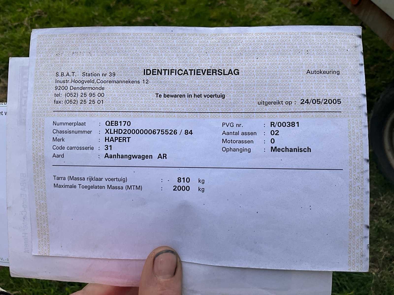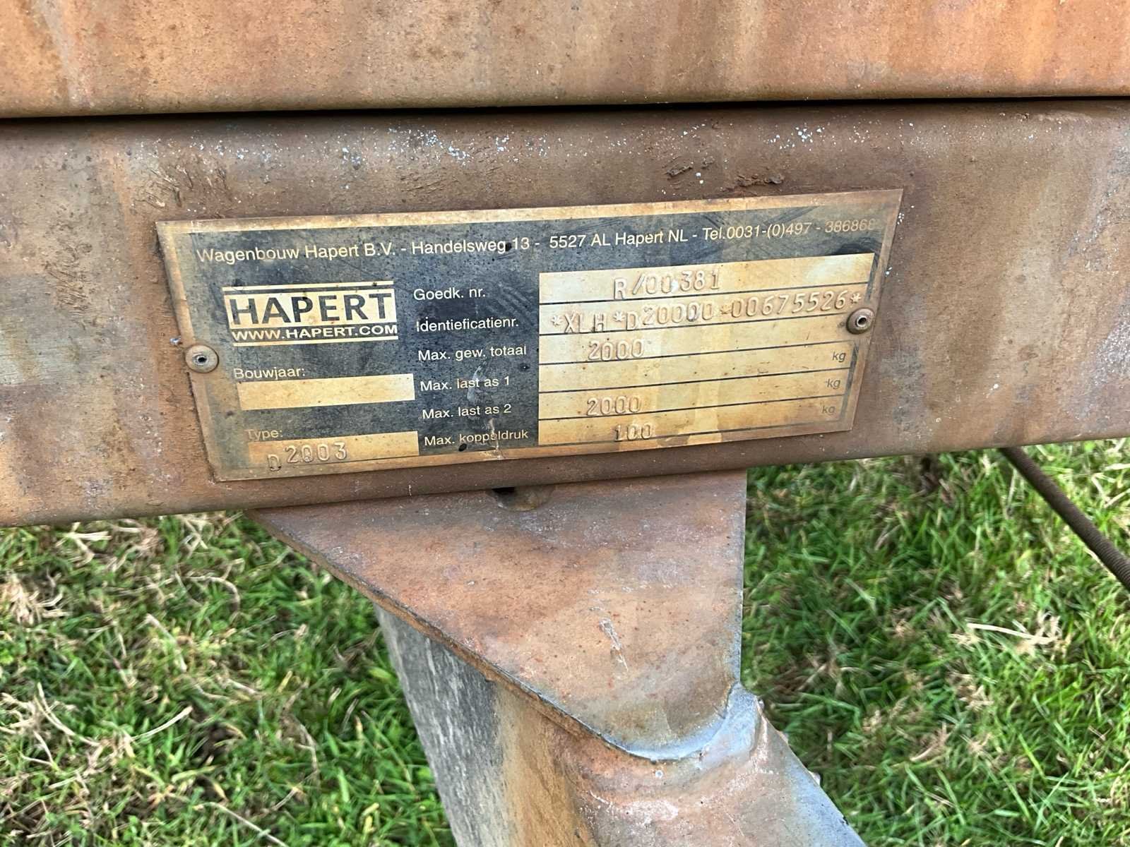 Algemeen goede start Nee Merk: hapert Type: D2003 Bouwjaar: 2005 Aantal assen: 2 Laadbak afmeting l: 300cm Laadbak afmeting b: 180cm Ledig gewicht: 810kg Laadvermogen: 2000kg Hoogte: 70cm Lengte: 300cm Breedte: 180cm