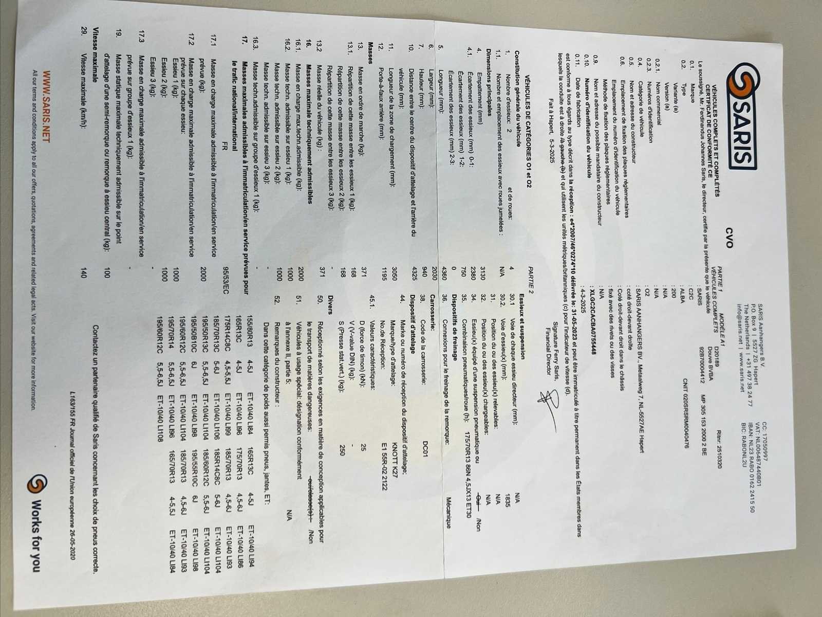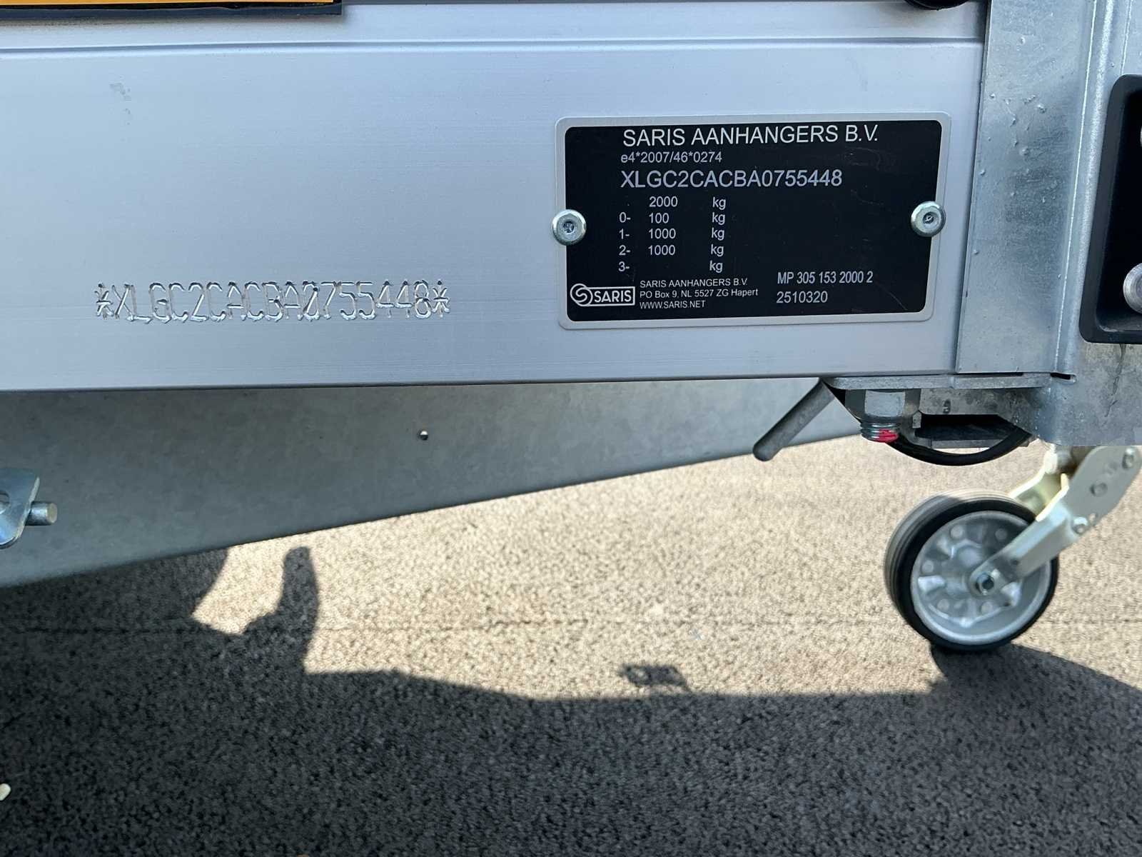 - MTM 2000KG - Hoogte binnenafmeting: 1800mm No Merk: SARIS Model: MAC Bouwjaar: 2025 Chassisnummer: XLGC2CACBA0755448 Aantal assen: 2 Laadbak afmeting l: 305cm Laadbak afmeting b: 153cm Ledig gewicht: 371kg Datum eerste toelating: 04/03/2025
