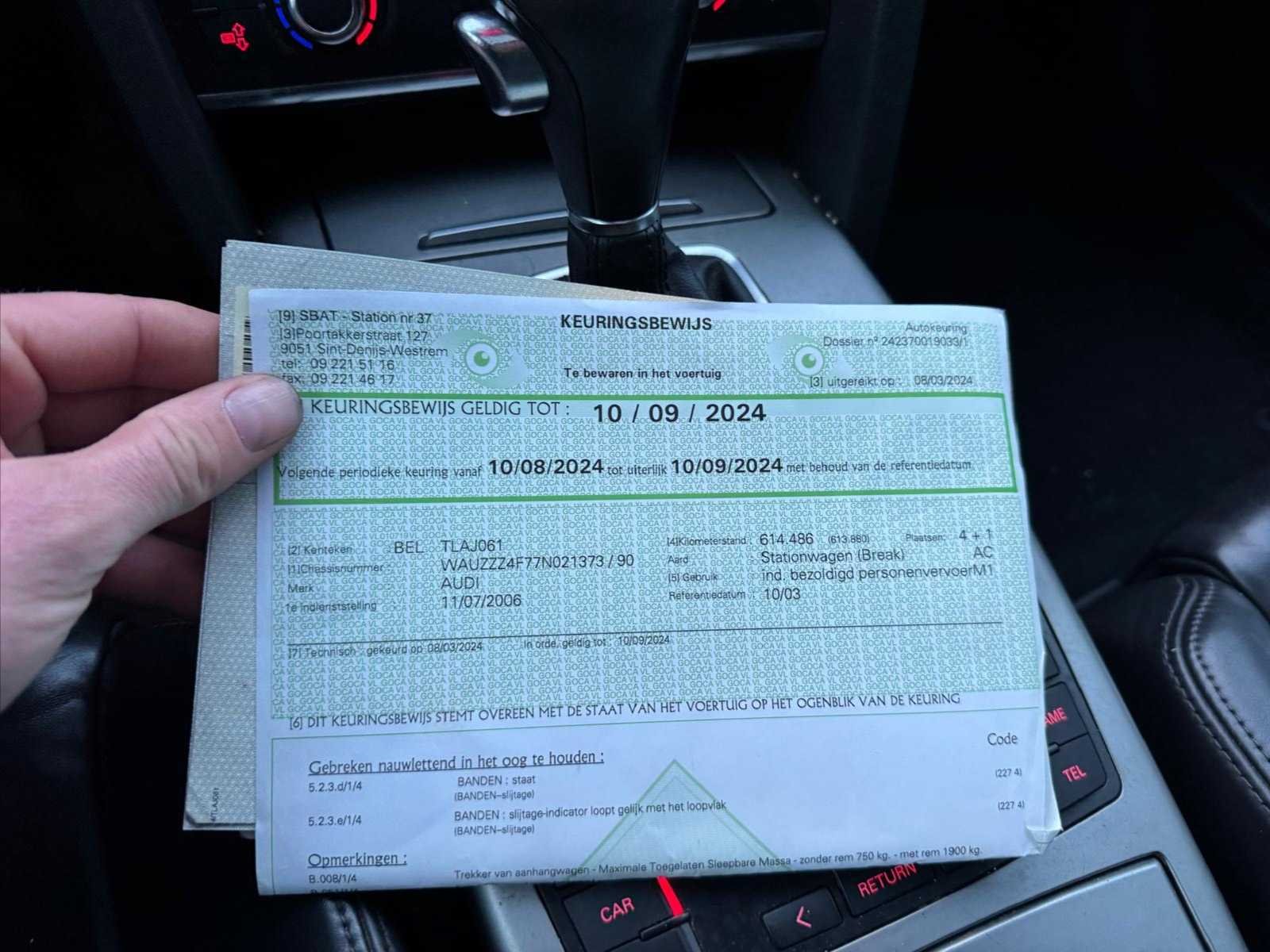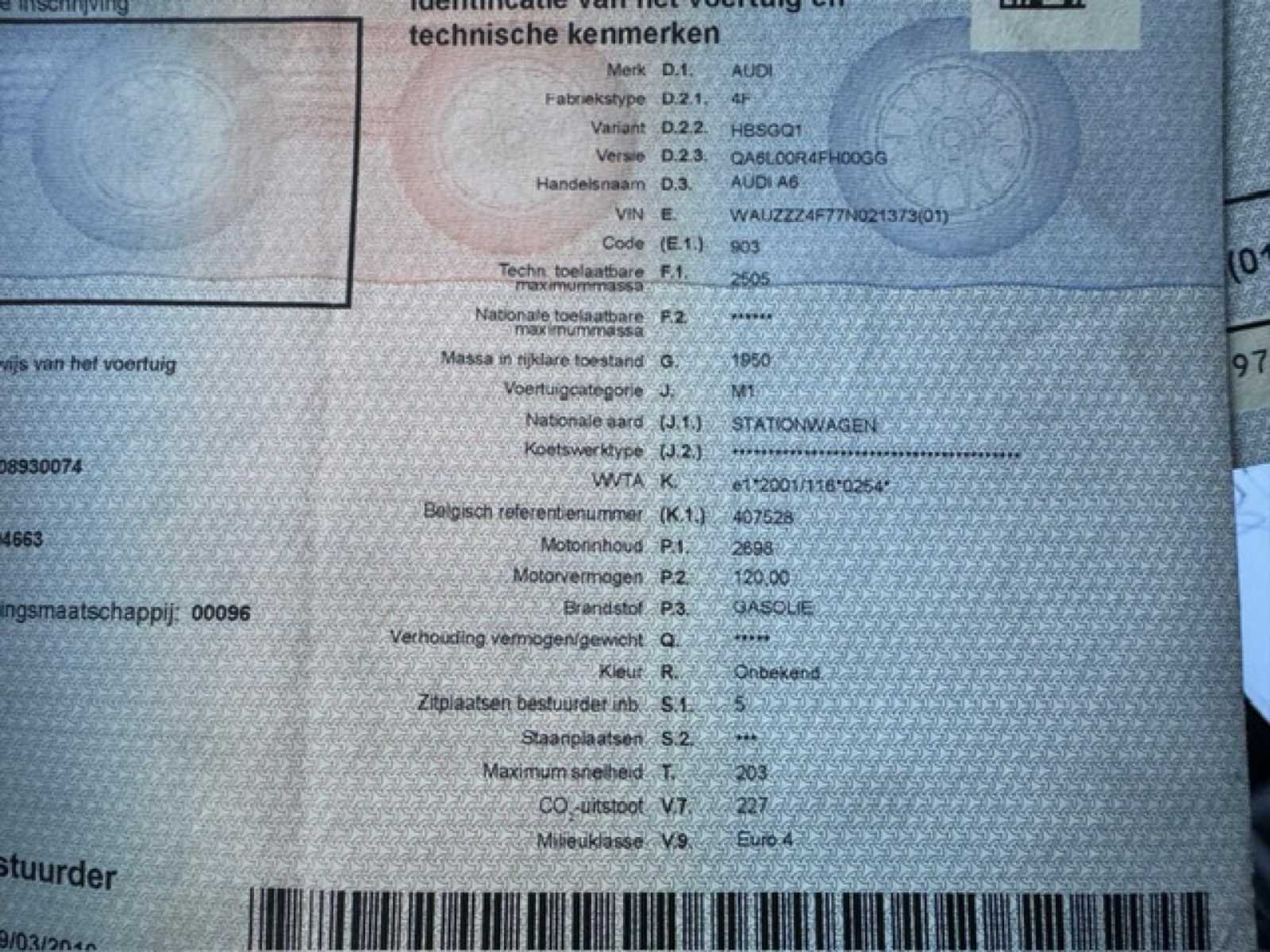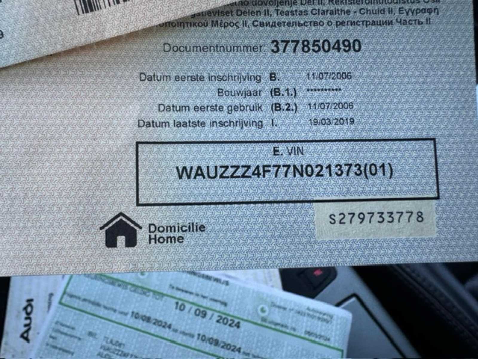No Merk: Audi Model: A Type: 4F Bouwjaar: 2006 Afgelezen kilometerstand: 615047km Cilinderinhoud: 2696cc Vermogen (kW): 120kW Brandstof: Diesel Chassisnummer: WAUZZZ4F77N021373 Datum eerste toelating: 11/07/2006 Aantal zitplaatsen: 5 Transmissie: Automaat Emissieklasse: Euro 4 Aantal sleutels: 1 Nationaliteit documenten: Belgische Start en rijdt: Ja Keuringsrapport geldig tot: 10/09/2024 Vavato voert geen technische keuring uit.: true Inschrijvingsbewijs - deel 1 : Aanwezig Inschrijvingsbewijs - deel 2: Aanwezig