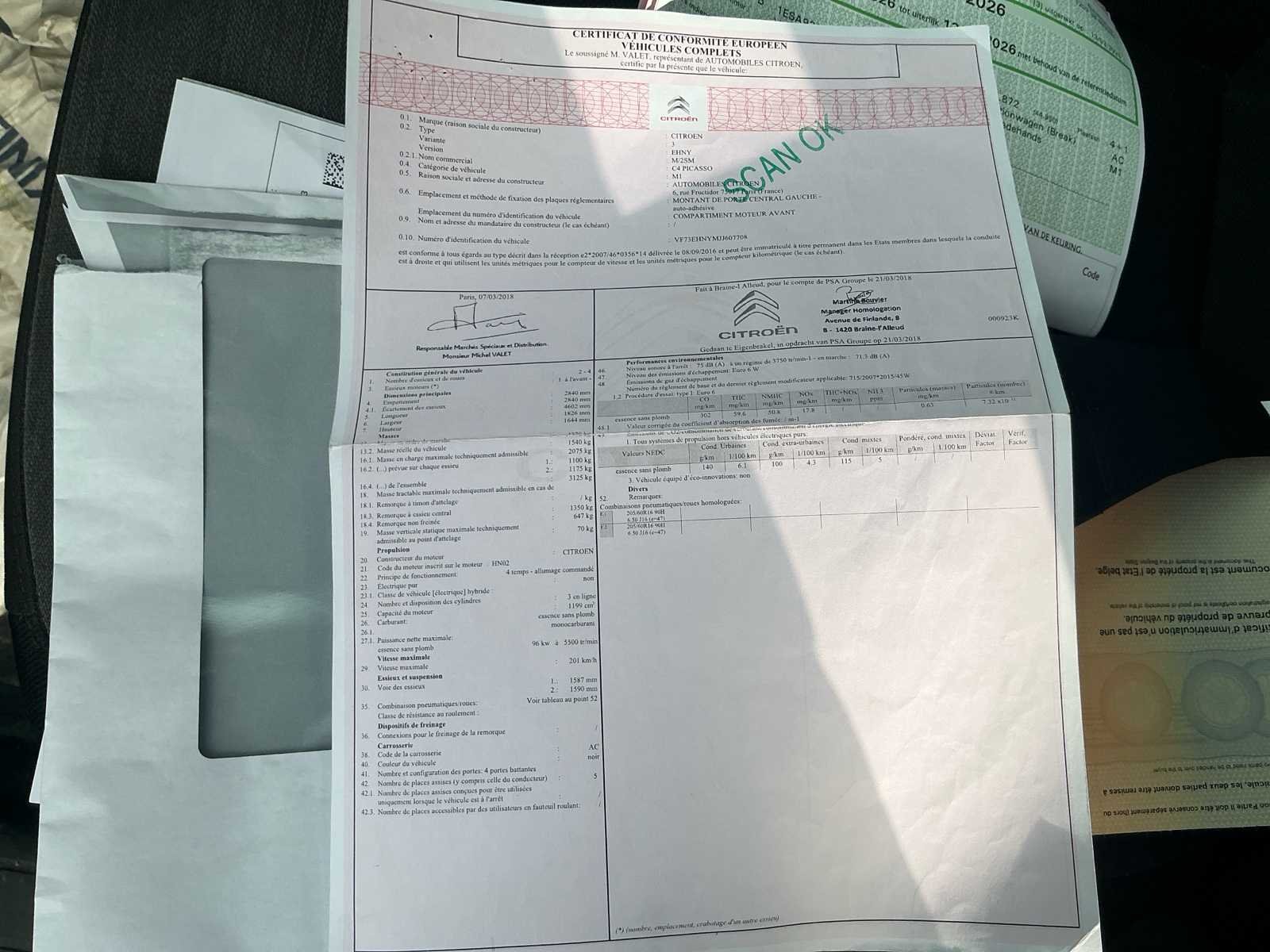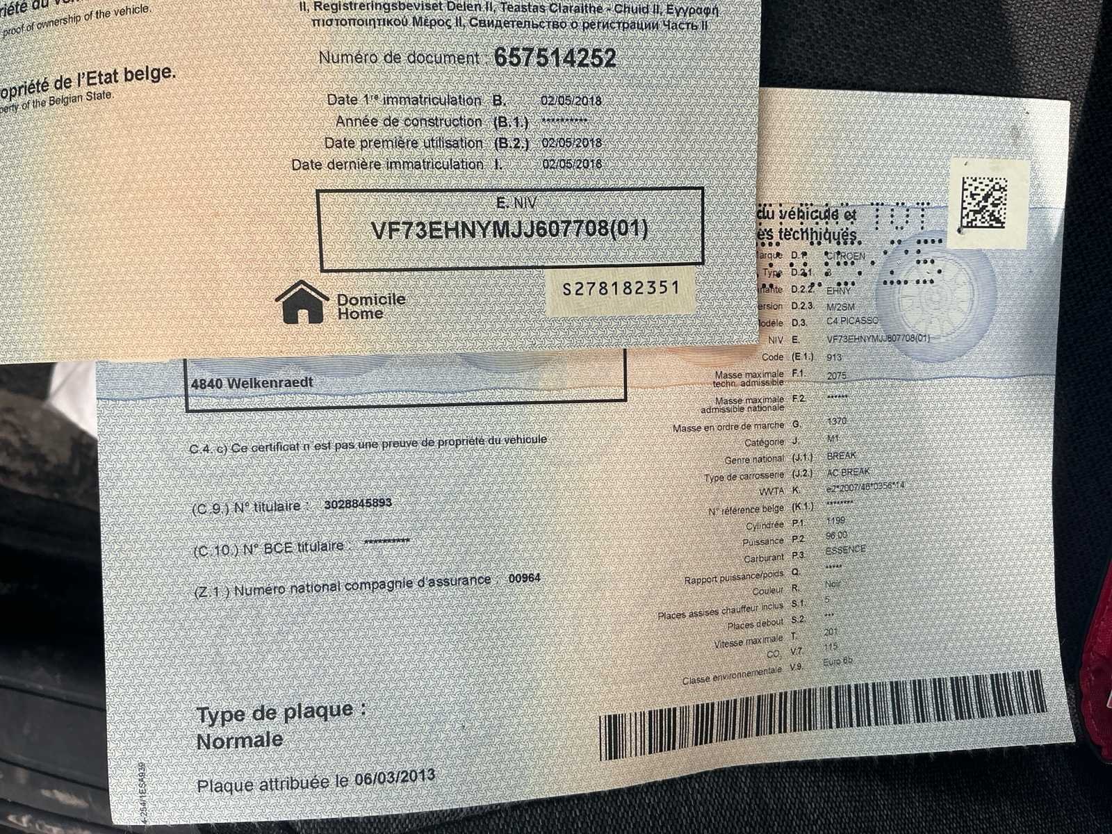 Achterruitkijkcamera aanwezig No Merk: Citroën Model: C4 Picasso Bouwjaar: 2018 Afgelezen kilometerstand: 69333km Cilinderinhoud: 1199cc Vermogen (kW): 96kW Brandstof: Benzine Chassisnummer: VF73EHNYMJJ607709 Datum eerste toelating: 02/05/2028 Transmissie: Handgeschakeld Emissieklasse: Euro 6b Start en rijdt: Ja Keuringsrapport geldig tot: 13/03/2026 Vavato voert geen technische keuring uit.: true Inschrijvingsbewijs - deel 1 : Aanwezig Inschrijvingsbewijs - deel 2: Aanwezig