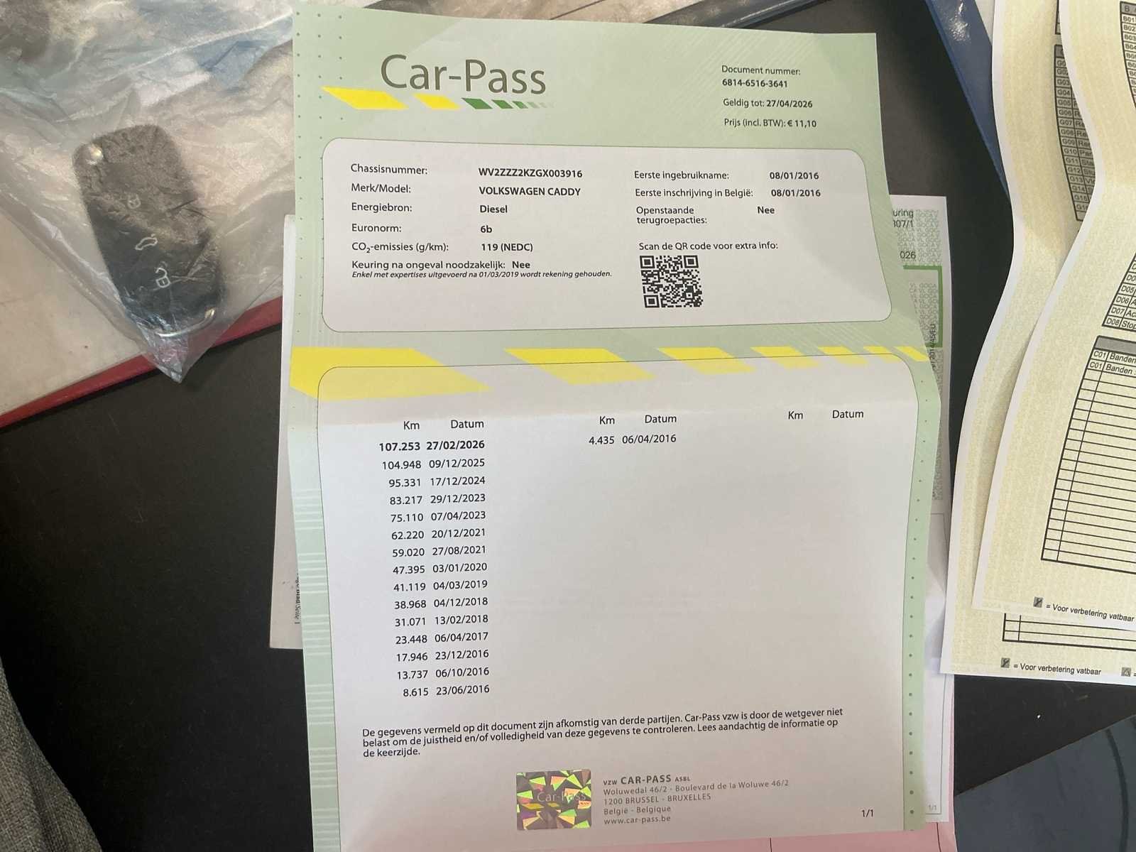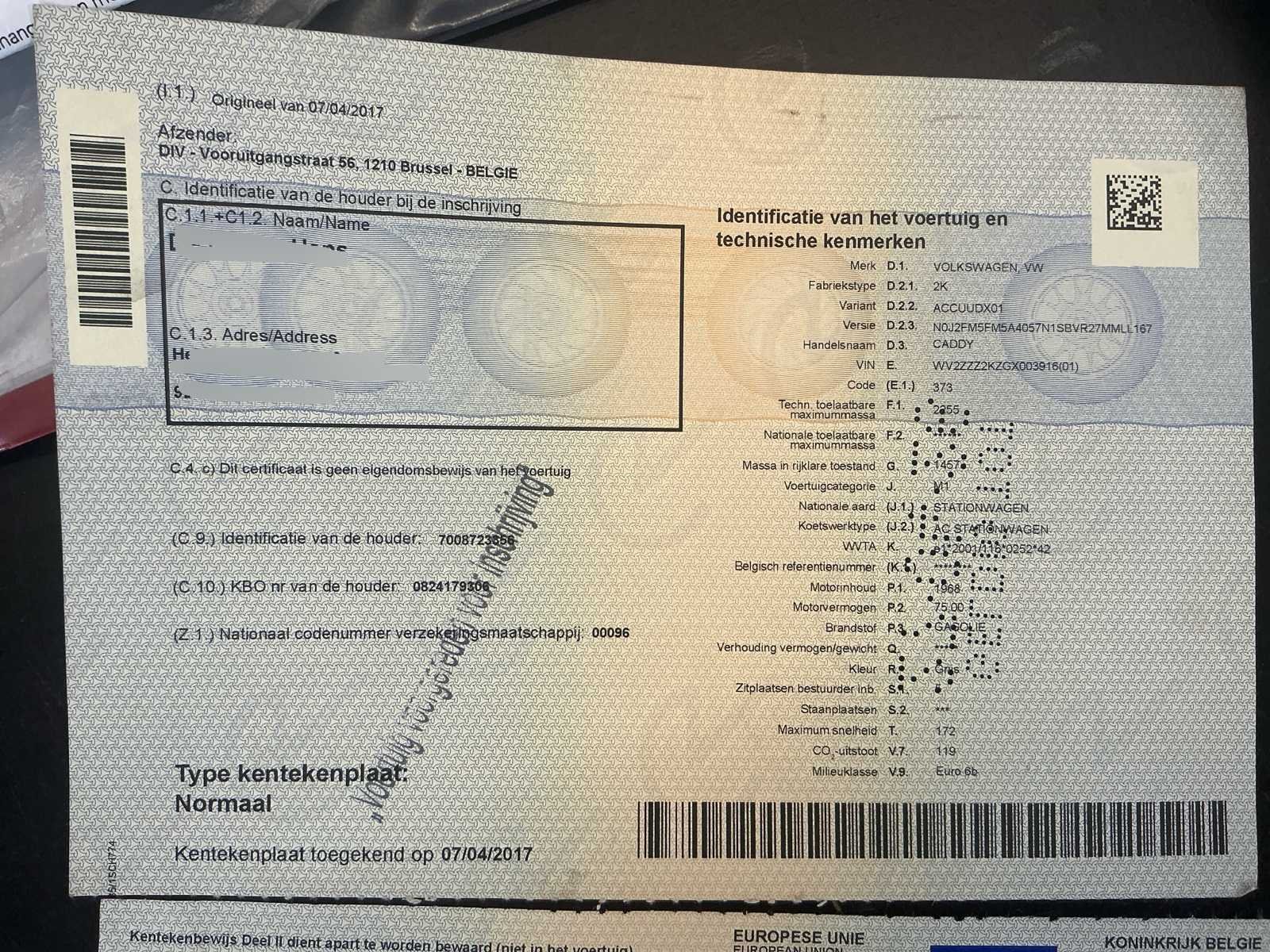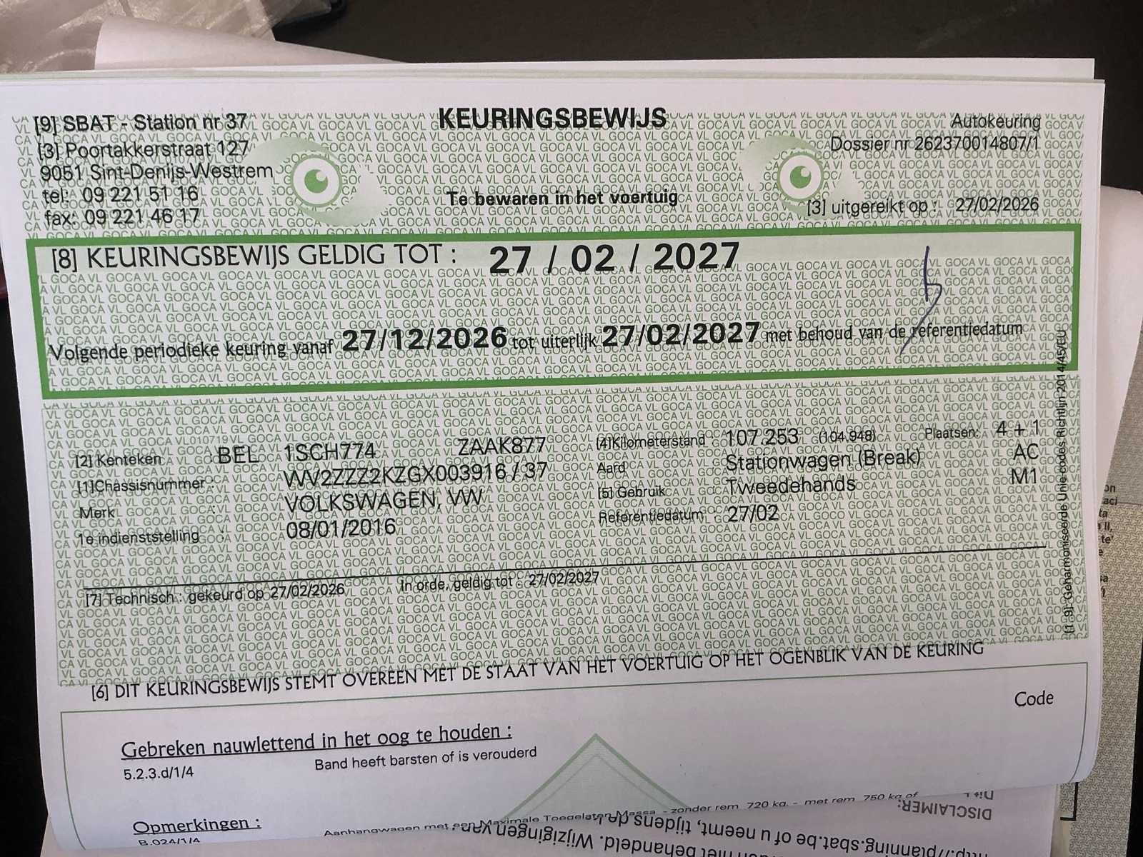 Nee Merk: Volkswagen Model: Caddy Type: 2K Bouwjaar: 2015 Afgelezen kilometerstand: 107327km Cilinderinhoud: 1968cc Vermogen (kW): 75kW Brandstof: Diesel Chassisnummer: WV2ZZZ2KZGX003916 Datum eerste toelating: 08/01/2016 Aantal zitplaatsen: 5 Transmissie: Handgeschakeld Emissieklasse: Euro 6b Aantal sleutels: 2 Nationaliteit documenten: Belgische Gelijkvormigheidsattest aanwezig: true Carpass: true Start en rijdt: Ja Keuringsrapport geldig tot: 27/02/2027 Vavato voert geen technische keuring uit.: true Inschrijvingsbewijs - deel 1 : Aanwezig Inschrijvingsbewijs - deel 2: Aanwezig
