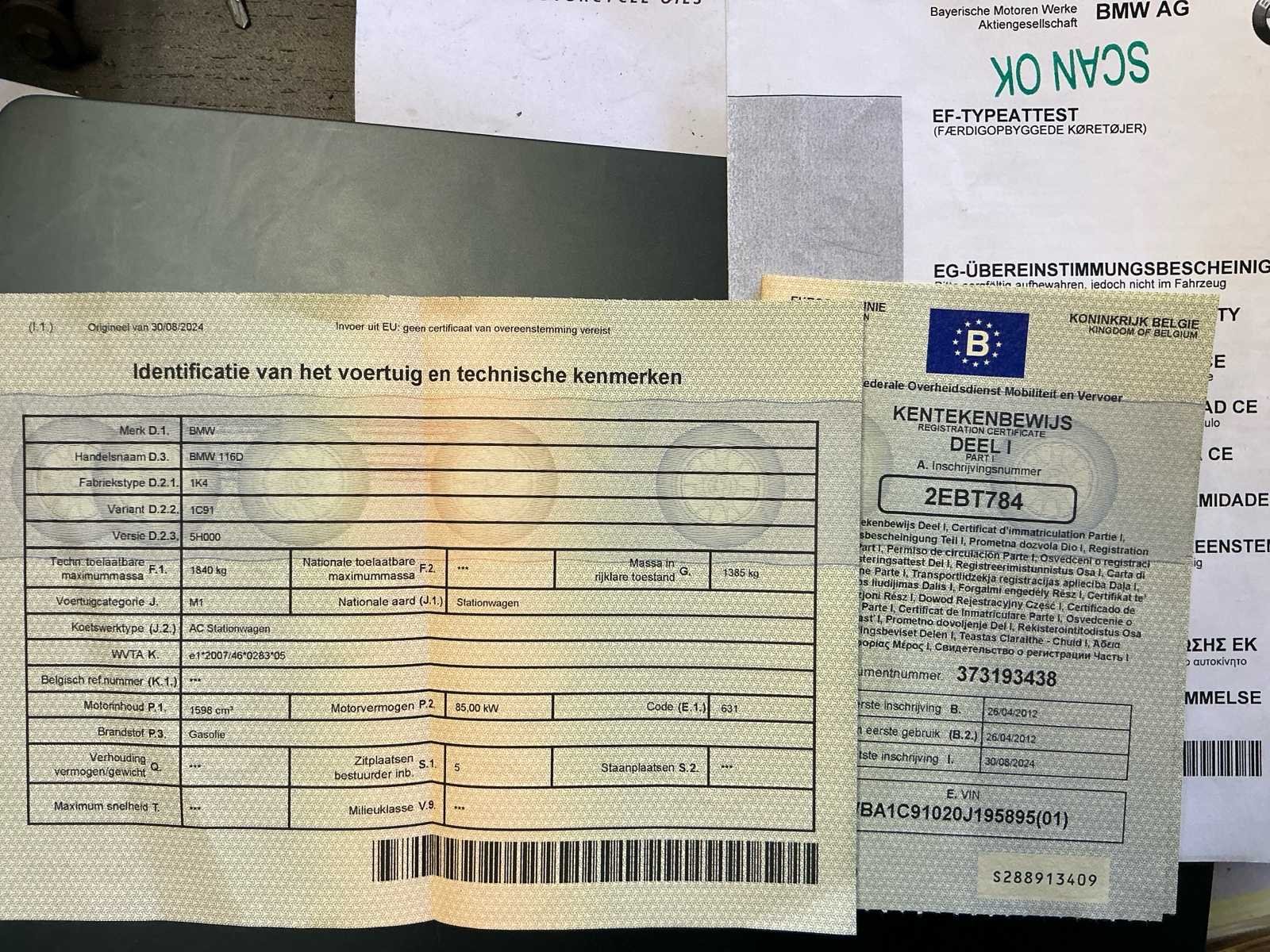 No Merk: BMW Model: 1 serie Type: 116D Bouwjaar: 2012 Afgelezen kilometerstand: 208000km Cilinderinhoud: 1598cc Vermogen (kW): 85kW Brandstof: Diesel Chassisnummer: WBA1C91020J195895 Datum eerste toelating: 26/04/2012 Vermogen (pk): 116hp Energielabel: EURO 5 Aandrijving: RWD Aantal zitplaatsen: 5 Kleur: Wit Transmissie: Manueel Stuurwiel: Links Emissieklasse: EURO 5 Aantal deuren: 5 Aantal sleutels: 1 Ledig gewicht: 1385kg Aantal cilinders: 4 Carrosserie: Hatchback Nationaliteit documenten: Belgische Start en rijdt: NEEN Zichtbare schade: Zie foto’s No self drive export!: true Vavato voert geen technische keuring uit.: true Airconditioning: true Navigatie: true LED-koplampen: true Leder bekleed: true Inschrijvingsbewijs - deel 1 : AANWEZIG Inschrijvingsbewijs - deel 2: AANWEZIG