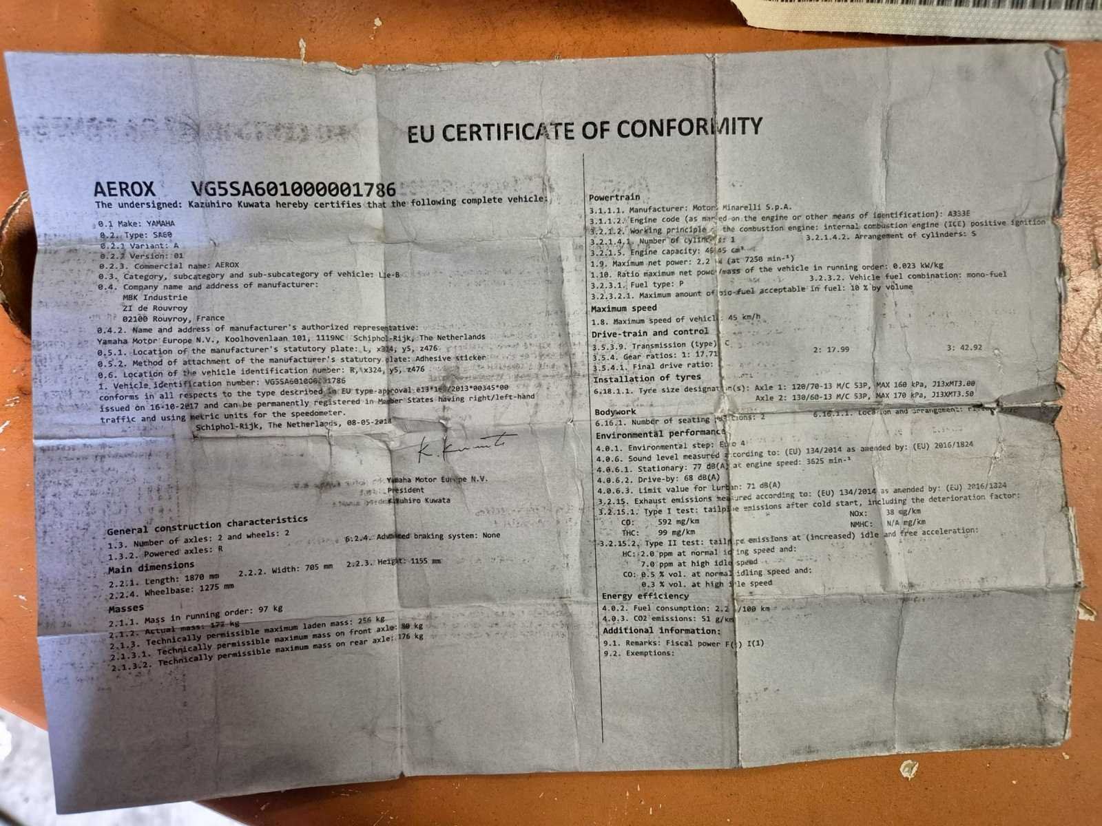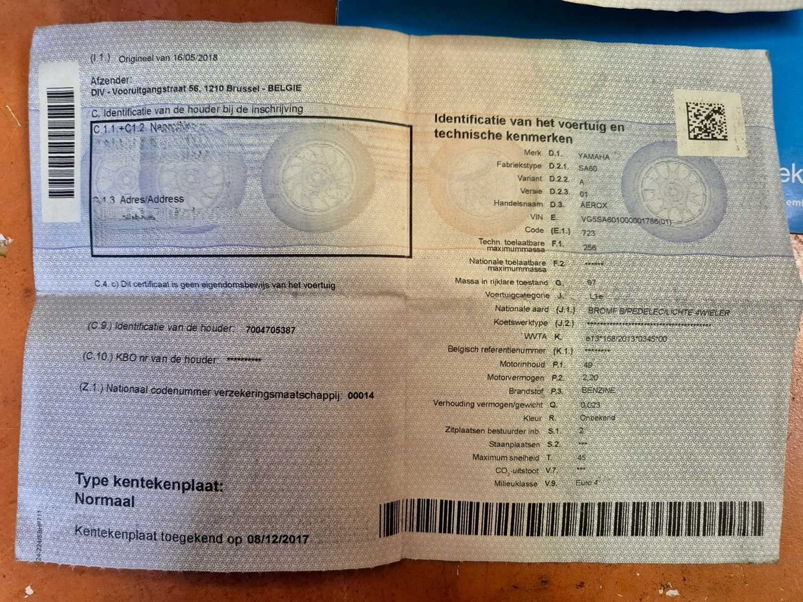 Start elektrisch en met kickstarter. Rijdt naar behoren! 49CC. No Merk: Yamaha Model: Airox 2-zit - 4 takt Brandstof: Benzine Chassisnummer: VG5SA601000001788 Cilinderinhoud: 49cc Datum eerste toelating: 2018 Afgelezen kilometerstand: 32987km Nationaliteit documenten: Belgisch Aantal sleutels: 2 Startinformatie: Start en rijd! Bouwjaar: 2018