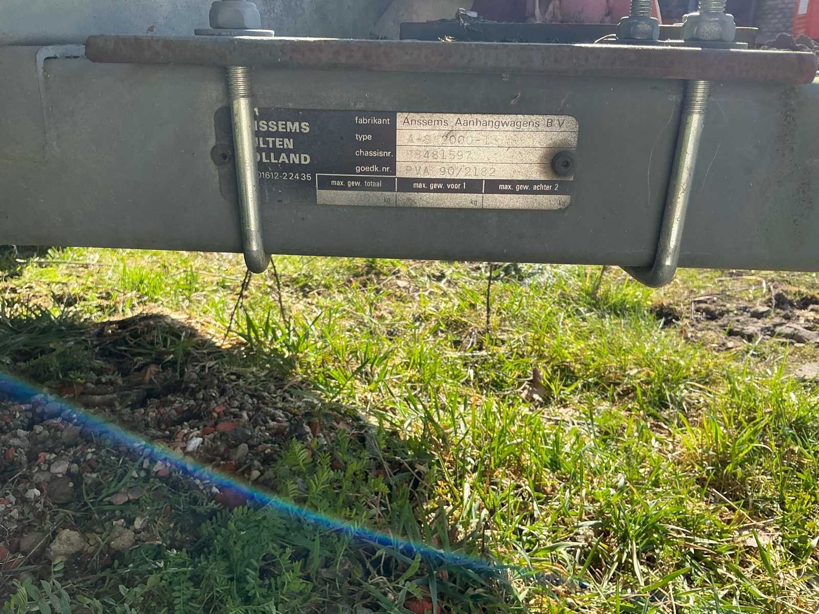 No Merk: Anssems Type: A-S 2000-1 Chassisnummer: B8481597 Aantal assen: 2 Laadbak afmeting l: 300cm Laadbak afmeting b: 125cm