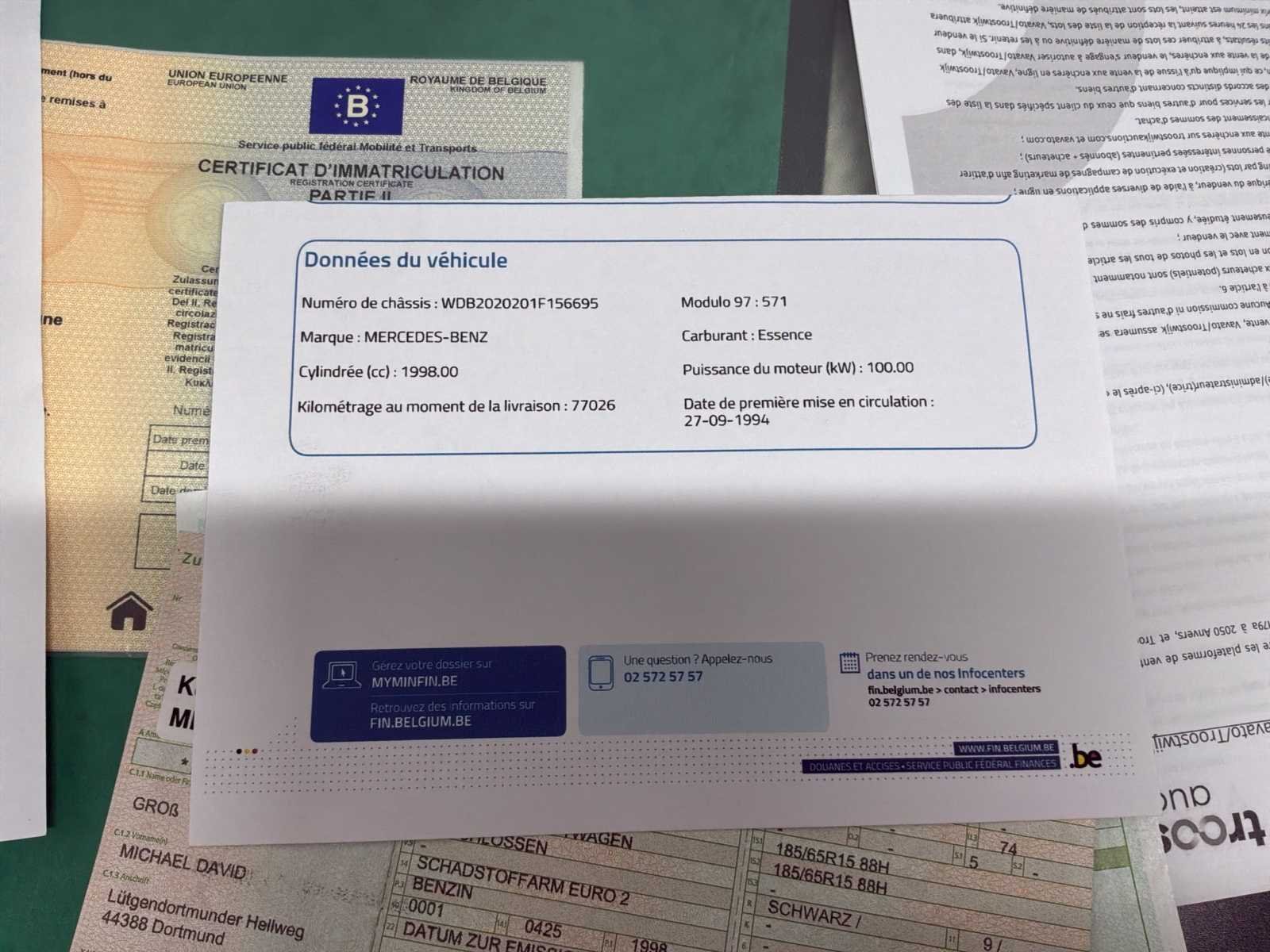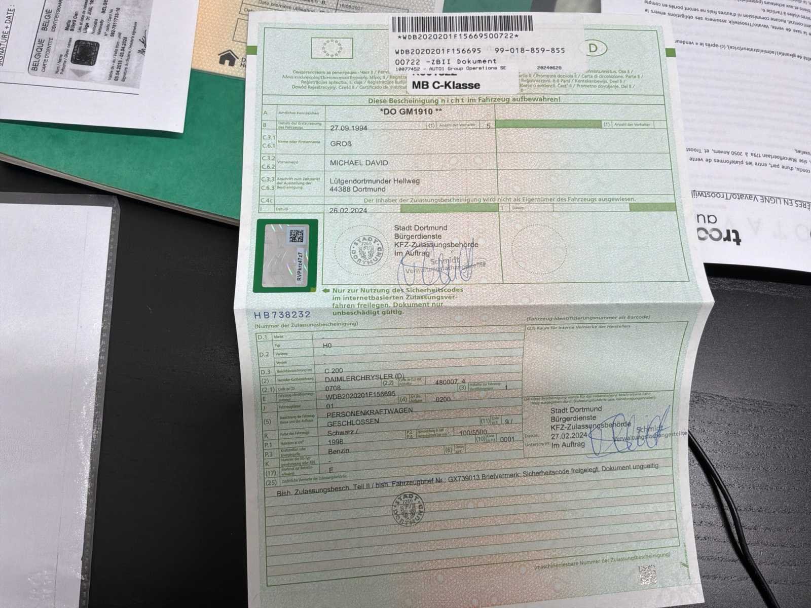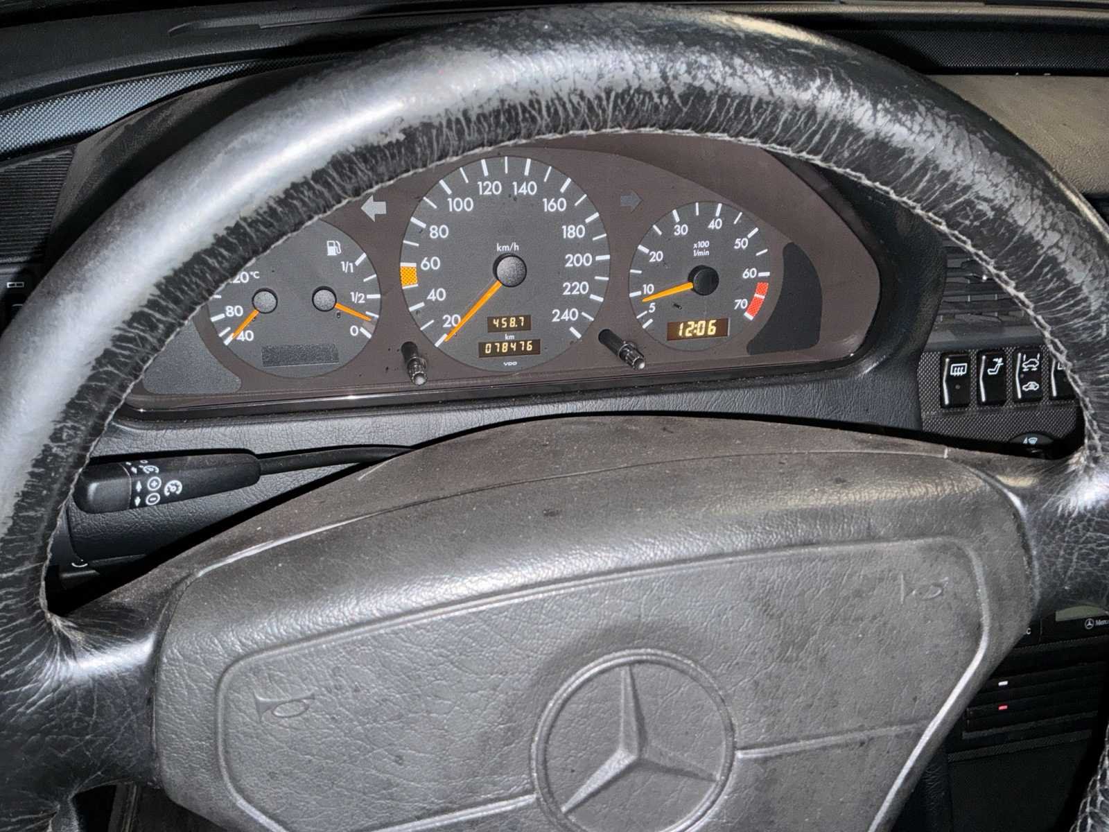Duits kentekenbewijs, door de Belgische douane goedgekeurde voertuig. Notities: Richtingaanwijzer werkt niet meer Achtergordijnen werken niet meer Onderhoud moet worden uitgevoerd, maar onderdelen in de kofferbak zie foto Mechanica en rijgedrag oké No Merk: Mercedes Model: C200 Type: Sport Bouwjaar: 1995 Afgelezen kilometerstand: 78476km Cilinderinhoud: 1998cc Vermogen (kW): 100kW Brandstof: Benzine Chassisnummer: WDB2020201F156695 Datum eerste toelating: 1994 Vermogen (pk): 136hp Energielabel: Euro 2 Aandrijving: Oké Aantal zitplaatsen: 5 Kleur: Zwart Transmissie: Handboek Stuurwiel: Links Aantal deuren: 4 Aantal sleutels: 1 Carrosserie: Sedan Nationaliteit documenten: Duits Vavato voert geen technische keuring uit.: waar Airconditioning: true Leder bekleed: true