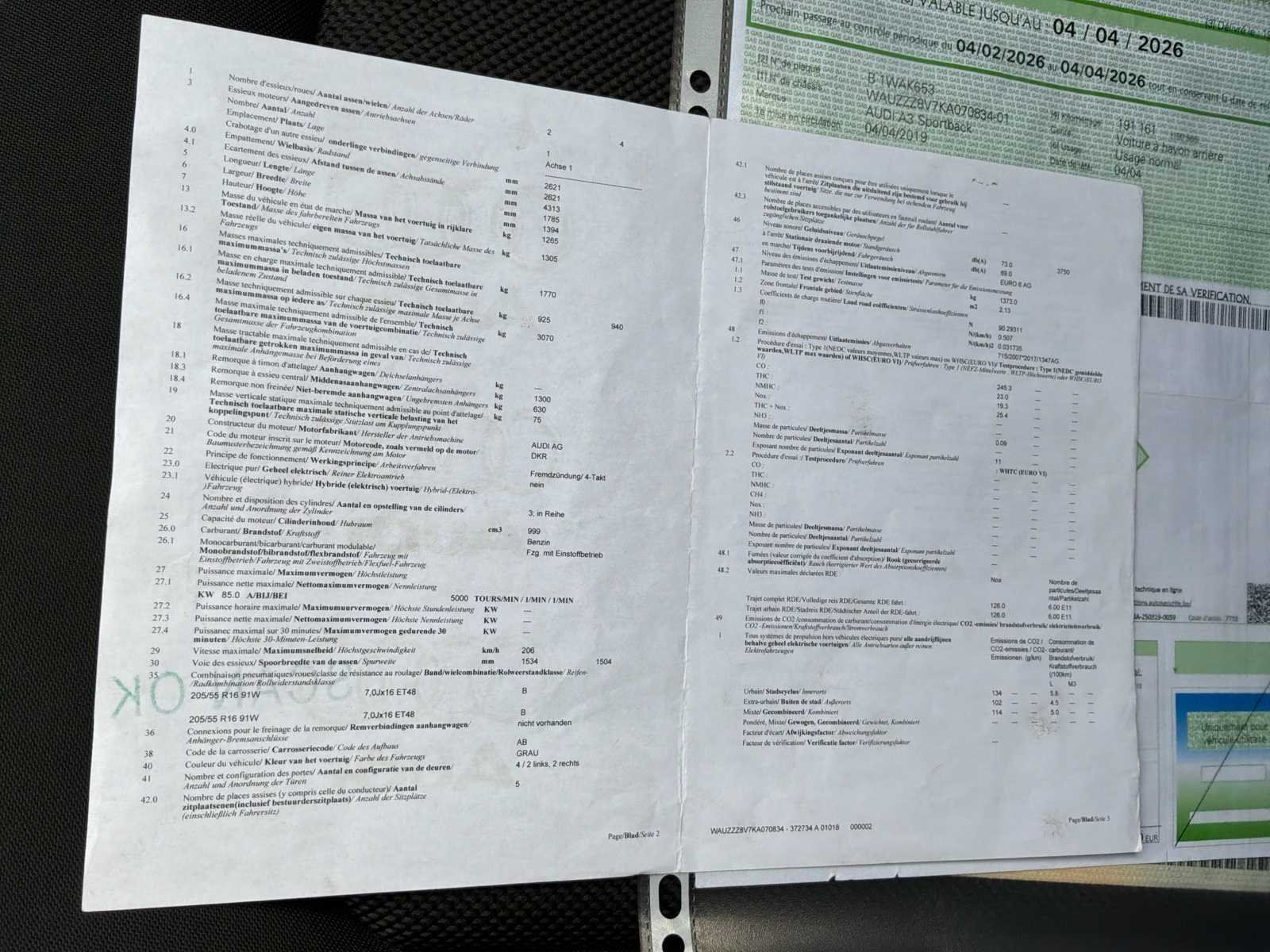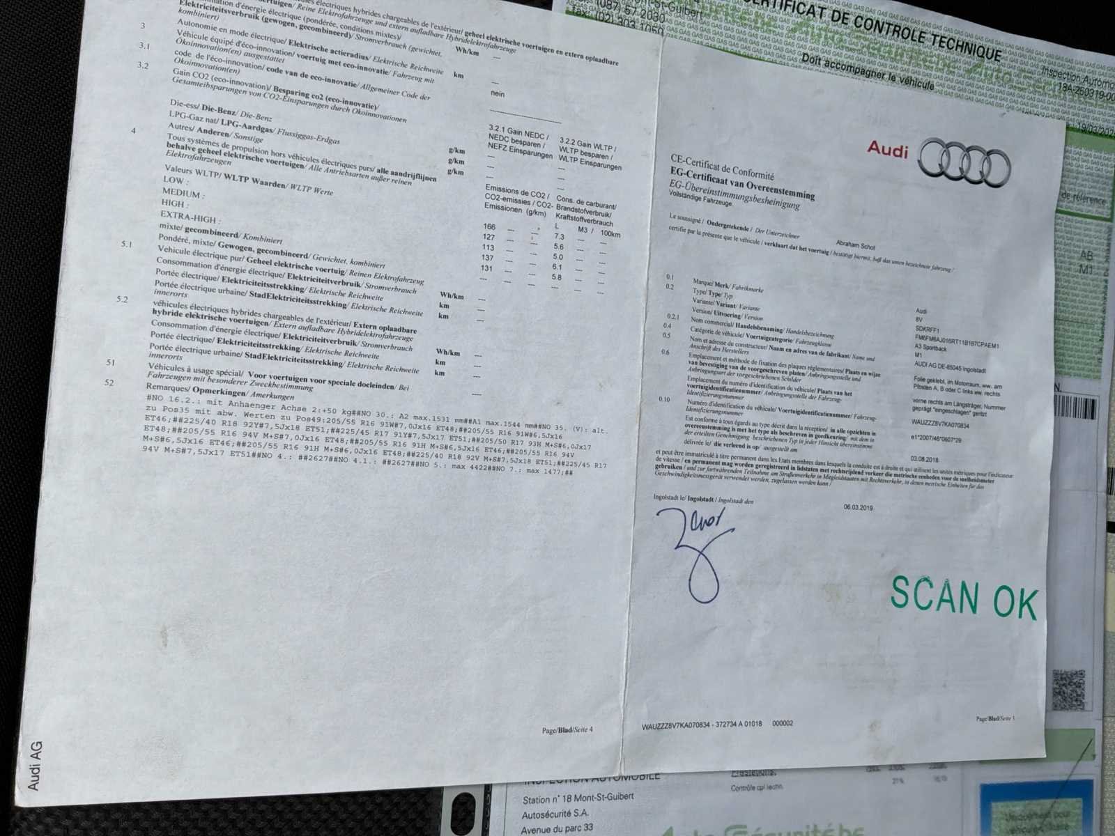 Probleem: Motorlampje brandt Staat van de carrosserie zie foto's No Merk: Audi Model: A3 Sportback Type: 8V Afgelezen kilometerstand: 200624km Cilinderinhoud: 999cc Vermogen (kW): 85kW Brandstof: Benzine Chassisnummer: WAUZZZ8V7KA070834 Datum eerste toelating: 04/04/2019 APK vervaldatum: 04/04/2026 Energielabel: 6d Aantal zitplaatsen: 5 Kleur: Grijs Transmissie: Handboek Stuurwiel: Links Aantal deuren: 5 Aantal sleutels: 2 Nationaliteit documenten: België Gelijkvormigheidsattest aanwezig: waar Carpass: waar startinformatie : Oké Vavato voert geen technische keuring uit.: waar Airconditioning: true Navigatie: true Inschrijvingsbewijs - deel 1 : Oké Inschrijvingsbewijs - deel 2: Oké