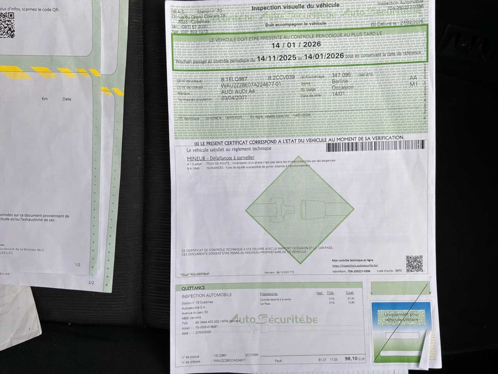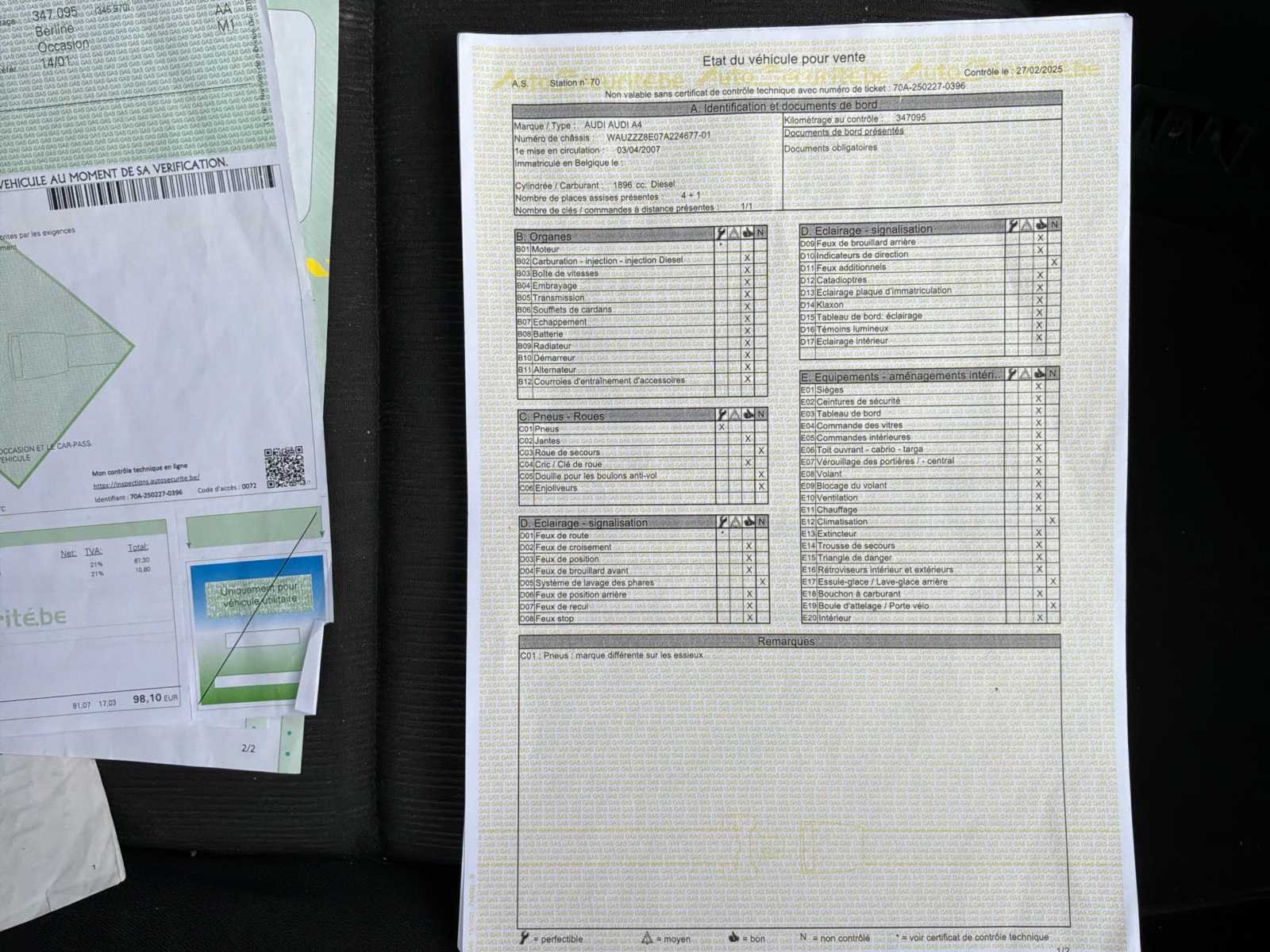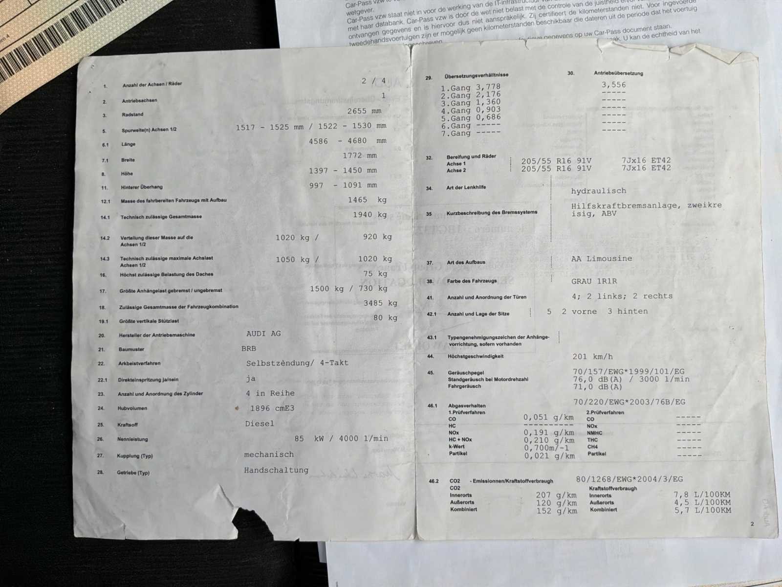 Motor- of versnellingsbakhouder die vervangen moet worden Beschadigde auto, schade aan de achterkant van het voertuig No Merk: Audi Model: A4 Type: 8E Bouwjaar: 2007 Afgelezen kilometerstand: 408569km Cilinderinhoud: 1896cc Vermogen (kW): 85kW Brandstof: Diesel Chassisnummer: WAVZZZ8E07A224677 Datum eerste toelating: 03/04/2007 APK vervaldatum: 14/01/2026 Energielabel: Euro 4 Aantal zitplaatsen: 5 Kleur: Zwart Transmissie: Handboek Stuurwiel: Links Aantal deuren: 4 Aantal sleutels: 2 Nationaliteit documenten: België Gelijkvormigheidsattest aanwezig: waar Carpass: waar Start en rijdt: Oké Zichtbare schade: Ja Vavato voert geen technische keuring uit.: waar Airconditioning: true Inschrijvingsbewijs - deel 1 : Oké Inschrijvingsbewijs - deel 2: Oké