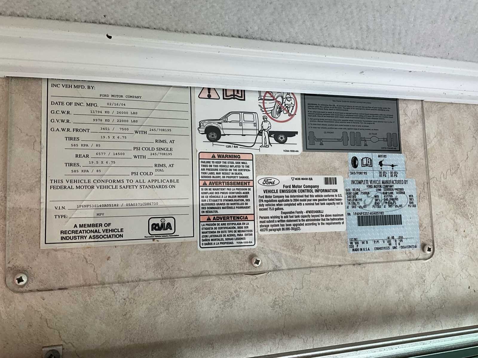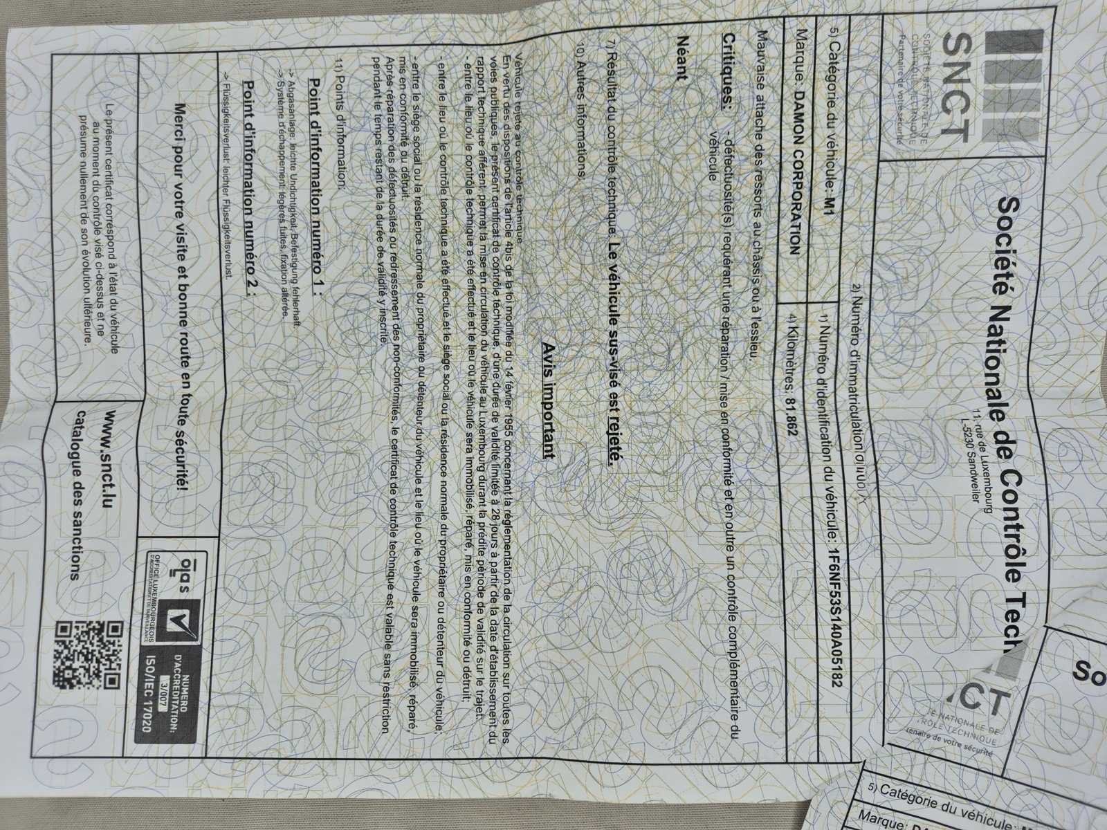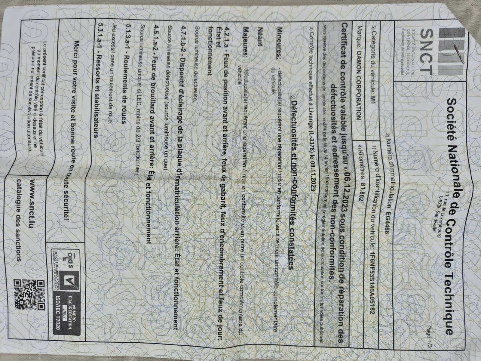 Merk: Damon Corporation Model: Challenger Jaar: 2005 Kilometer: 85.000 mijl Massa: 9270 kg GVW : 12,65 T Vergunning vereist: C-vergunning Afmetingen (L x W x H): 11,30 x 2,65 x 3,60 m Luxemburgse nationaliteitsdocumenten BASIS Chassis: Ford F-350 Motor: Ford Trytton V10 6.8L benzine + LPG (geldig tot 2030) Vermogen: 370 pk. Transmissie: Allison, 6-traps automaat CEL Zijverlengingen: 2 schuif uit Aantal wegplaatsen: 5 Aantal ligplaatsen: 4 Volumes van schoonwatertanks / grijs / zwart: 400L / 200L / 200L UITRUSTING Automatische satellietantenne, 2 LED-tv-schermen, US Koelkast, Magnetron, Gasoven, Dubbele gootsteen, Omkeerbare airconditioning, slaapkamer + woonkamer LPG-verwarming, 5 kW benzinegeneratorset, Zonnepanelen, Koolstofgelbatterij jaar 2021 Hitch, Stabiliserende cilinders, Achteruitrijcamera, Motorairconditioning, Elektrische opstapje, Elektrische luifel, Luifels bij de ramen, Dubbel glas, Getinte ramen, enzovoort. Wasmachine Technische controlenotitie: speel in één lager (moet alleen nog aangedraaid worden) Defecte voor- en achterpositielamp (lampen vervangen) Vervang de terugveerveer van de stabilisatorcilinders. No Model: Damon corporation Type: Challenger Chassisnummer: 1F6NF53S140A05182 Transmissie: Automatisch Datum eerste toelating: 01/01/2005 Bouwjaar: 2005 Afgelezen mijlenstand: 85000mi Vermogen (pk): 370hp Cilinderinhoud: 6760cc Brandstof: Benzine+LPG Kleur: Wit Lengte: 1130cm Breedte: 265cm Hoogte: 360cm Ledig gewicht: 9270