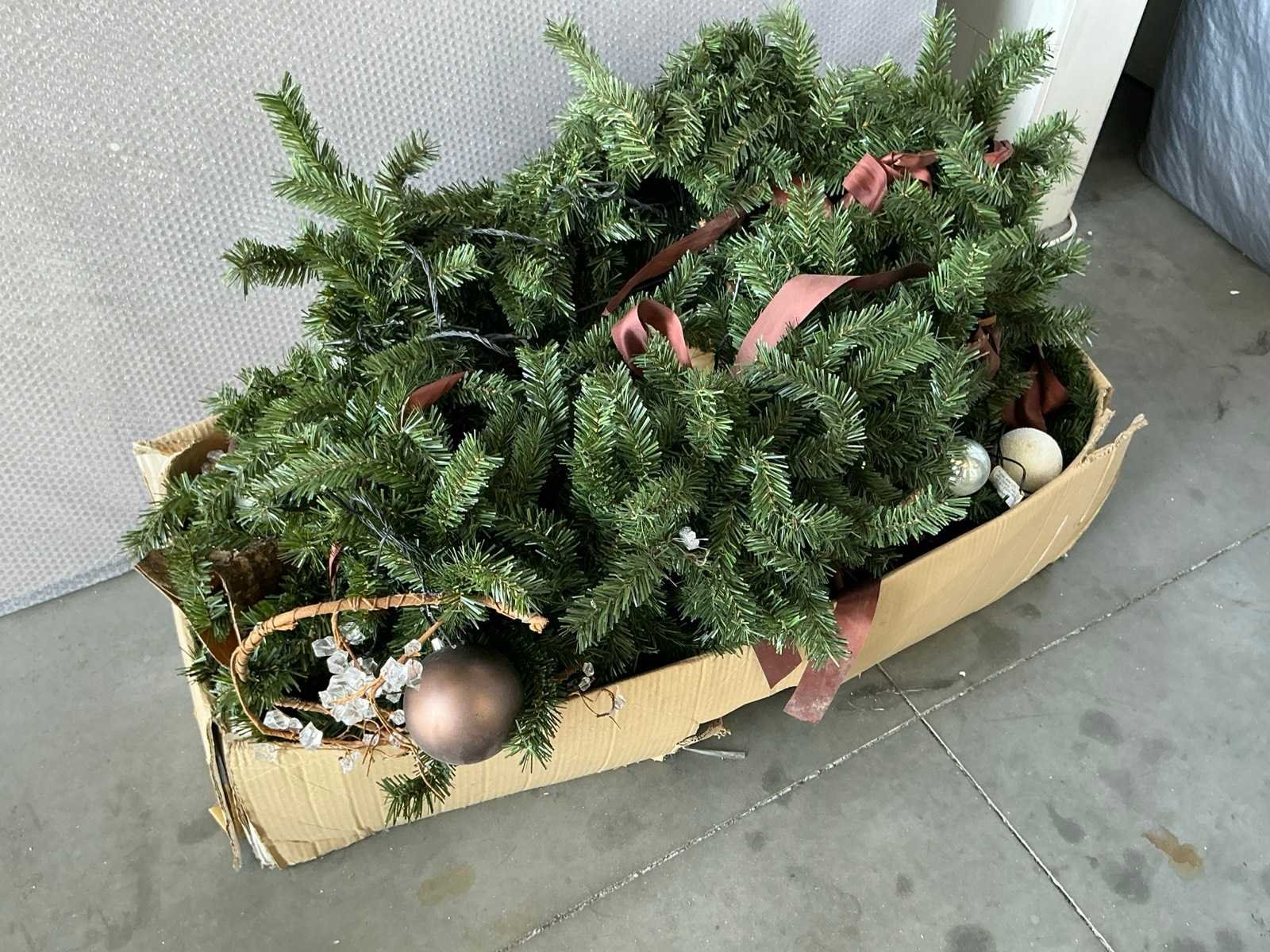 Gedemonteerd, liggende in een doos, Compleet met Kerstkrans dia ca 200cm liggende op 1e verdiep Nee Model: Imitatie kerstboom