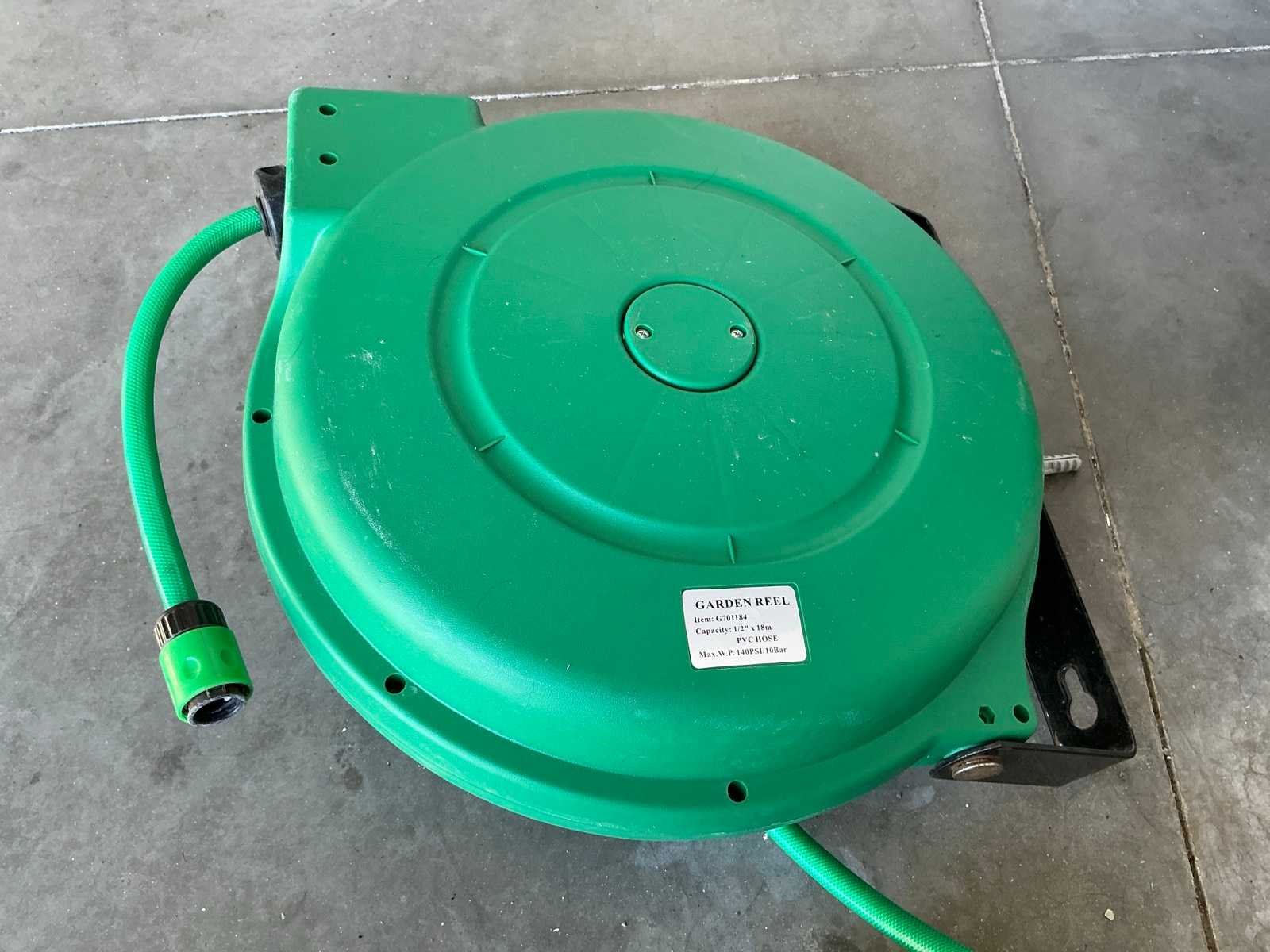 Voorzien van wandbuegel Nee Merk: Garden Reel Model: G701184 Kleur: Groen Lengte: 1800cm Materiaal: Pvc