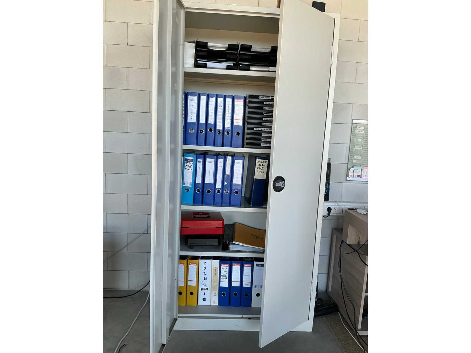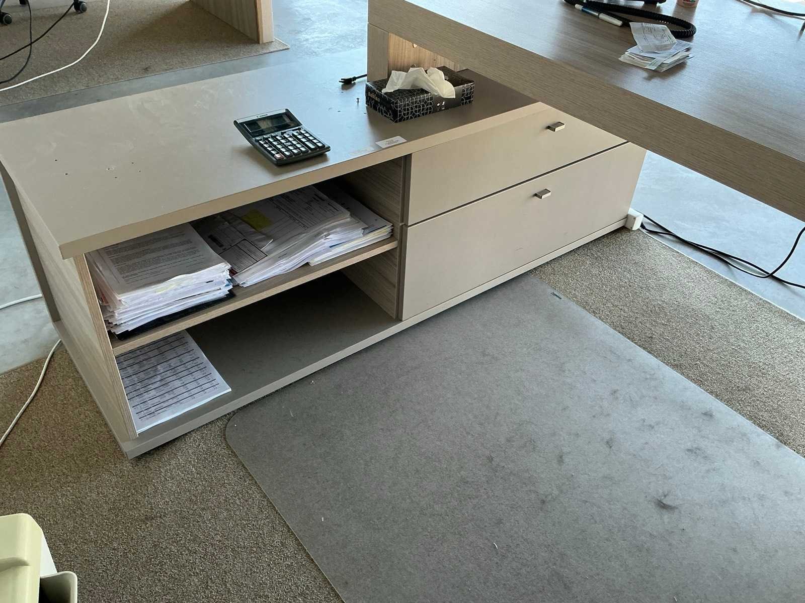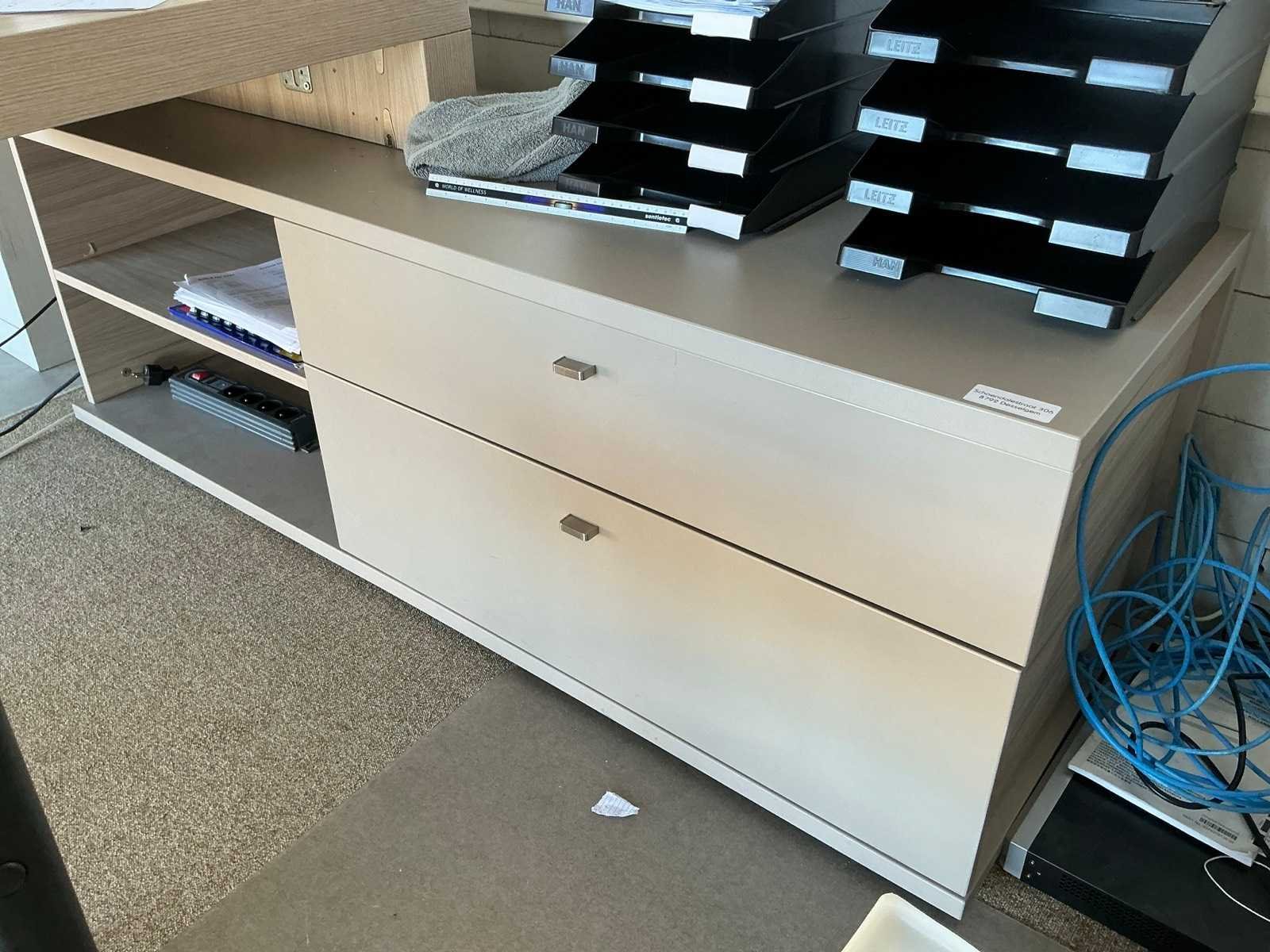 Voorzien van 2 laden, Compleet met verrijdbare typistestoel, 1 hoge metalen dossierkast en 4 diverse ladenblokken voorzien van 2 laden, Zonder enige inhoud Nee Product type: Fineerhouten Lengte: 200cm Breedte: 160cm Hoogte: 76cm