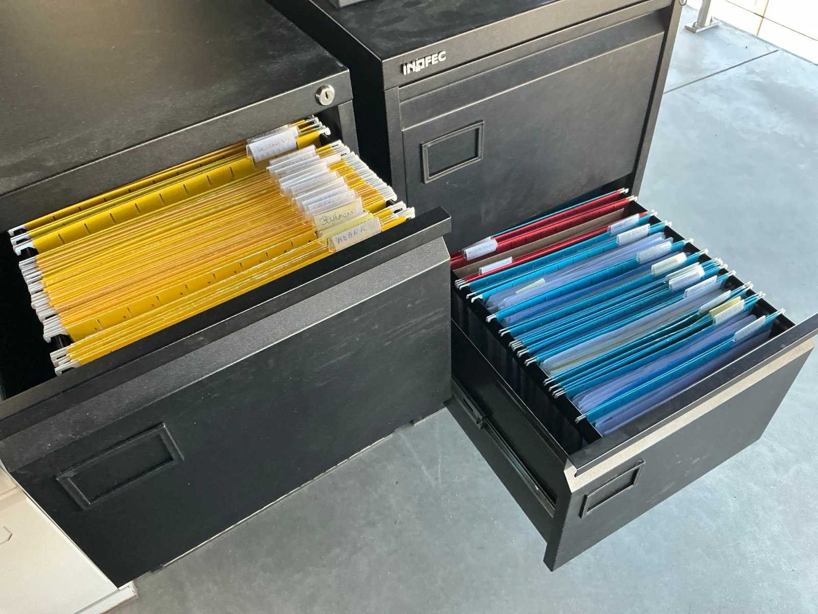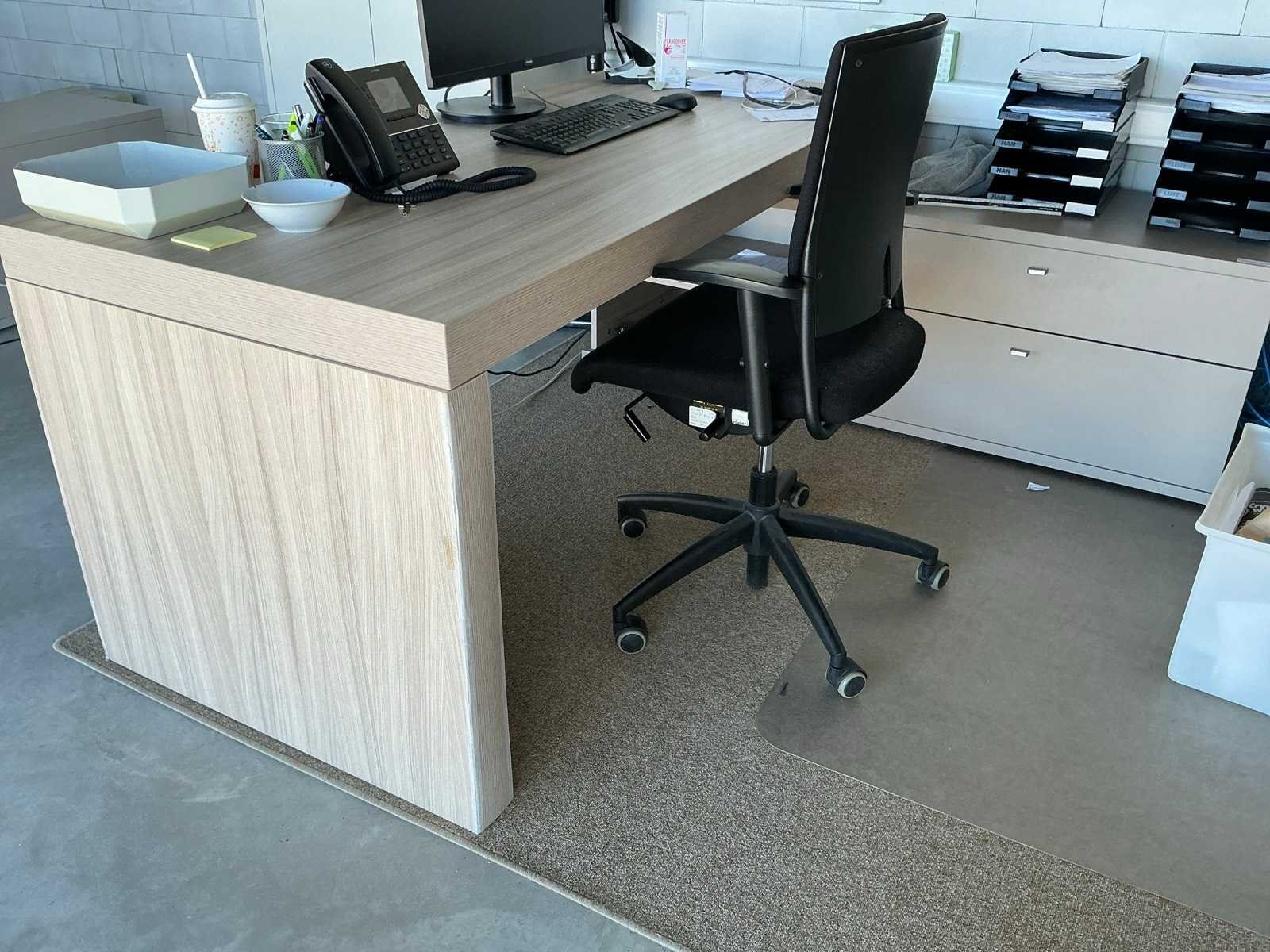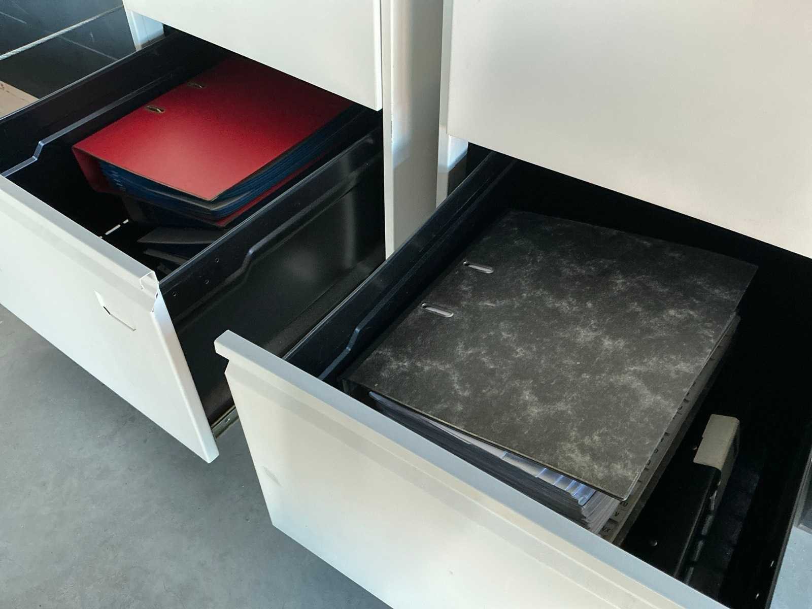 Voorzien van 2 laden, Compleet met verrijdbare typistestoel, 1 hoge metalen dossierkast en 4 diverse ladenblokken voorzien van 2 laden, Zonder enige inhoud Nee Product type: Fineerhouten Lengte: 200cm Breedte: 160cm Hoogte: 76cm