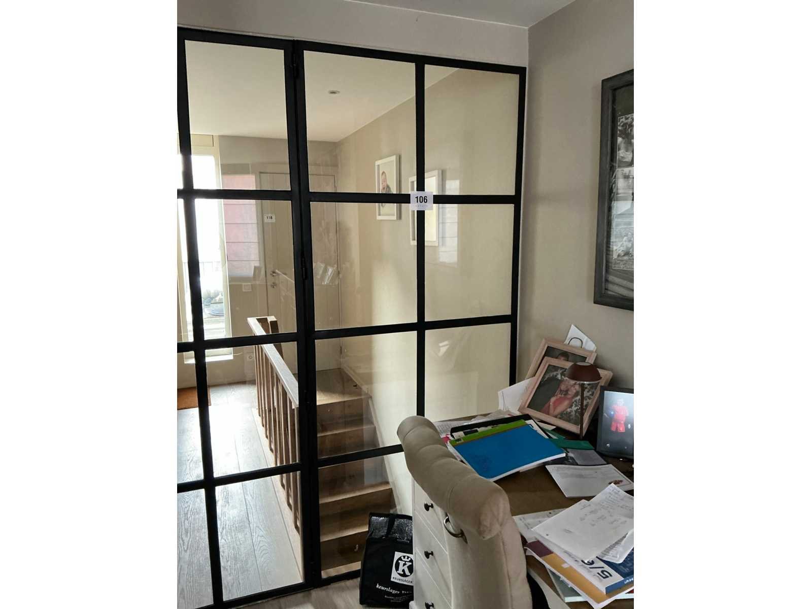 Op 1e verdiep, door koper te demonteren/verplaatsen van omgeving. Nee Binnendeur: true Beglaasd: true Afmeting h: 2200mm Afmeting b: 1750mm