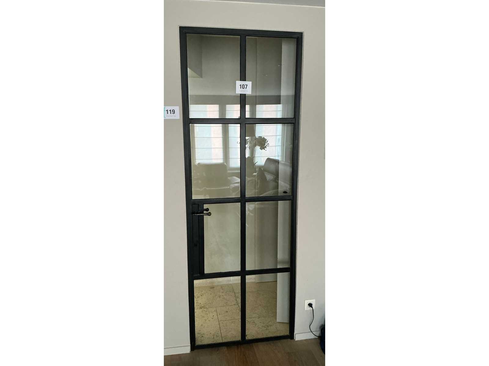 Op 1e verdiep, door koper te demonteren/verplaatsen van omgeving. Nee Binnendeur: true Beglaasd: true Afmeting h: 2200mm Afmeting b: 780mm