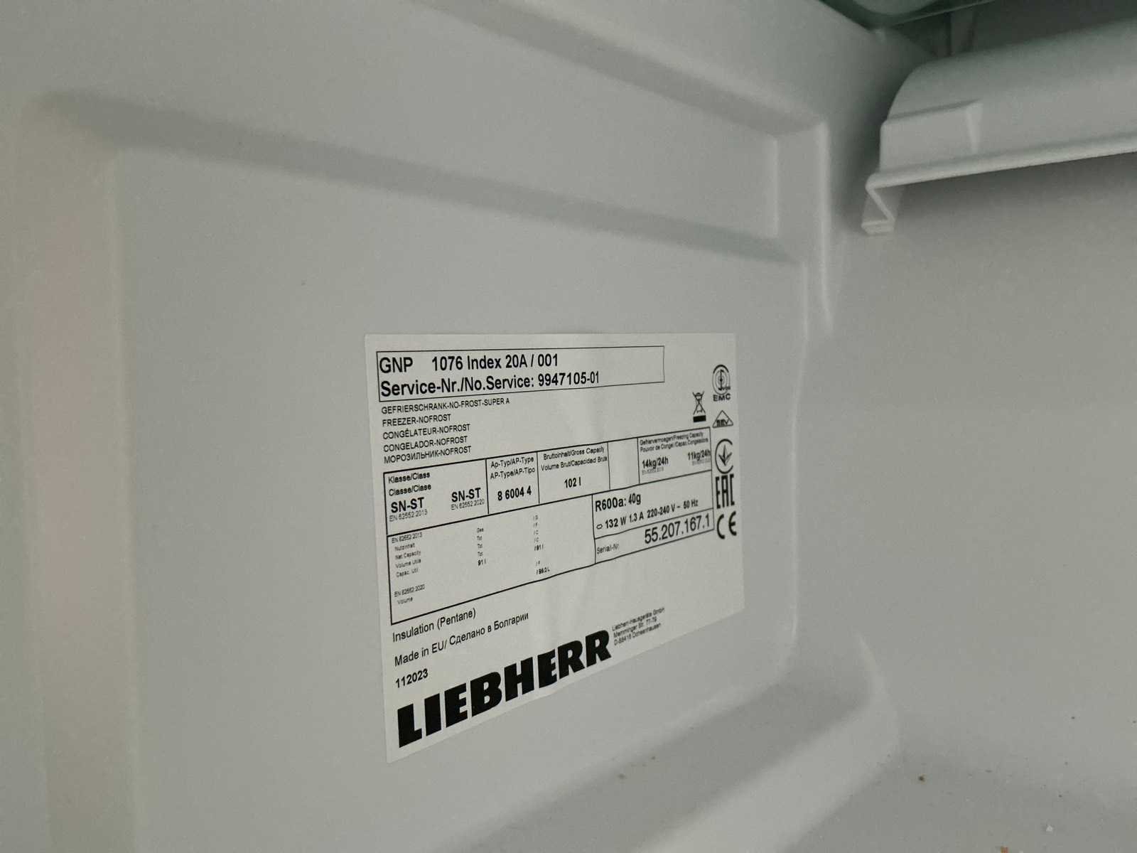 Op 1e verdiep, door koper te verplaatsen van omgeving. Nee Merk: Liebherr Deur opent naar: Rechts Totaal netto inhoud: 102l Lengte: 60cm Breedte: 57cm Hoogte: 85cm