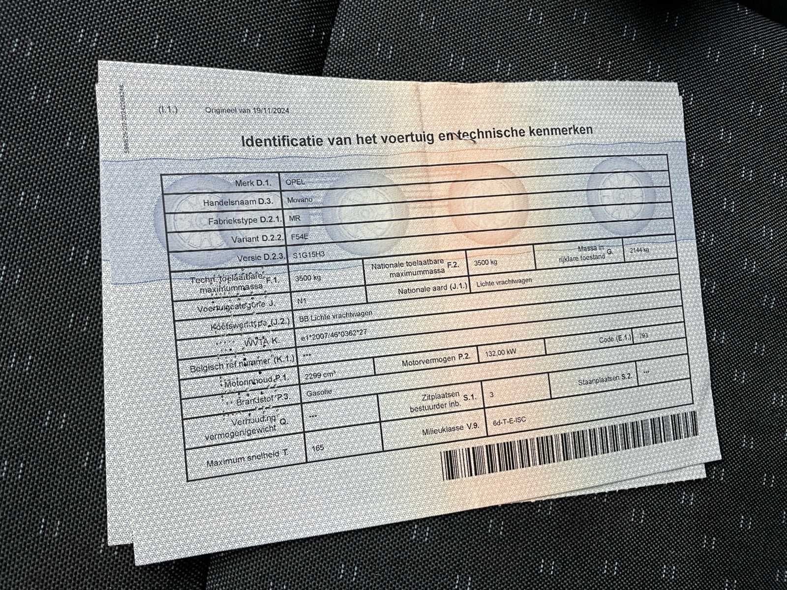 Merk: Opel Model: Opel Movano Motor: 2,3 diesel – 132 kW Kilometerstand: 129,867 km Ruime bedrijfswagen in nette staat. Voertuig rijdt en schakelt goed en heeft een geldige keuring. Lichte cosmetische gebruikssporen passend bij leeftijd. Kenmerken • 3 zitplaatsen • Dieselmotor • Goed onderhouden • Direct inzetbaar Recente groene keuring No Merk: Opel Model: Movano Chassisnummer: W0VMR4S0XLB218506 Afgelezen kilometerstand: 129900km Cilinderinhoud: 2299cc Vermogen (kW): 132kW Brandstof: Diesel Datum eerste inschrijving: 17/06/2020 Datum eerste toelating: 17/06/2020 Kleur: zwart Nationaliteit documenten: BE