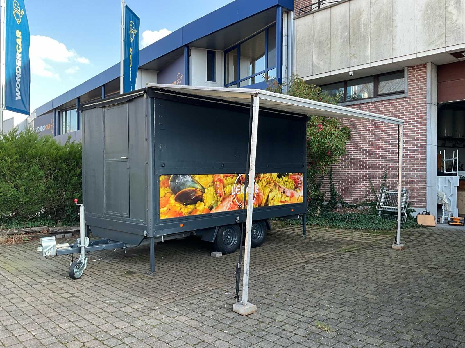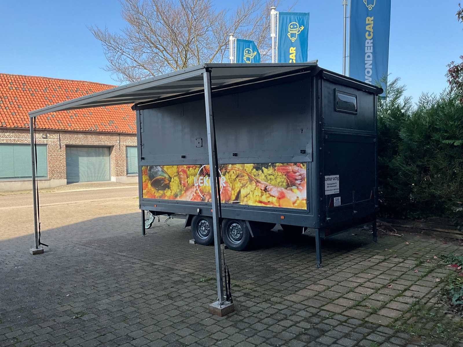 FOODTRUCK TE KOOP / ENKEL GEBRUIK VASTE STANDPLAATS Professionele foodtruck / mobiele keuken, volledig klaar voor gebruik en AREI-elektrisch gekeurd (2025). Ideaal voor cateraars, events, paella-standen, festivals, streetfood, bedrijfscatering of mobiele keukens. Technische keuring van elektrischiteit en gas --- ✔️ Belangrijkste kenmerken Merk trailer: HEYVAERT Afmetingen: Lengte: 4m10 Breedte: 2m10 gewicht: incl frigo, diepvries, rvs frigo, kleine frigo, opbergkasten totaal gewicht = 2440kg Stevige opbouw met volledig openklappende zijwand Uitgerust met steunpalen voor stabiel werken Elektrische keuring in 2025 → officieel rapport aanwezig Aansluiting via Mennekes PowerTOP Xtra + standaard stekker --- ✔️ Professionele uitrusting inbegrepen 🔥 Paella-installatie (compleet pakket!) 3 grote paella-pannen 70–75 cm 2 paella-pannen 39 cm 1 paella-pan 34 cm 2 professionele gasvuren voor paella 2 gas bakplaten (HENDI) Perfect voor grote volumes → 200+ porties per uur. --- ❄️ Koeling & diepvries Exquisit horeca-displayfrigo (grote glazen deur, ideaal voor drank/ingrediënten) Beko grote diepvrieskast Limit compacte koelkast Alles werkt perfect. --- 🔌 Elektrisch & water Nieuw gekeurde Hager elektrische kast Circuitverdeling netjes aangeduid Professionele aansluitkabels inbegrepen Nee Merk: Heyvaert Chassisnummer VIN: VWTTC300051000922 Aantal assen: 2 Totale afmeting Lengte: 4100mm Totale afmeting Breedte: 2100mm