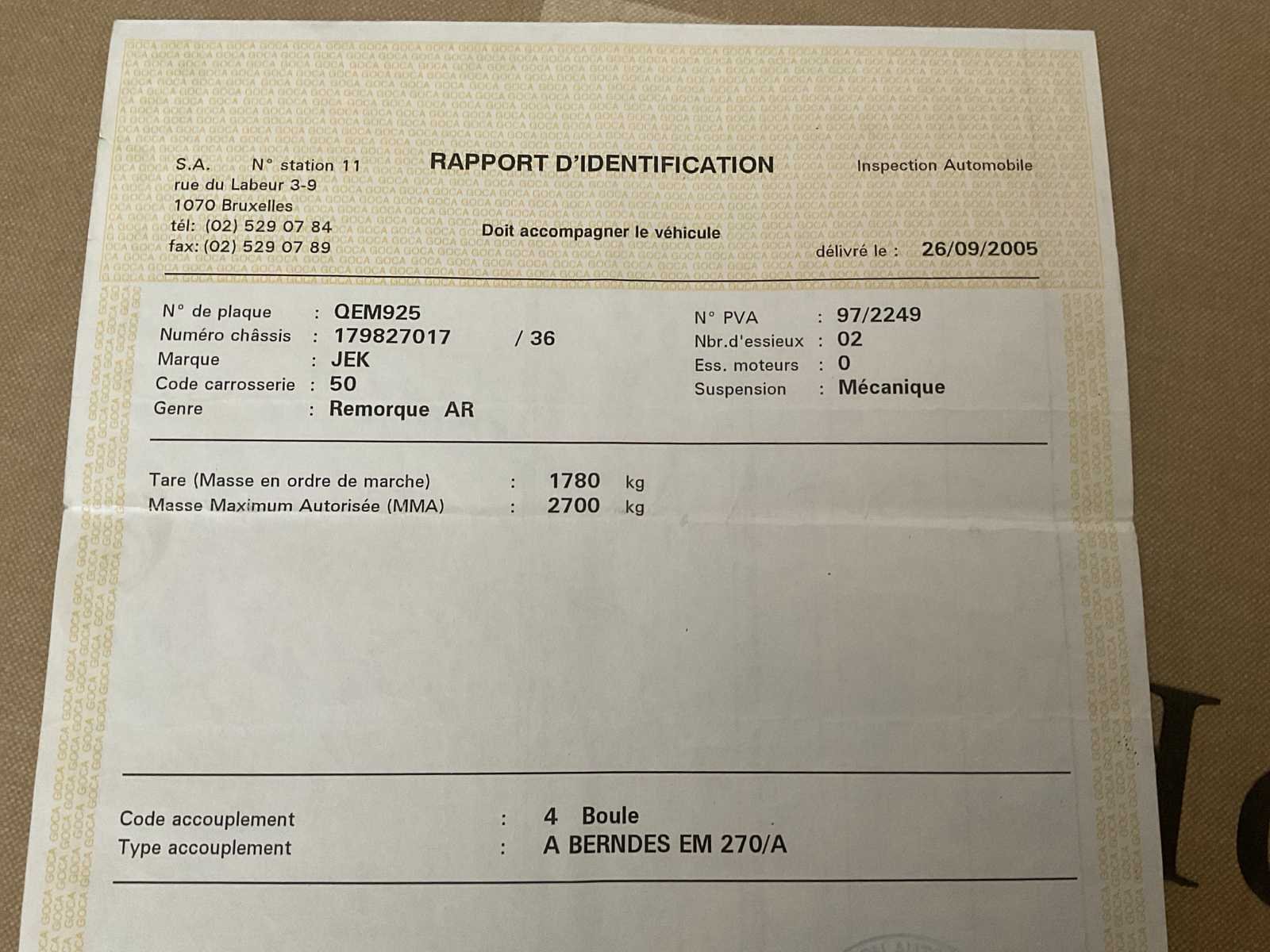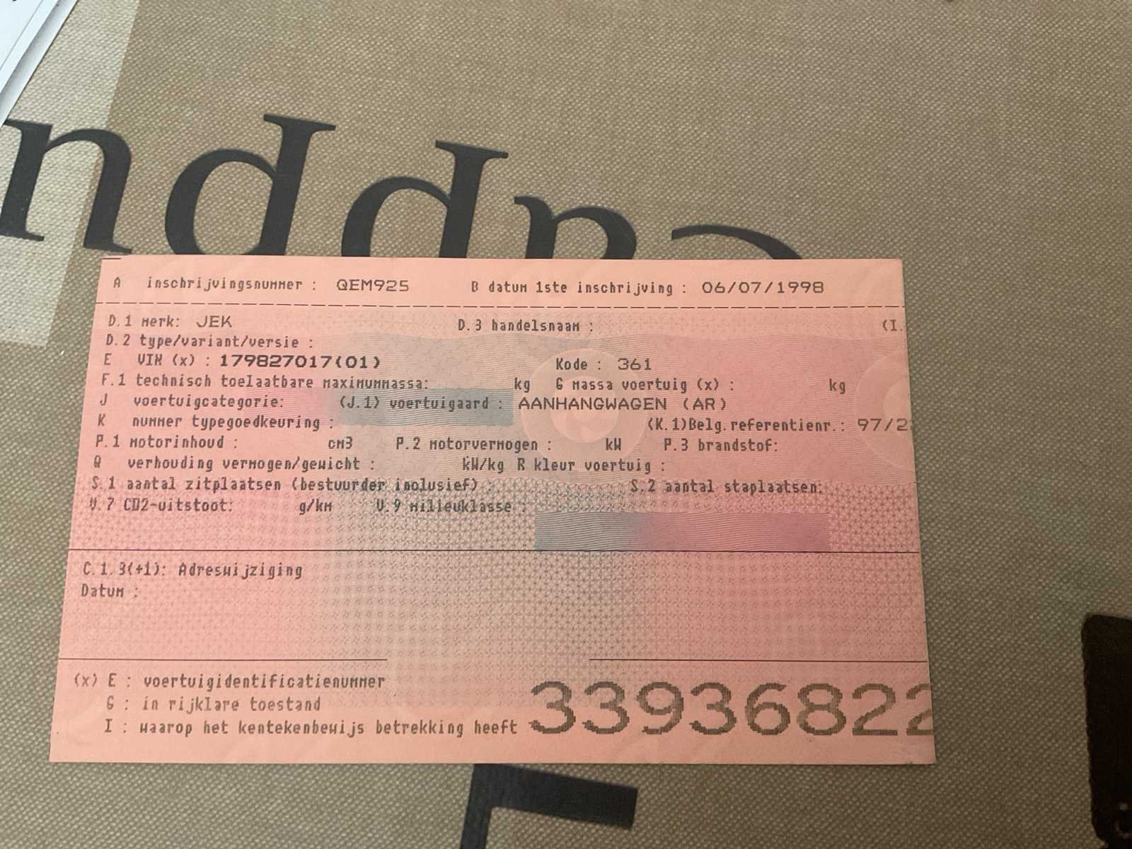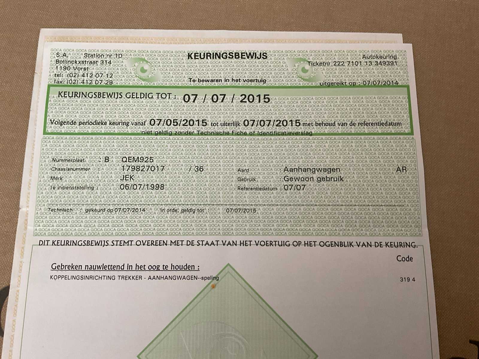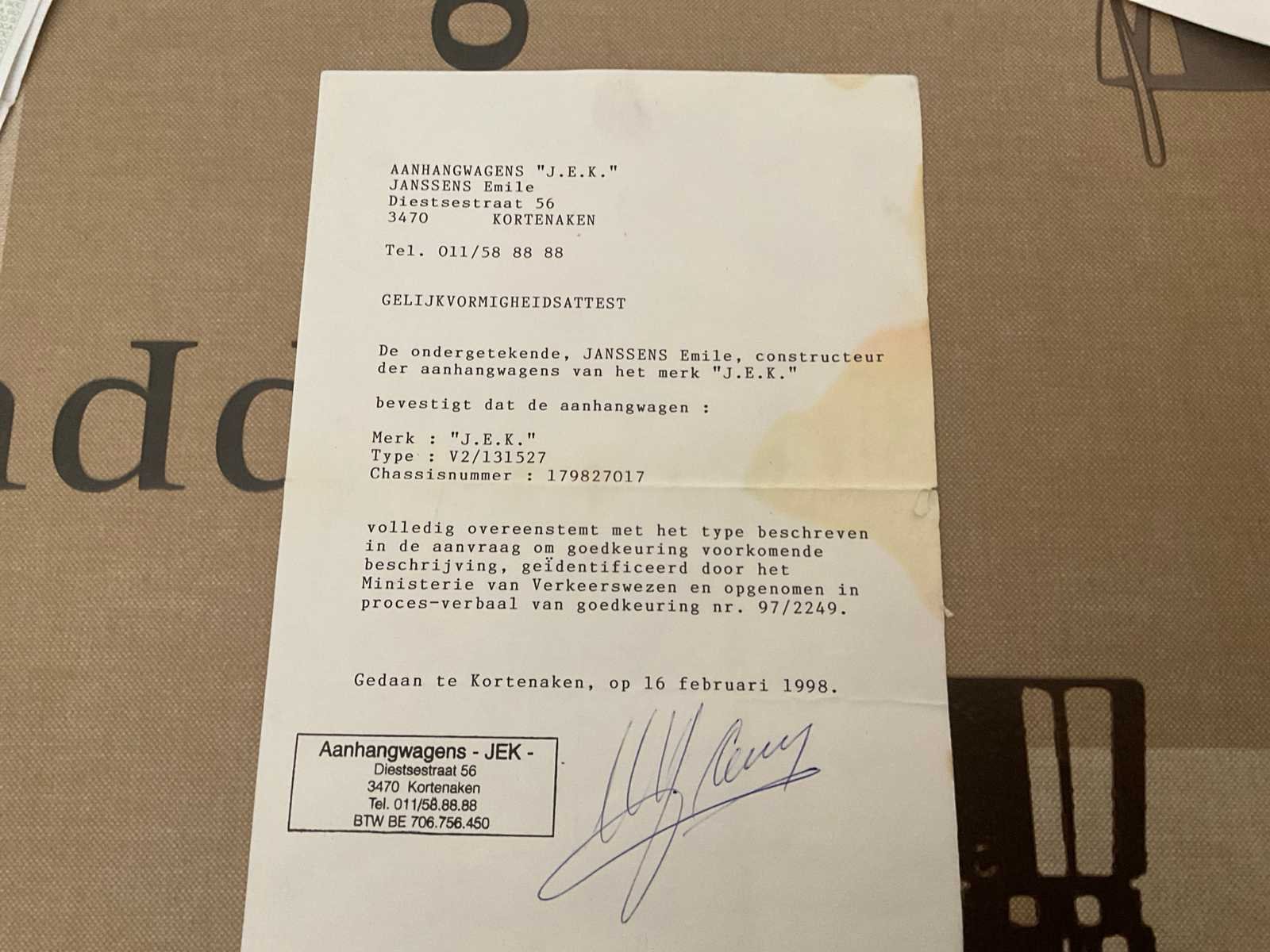 Nazicht en keuring dient nog te gebeuren door de koper alsook keuring van de frituurinstallatie. 4 pots frietketel op propaangas. Elektriciteit nodig voor licht en frigo. Frigo. Bain-marie bijgeleverd. Bakplaat bijgeleverd. Verpakkingsmaterial inclusief. Frietopschudbakken, lepels, alles om te starten . Nee Merk: JEK Bouwjaar: 1998 Chassisnummer: 179827017 Aantal assen: 2 Gesloten opbouw: true Datum eerste toelating: 06/07/1998 Kentekenpapieren compleet?: true Nationaliteit documenten: België