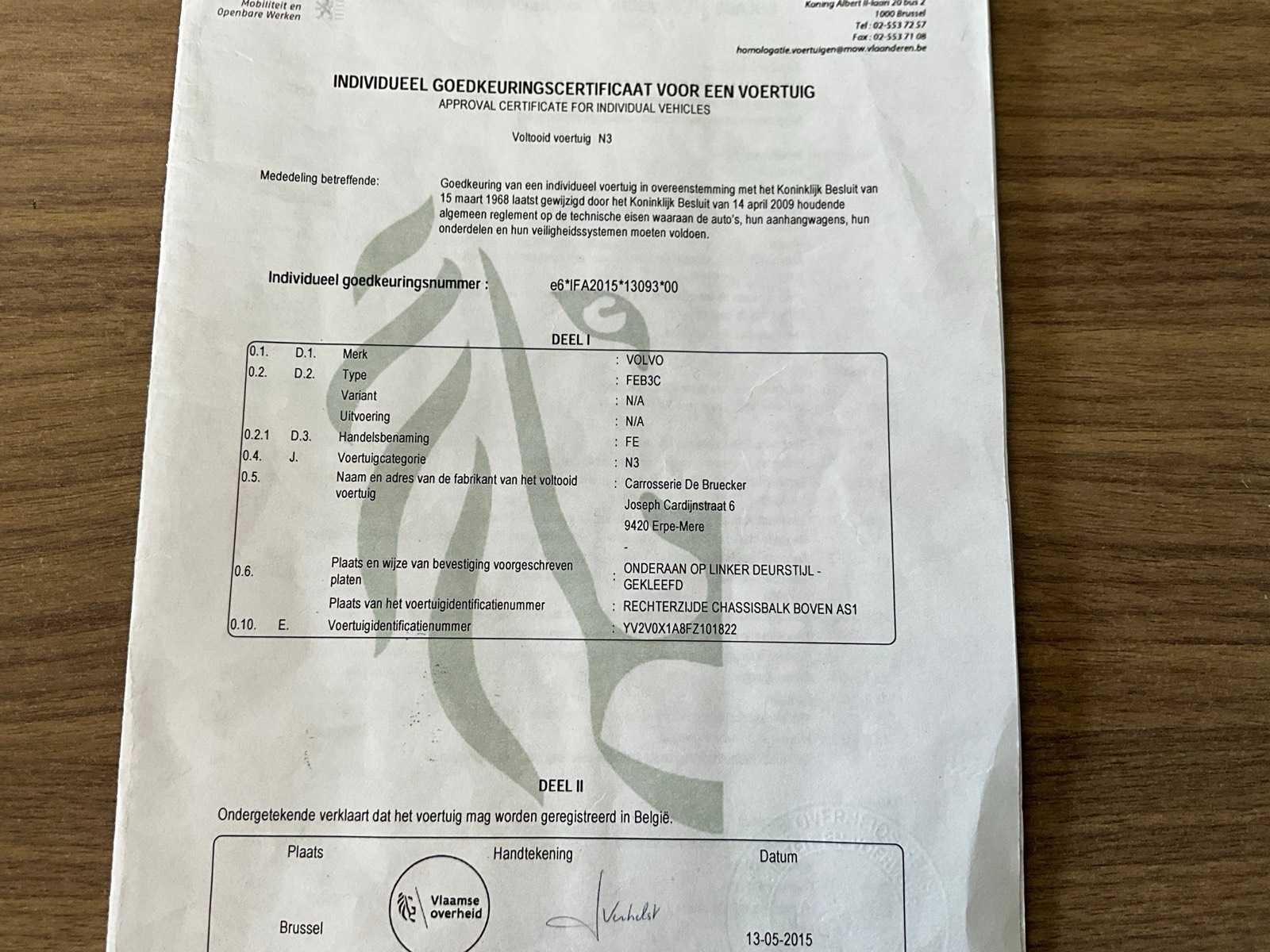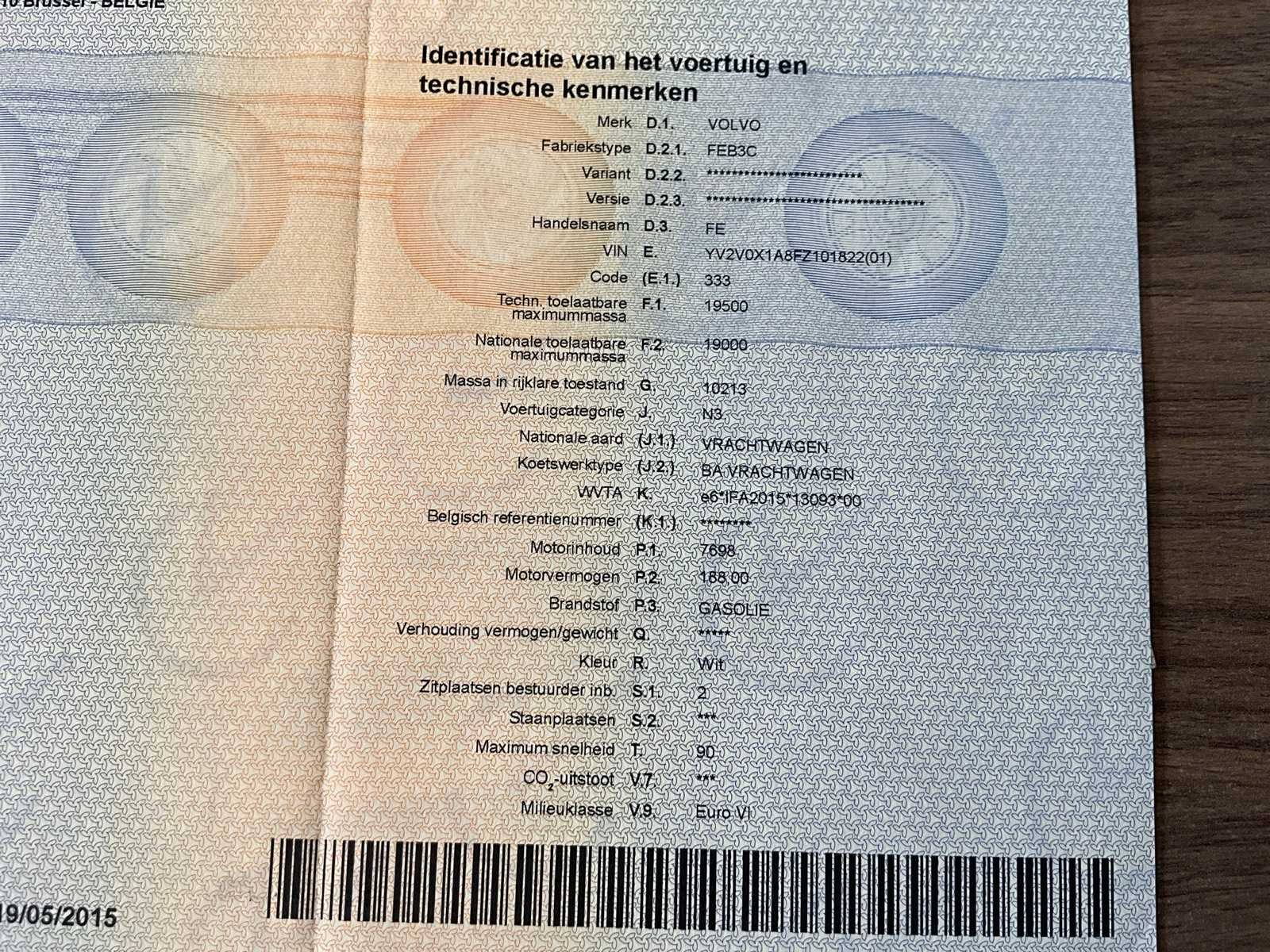 Volledig functioneel (recent geïnstalleerd haaksysteem); barst voorruit, bestuurderszetel beschadigd - AIRCO Nee Merk: Volvo Type: FE250 haaksysteem Bouwjaar: 2015 Chassisnummer VIN: YV2V0X1A8FZ101822 Cilinderinhoud: 7698cc Datum eerste toelating: 19/5/2015 Type transmissie: Automatisch Aantal assen: 2 Fuel Type: Diesel Laadvermogen: 9200kg Aantal sleutels: 1 Emissieklasse: Euro 6 Totale afmeting L: 9575mm Totale afmeting Breedte: 2550mm Totale afmeting Hoogte: 3870mm Nationaliteit documenten: B Kentekenpapieren compleet?: true Aantal zitplaatsen: 2 Automaat: true