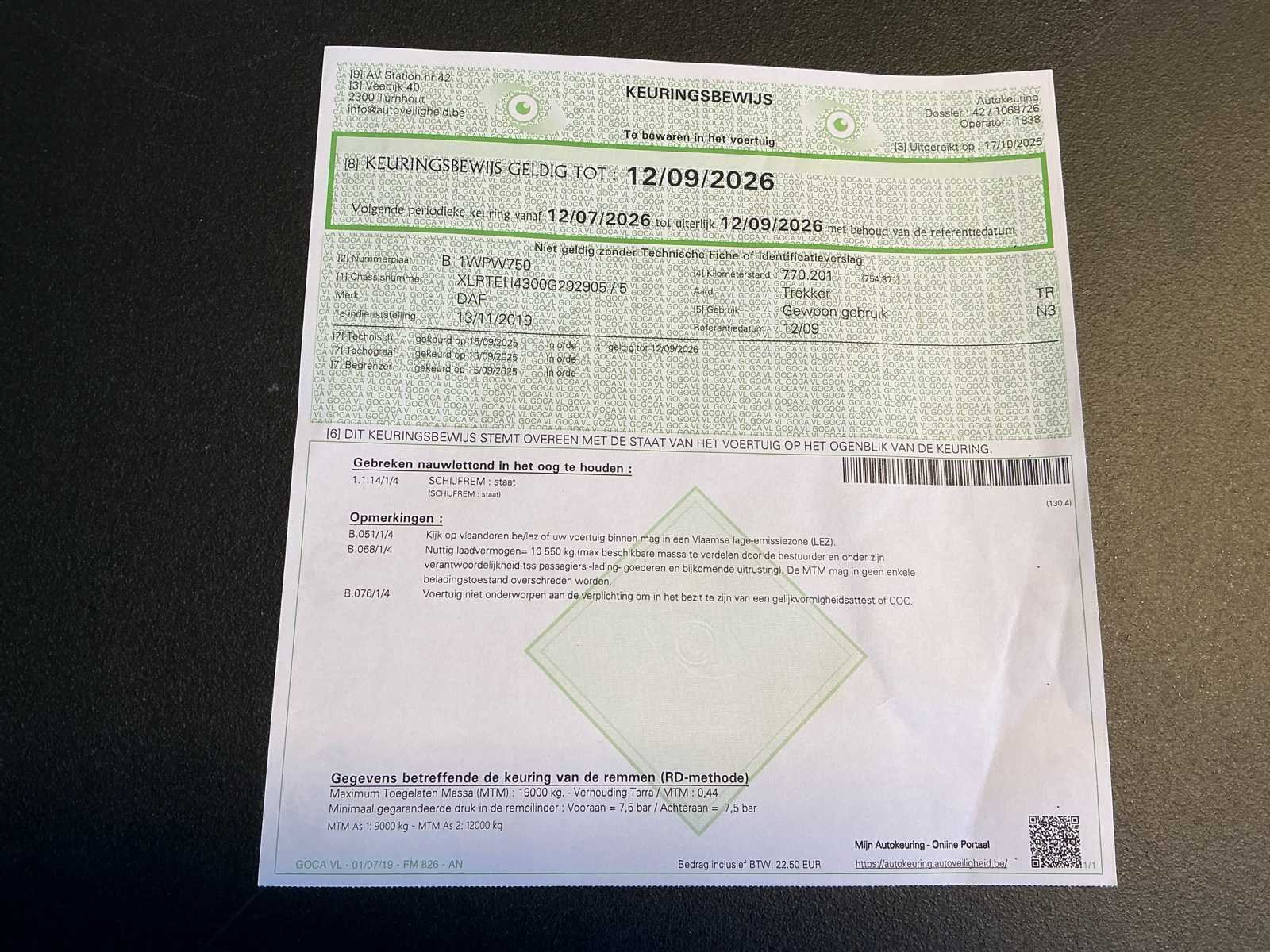 No Merk: DAF Type: XF 530 Bouwjaar: 2019 Chassisnummer VIN: XLRTEH4300G292905 Cilinderinhoud: 12902cc Kilometerstand bij opname: 802042km